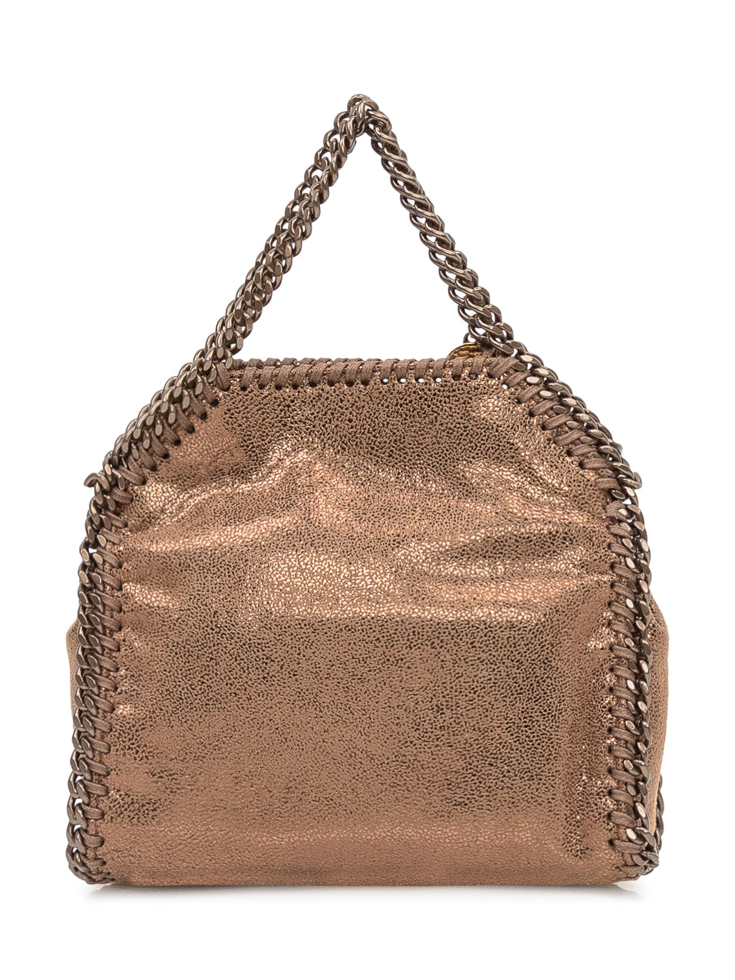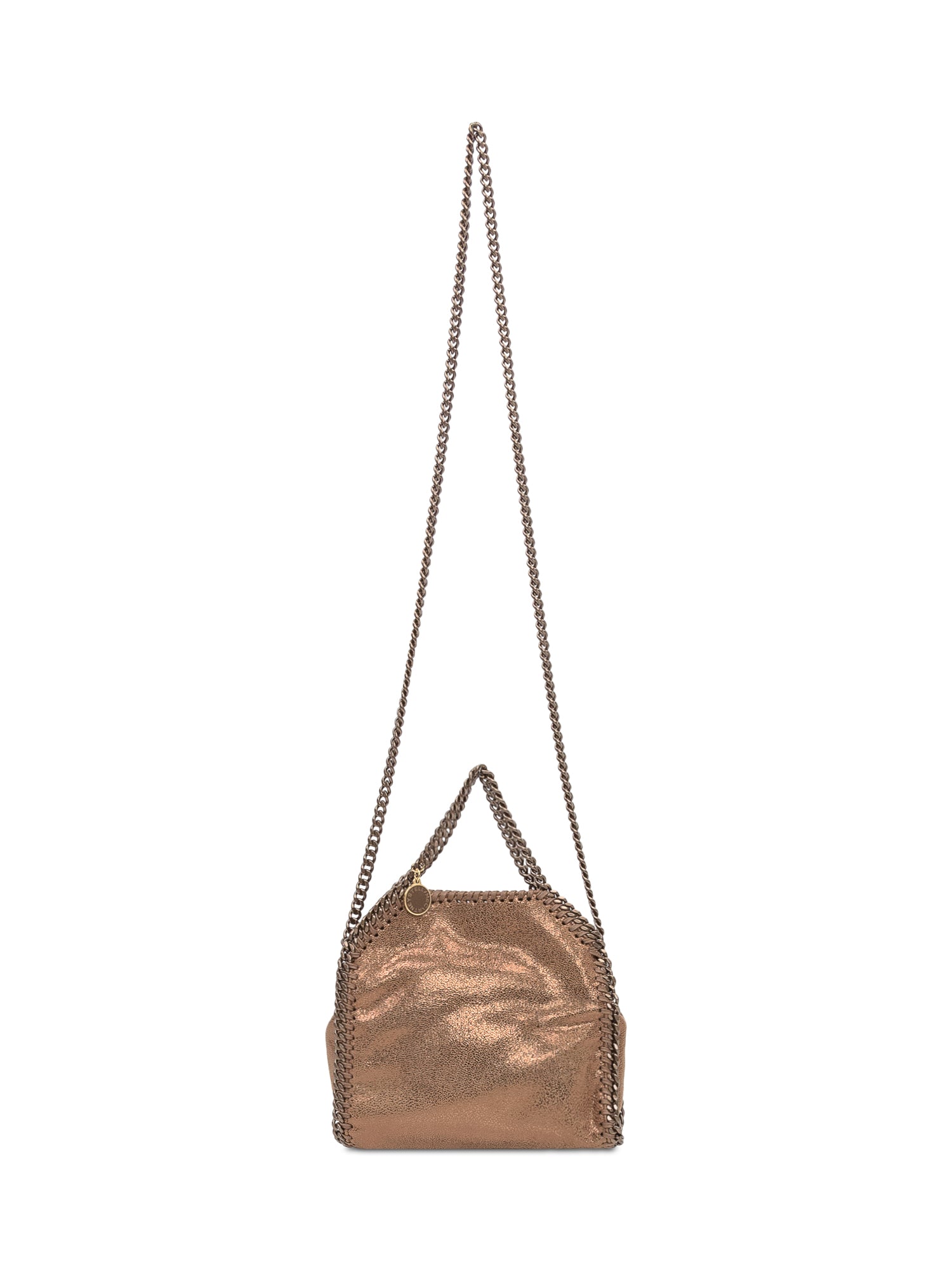 Borsa Falabella Tiny Stella McCartney in ecopelle bronzo metallizzato con catena color oro e doppi manici.