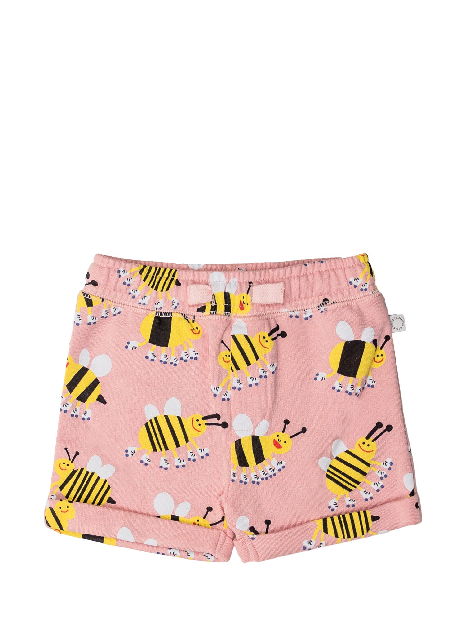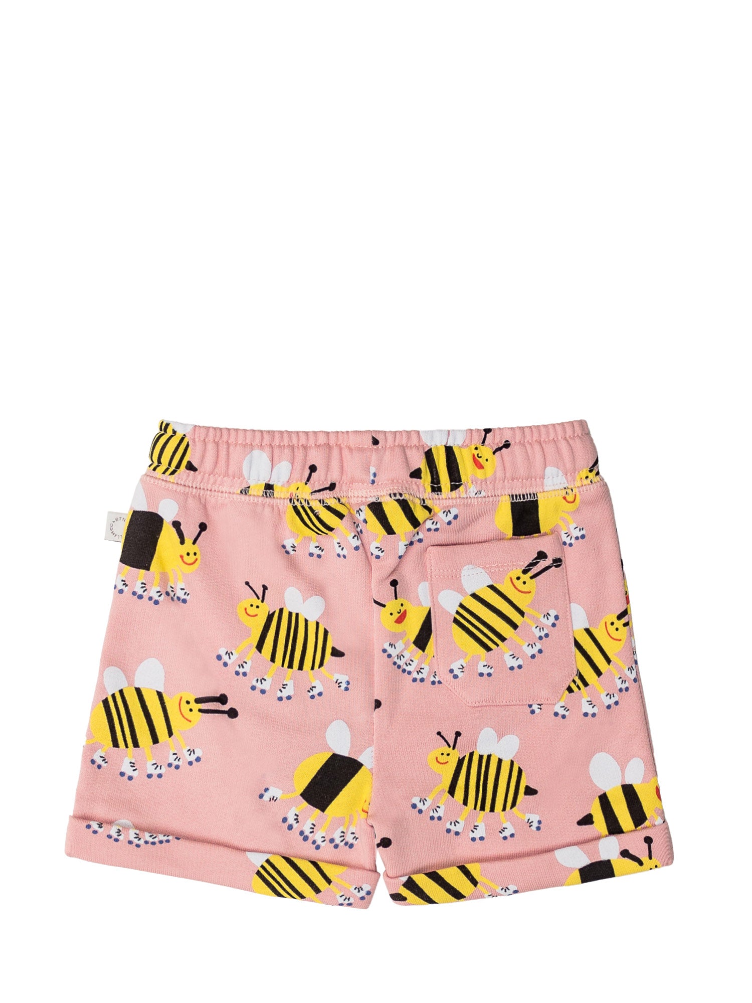 Shorts rosa con vita elasticizzata. Tasca piatta sul retro. Stampa bombi all-over.