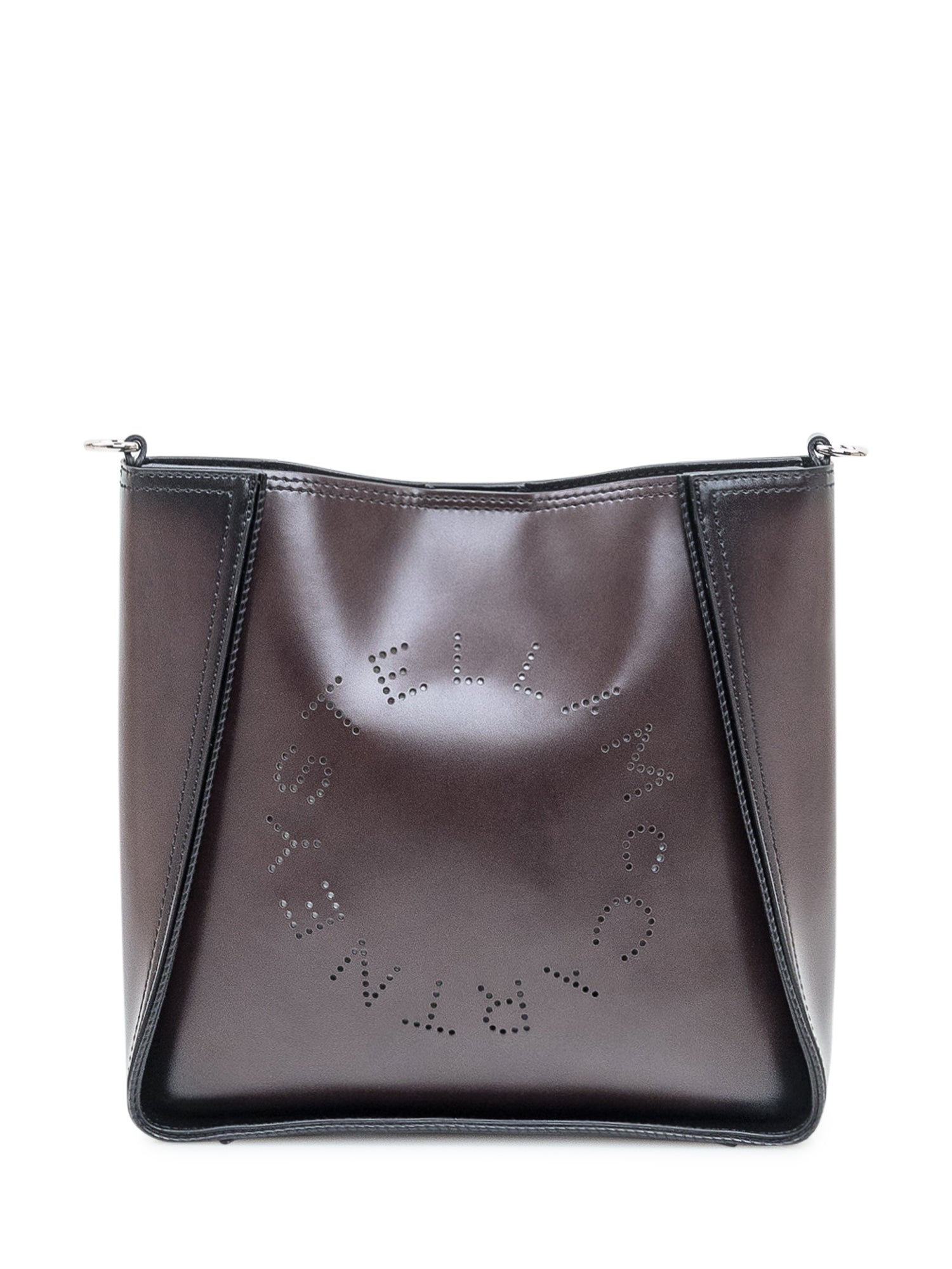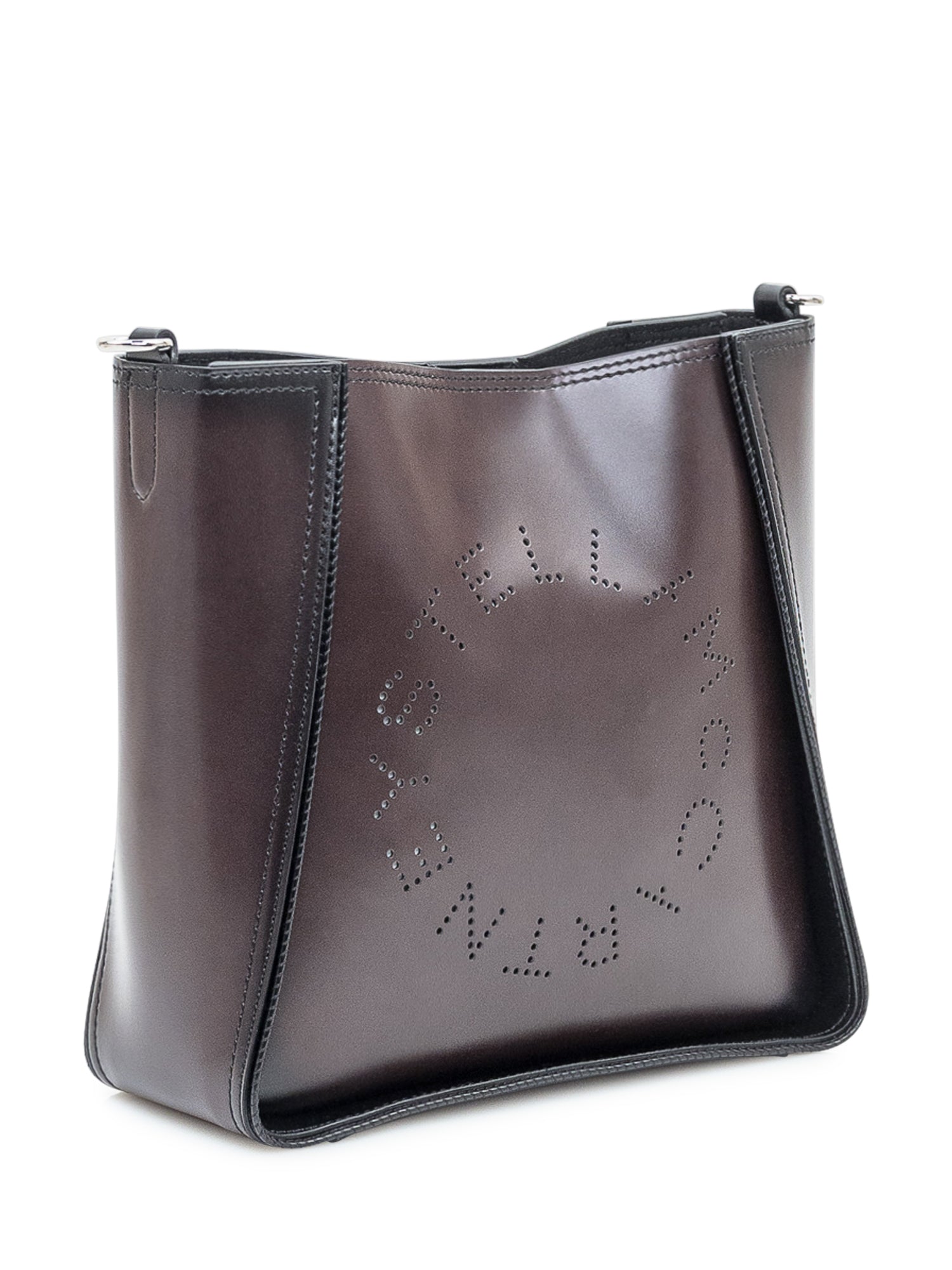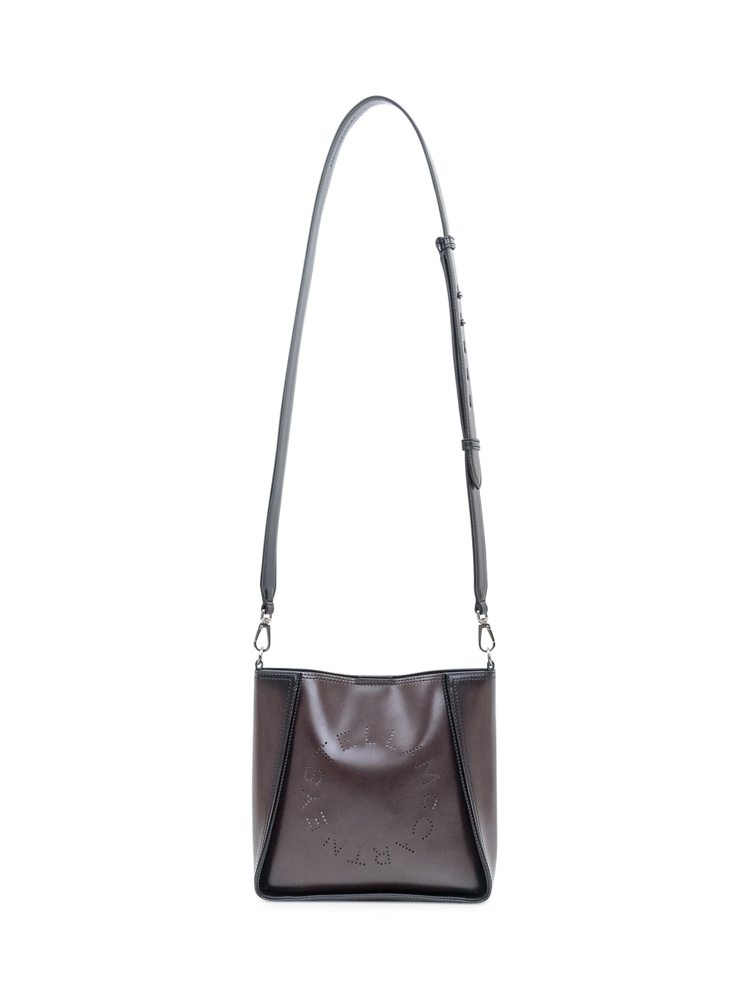 Borsa a tracolla Stella McCartney in ecopelle marrone con logo traforato frontale. Dotata di tracolla regolabile e interno spazioso.