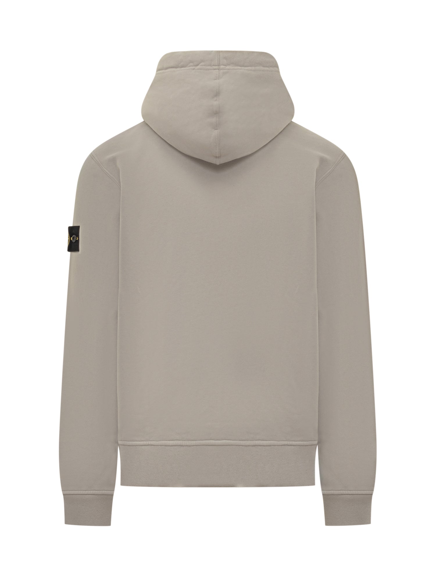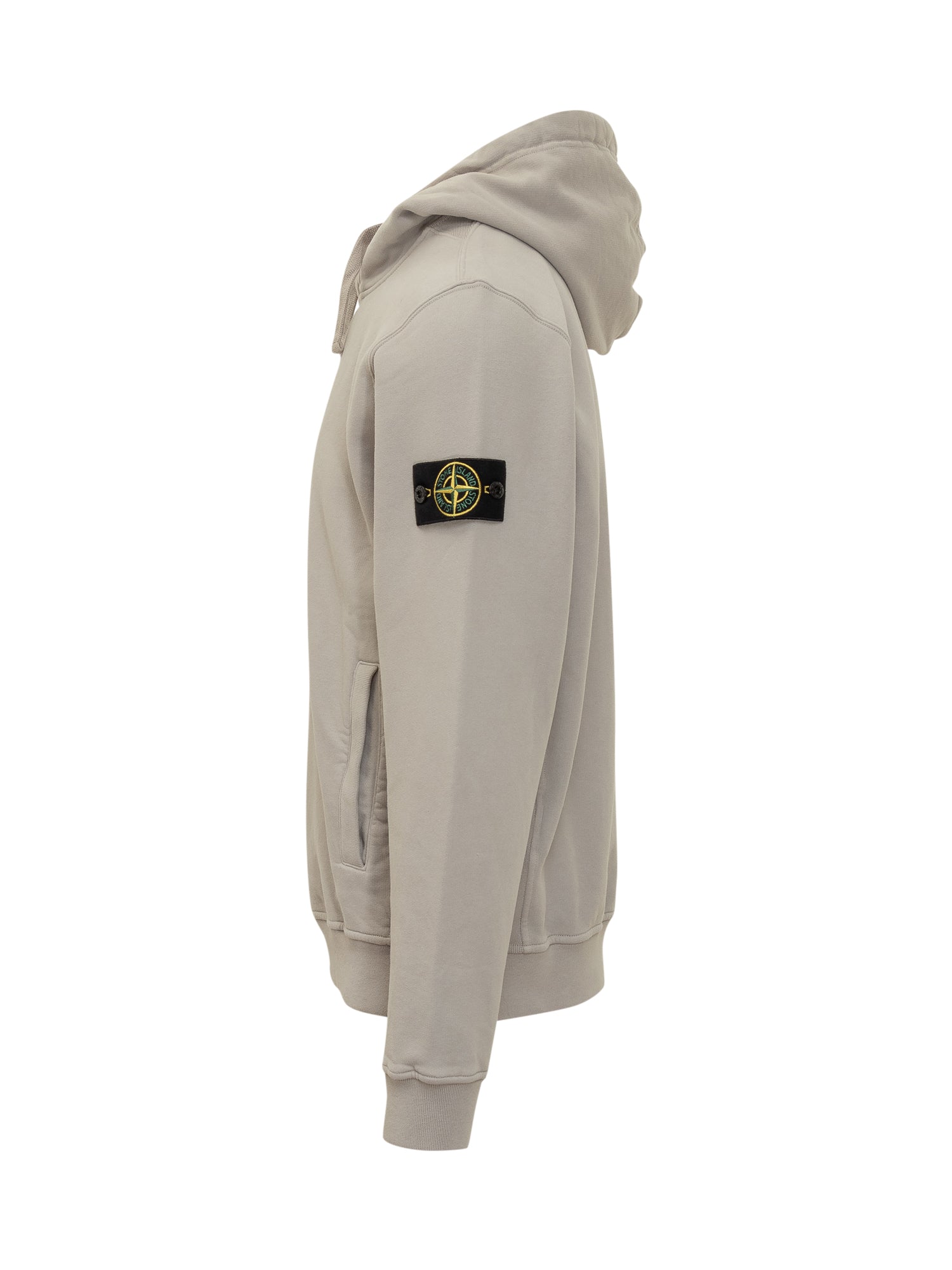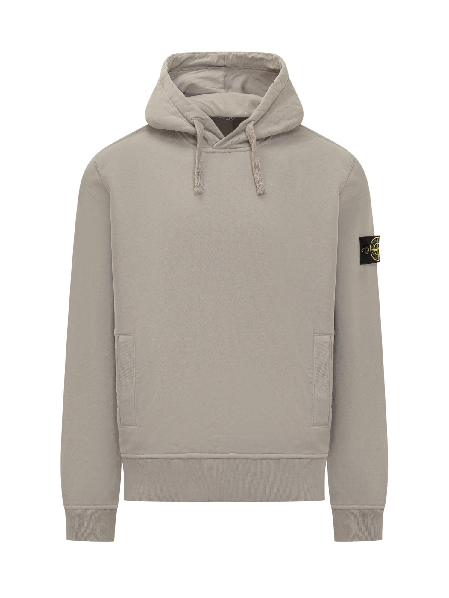 Felpa con cappuccio Stone Island in cotone tinto capo. Design minimal, tasche laterali e iconico badge sulla manica.