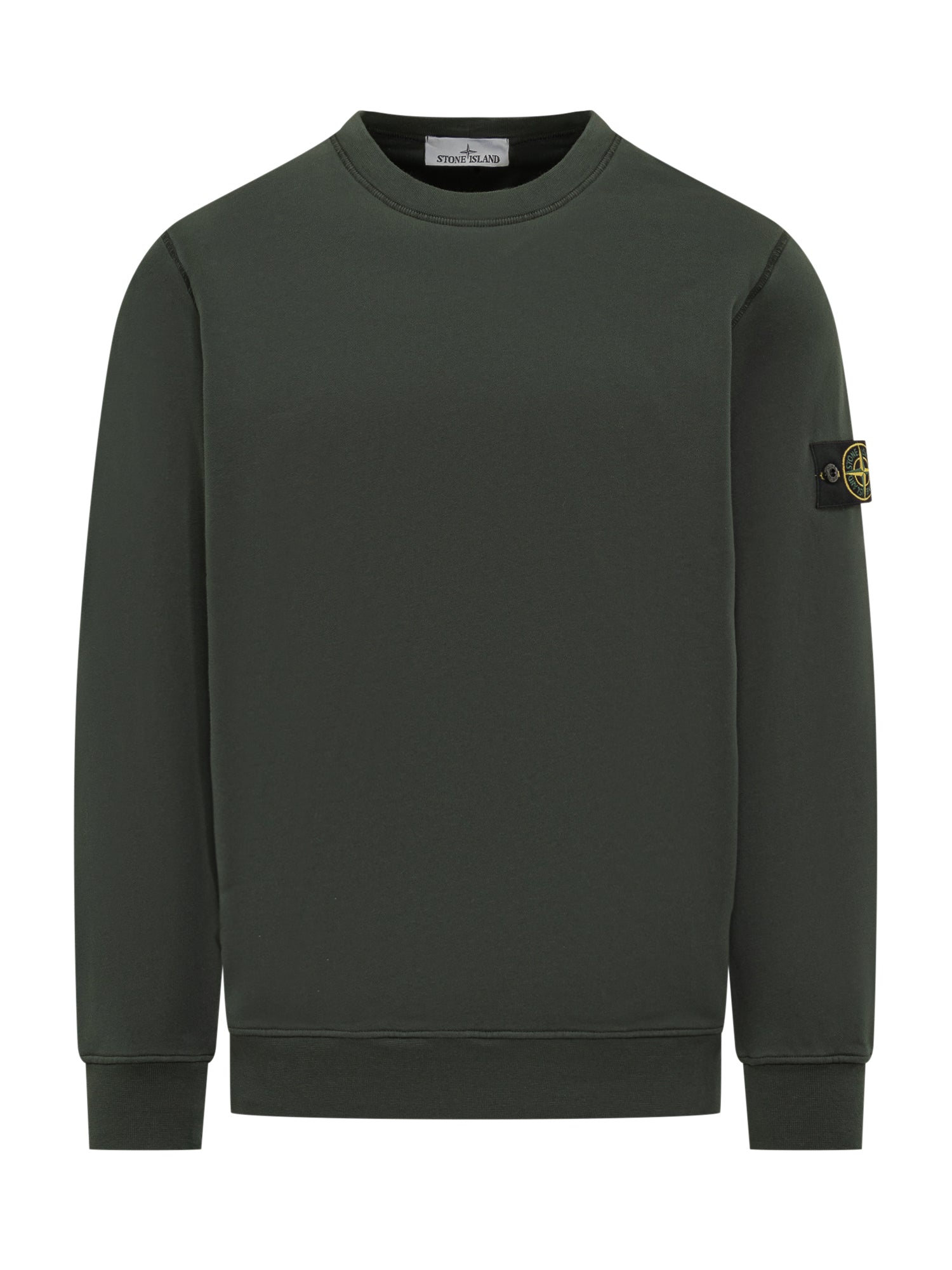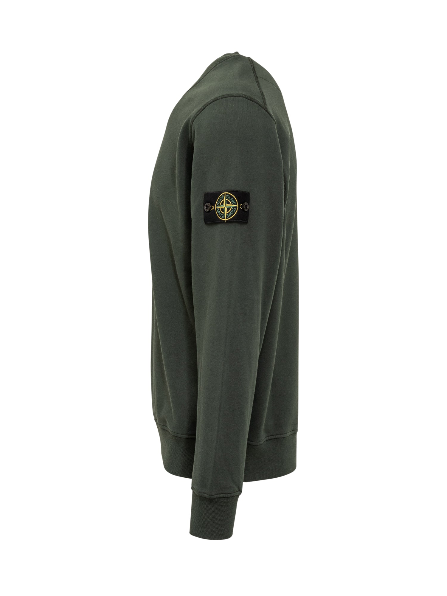 Felpa verde Stone Island con girocollo e patch logo sulla manica.