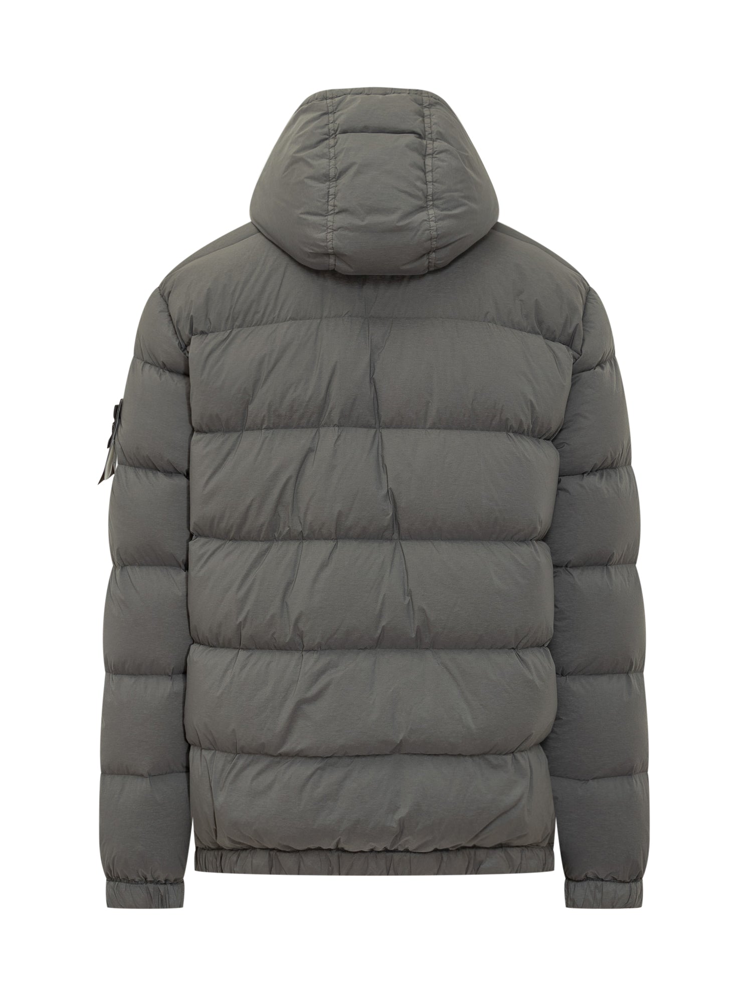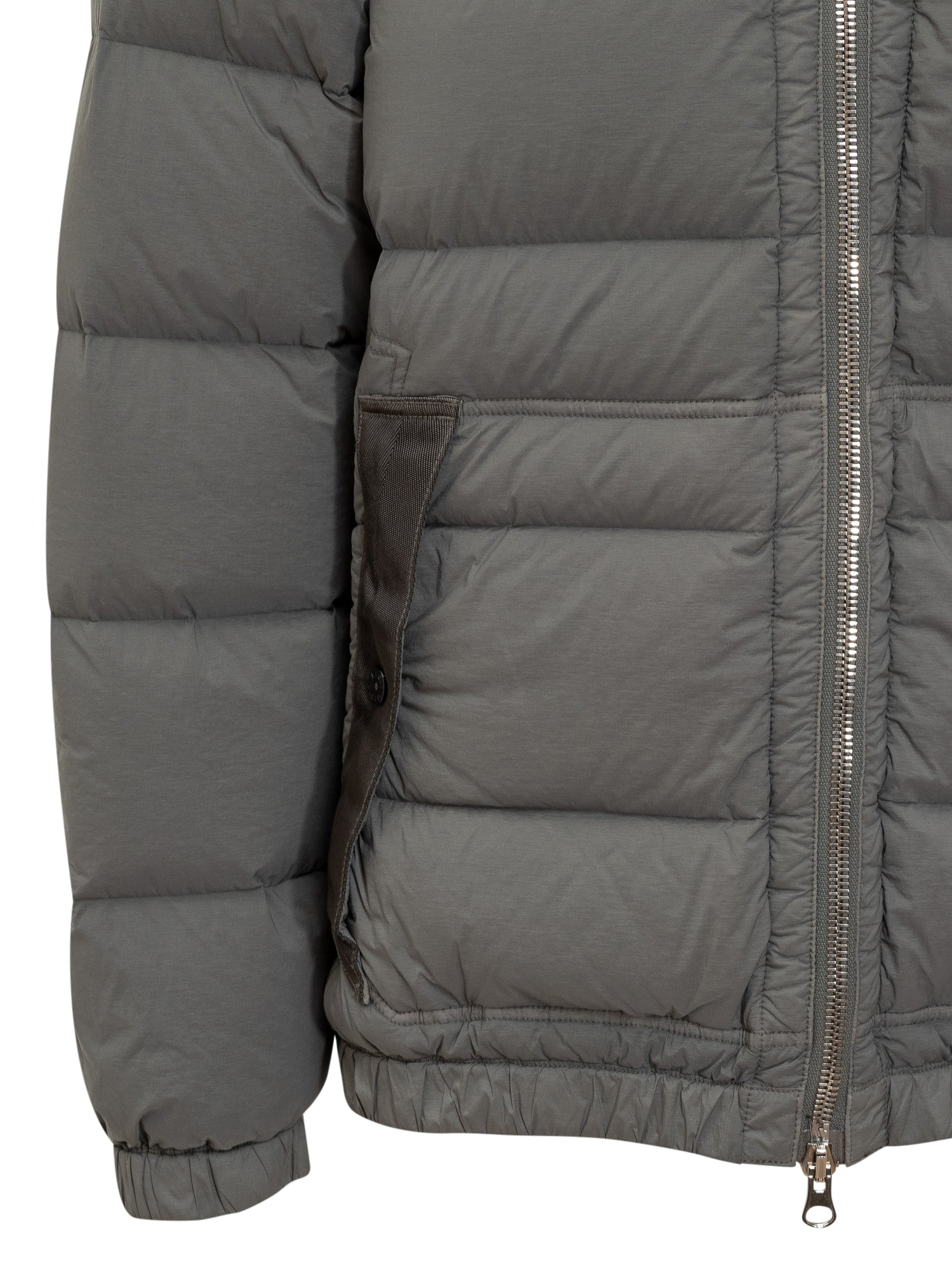 Giacca imbottita con cappuccio Stone Island, realizzata in tessuto tecnico con trapuntatura orizzontale. Chiusura con zip a doppio cursore, polsini elasticizzati e tasche laterali con zip.