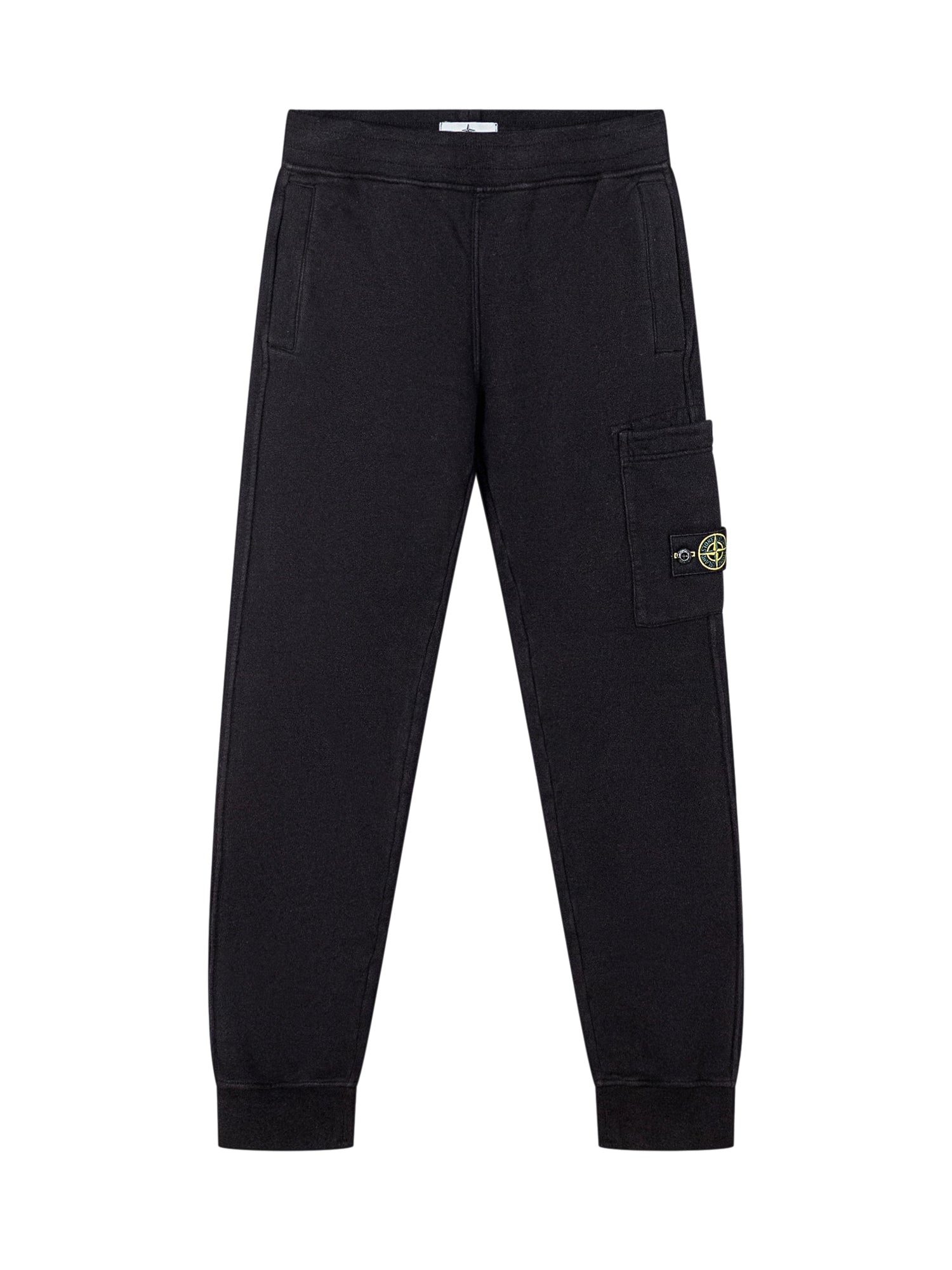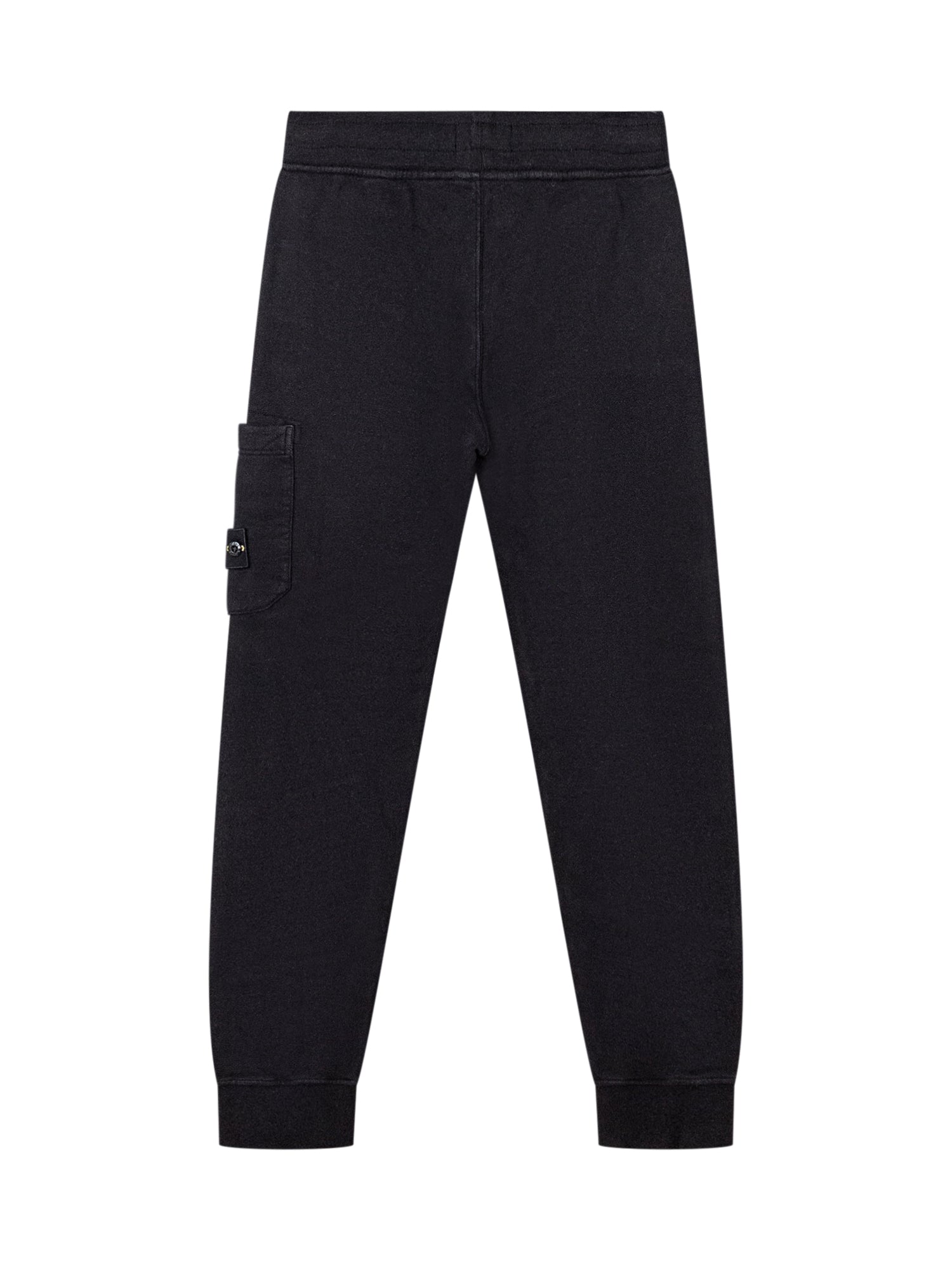 Pantaloni cargo Stone Island Kids in cotone nero con tasche laterali e logo sulla gamba.