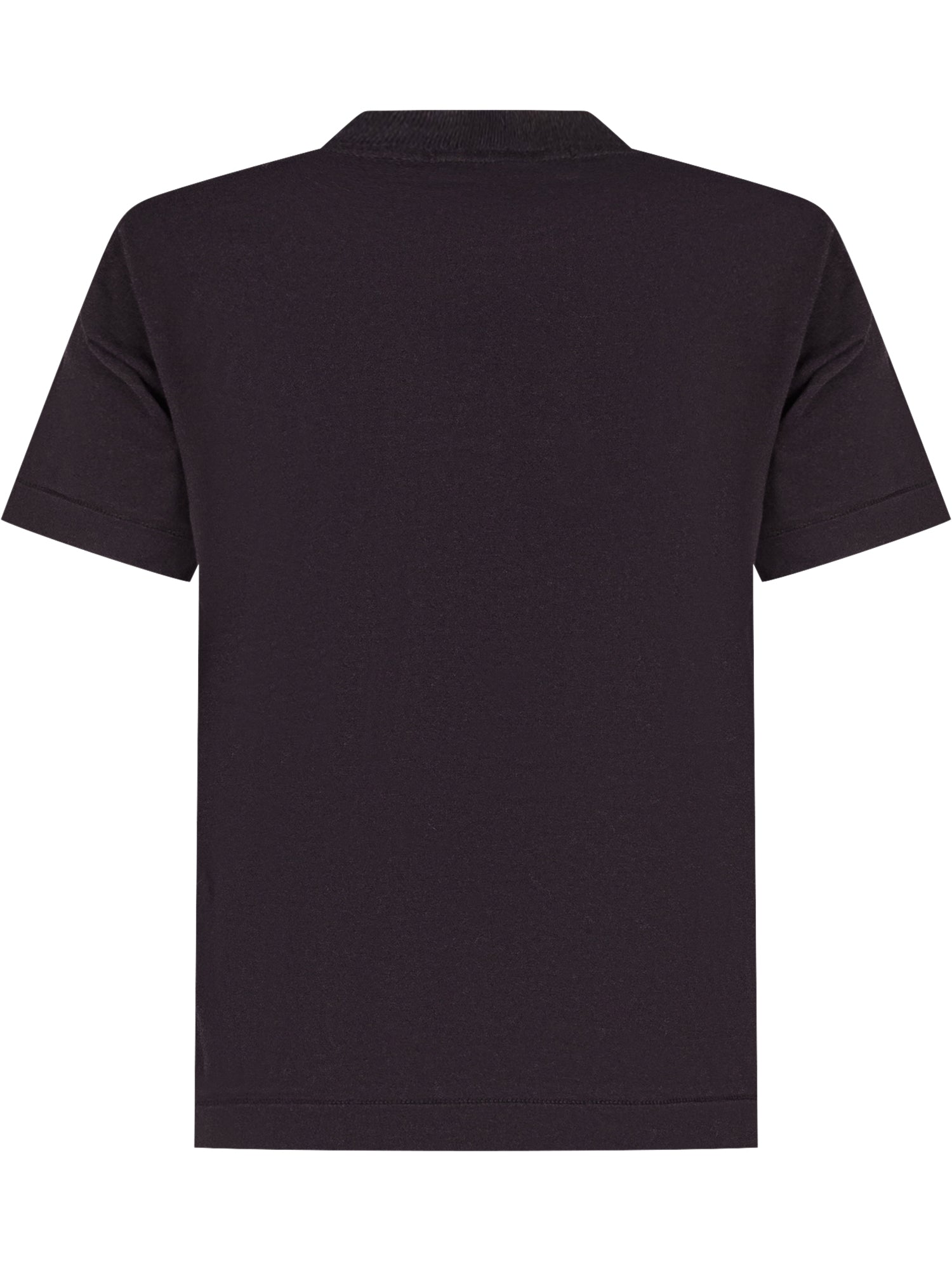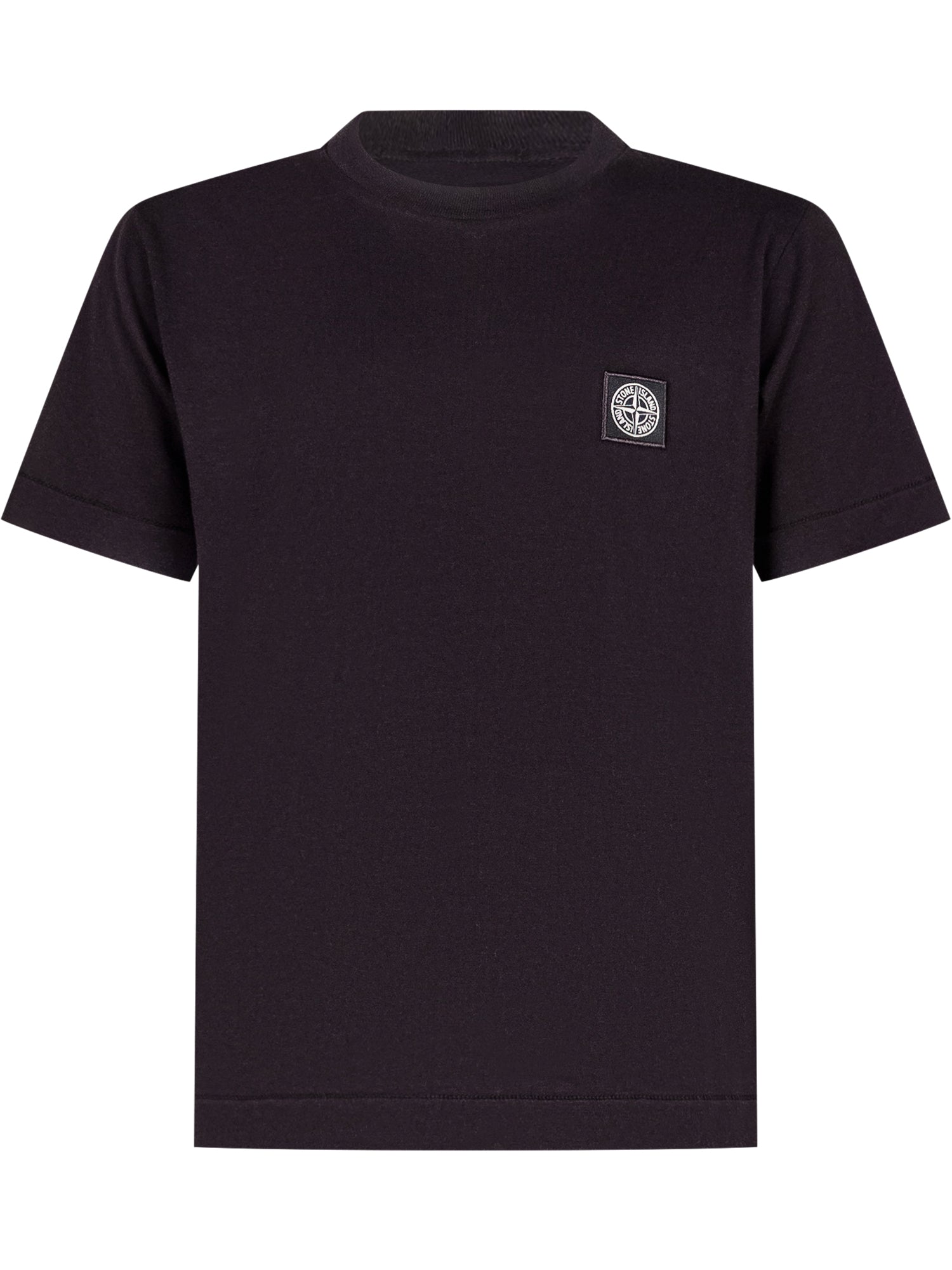 T-shirt nera Stone Island in cotone con iconico logo patch sul petto.