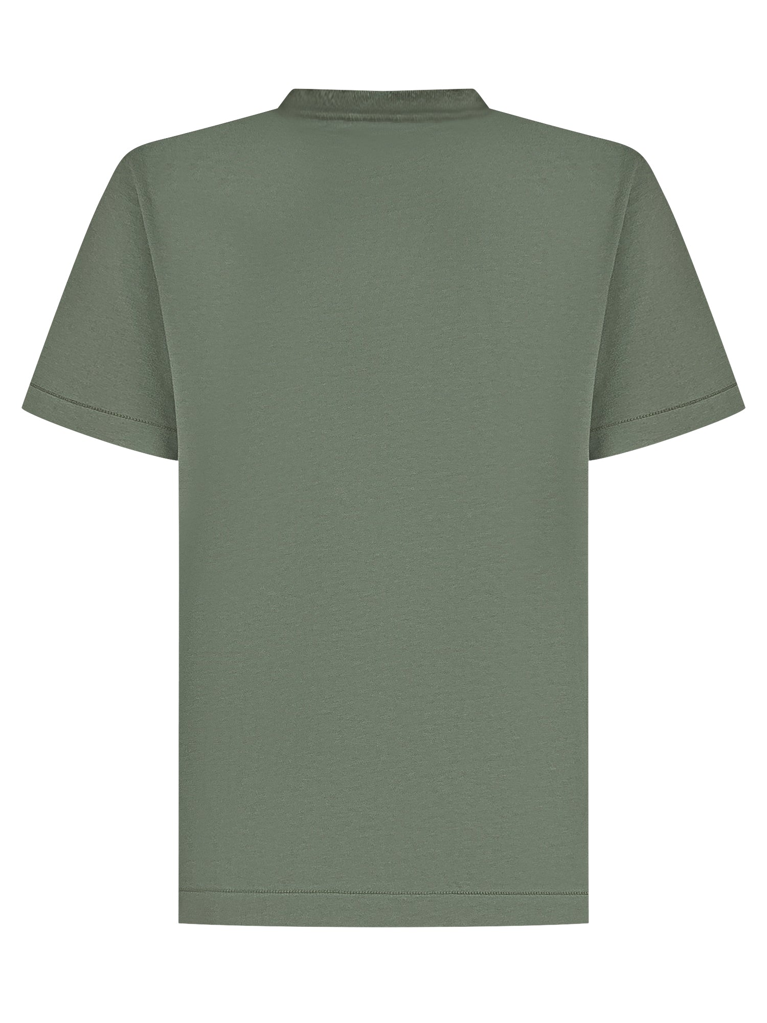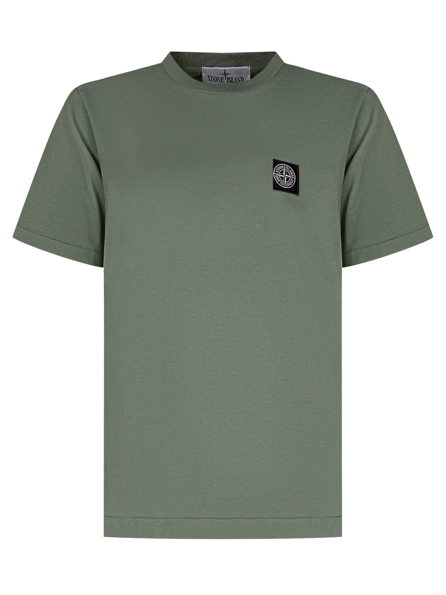T-shirt verde Stone Island in puro cotone con logo patch sul petto.