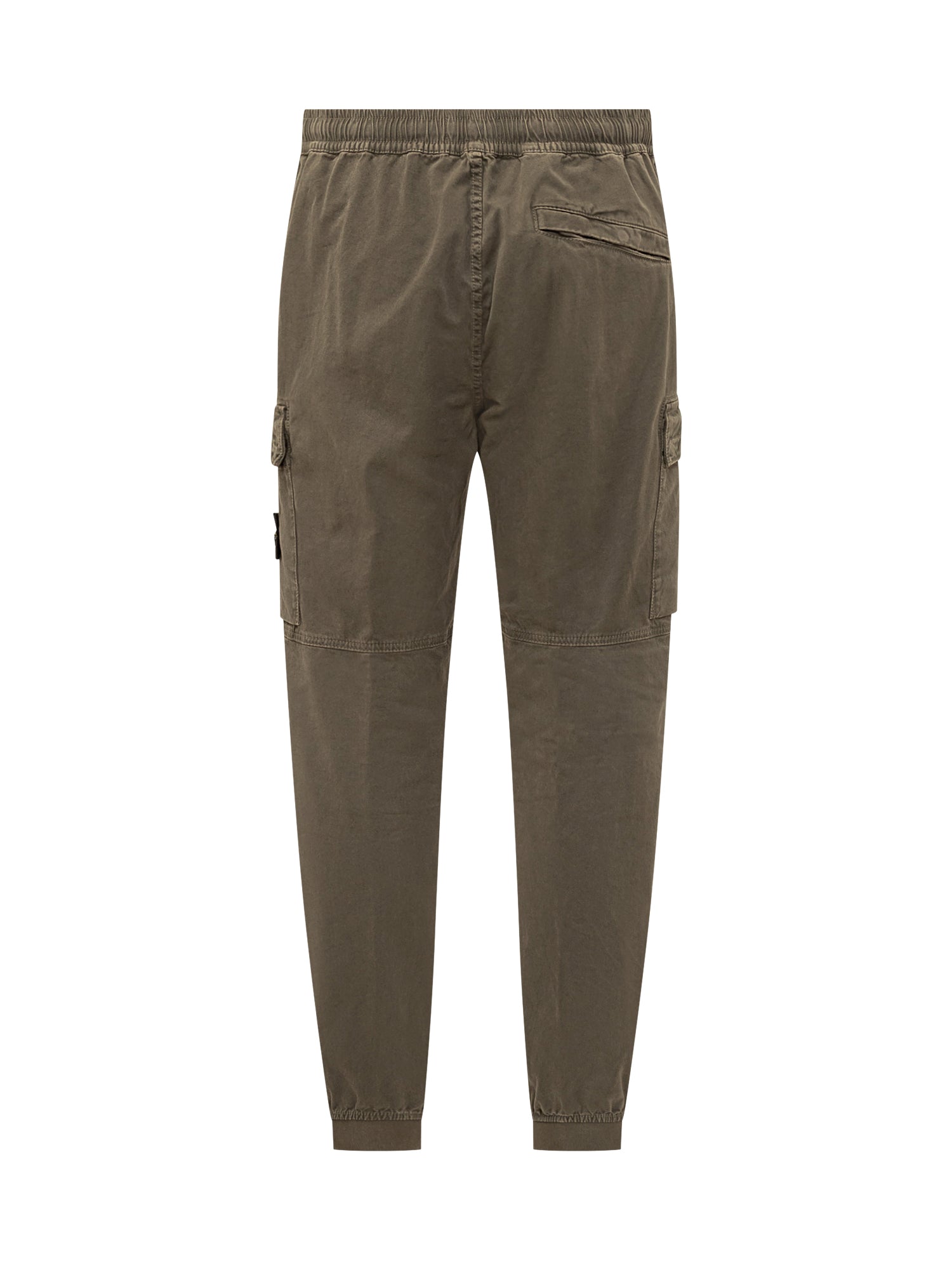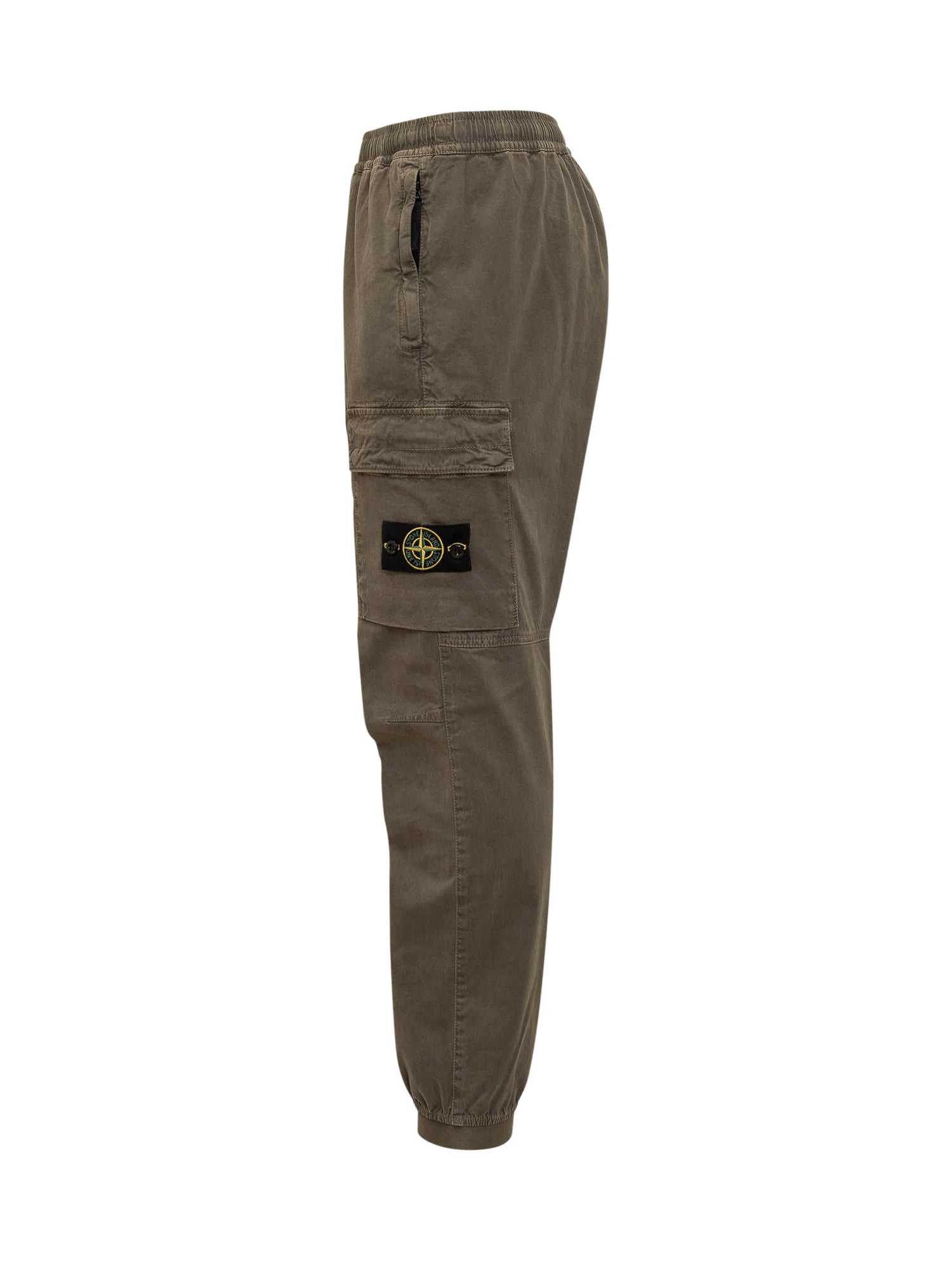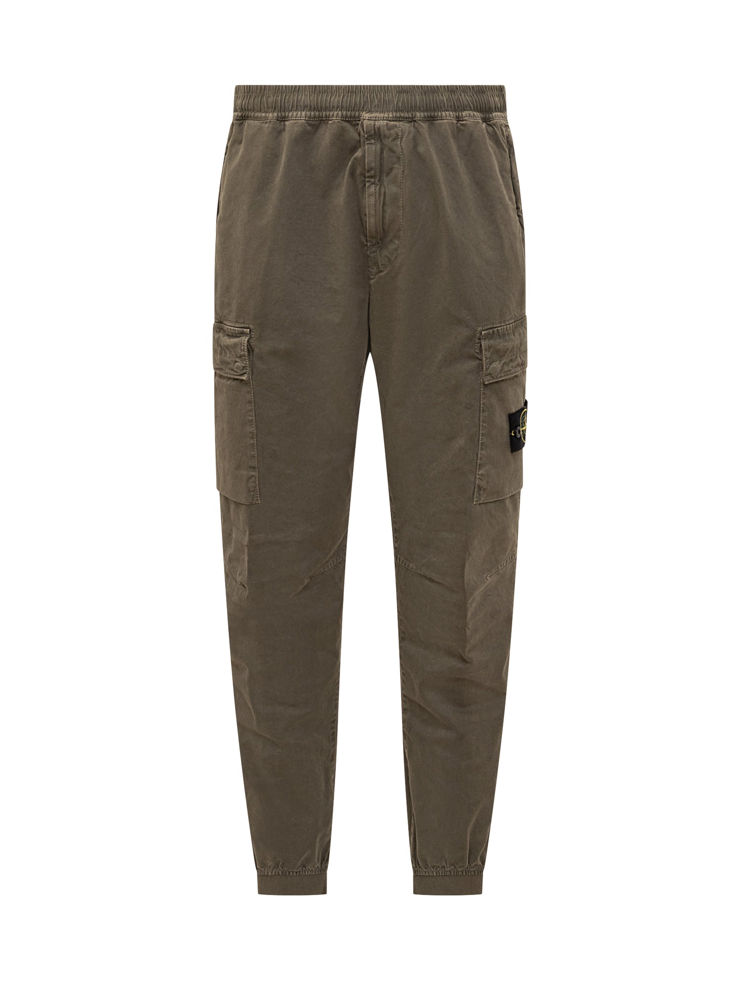 Pantaloni cargo in cotone tinto capo con tasche laterali e polsini elasticizzati. Logo Stone Island sulla gamba, stile utility e comfort urbano.