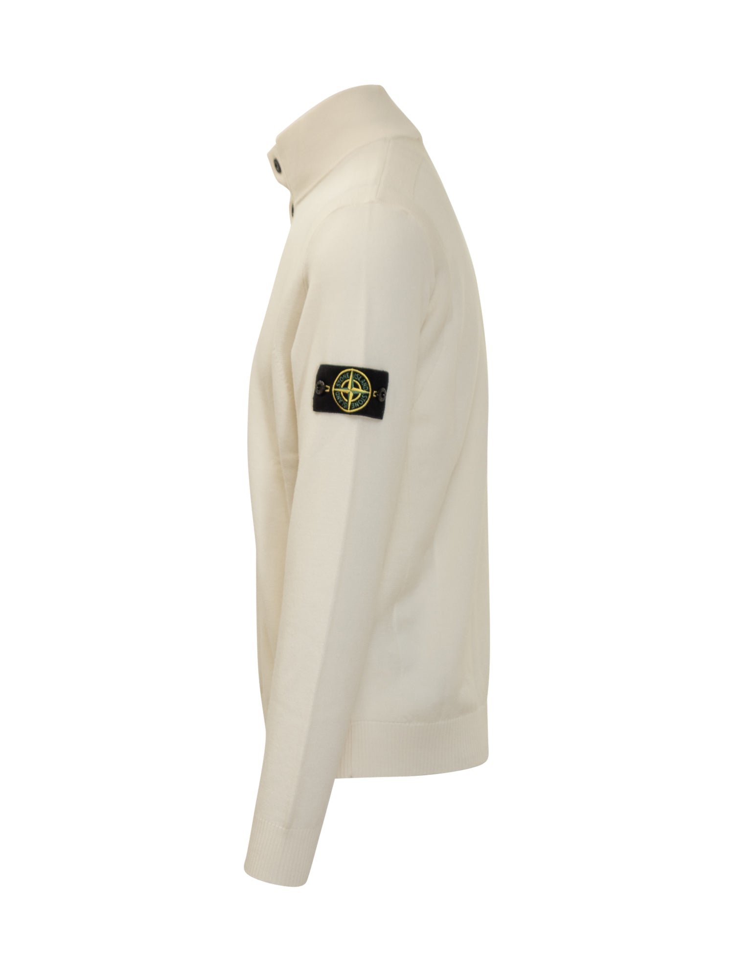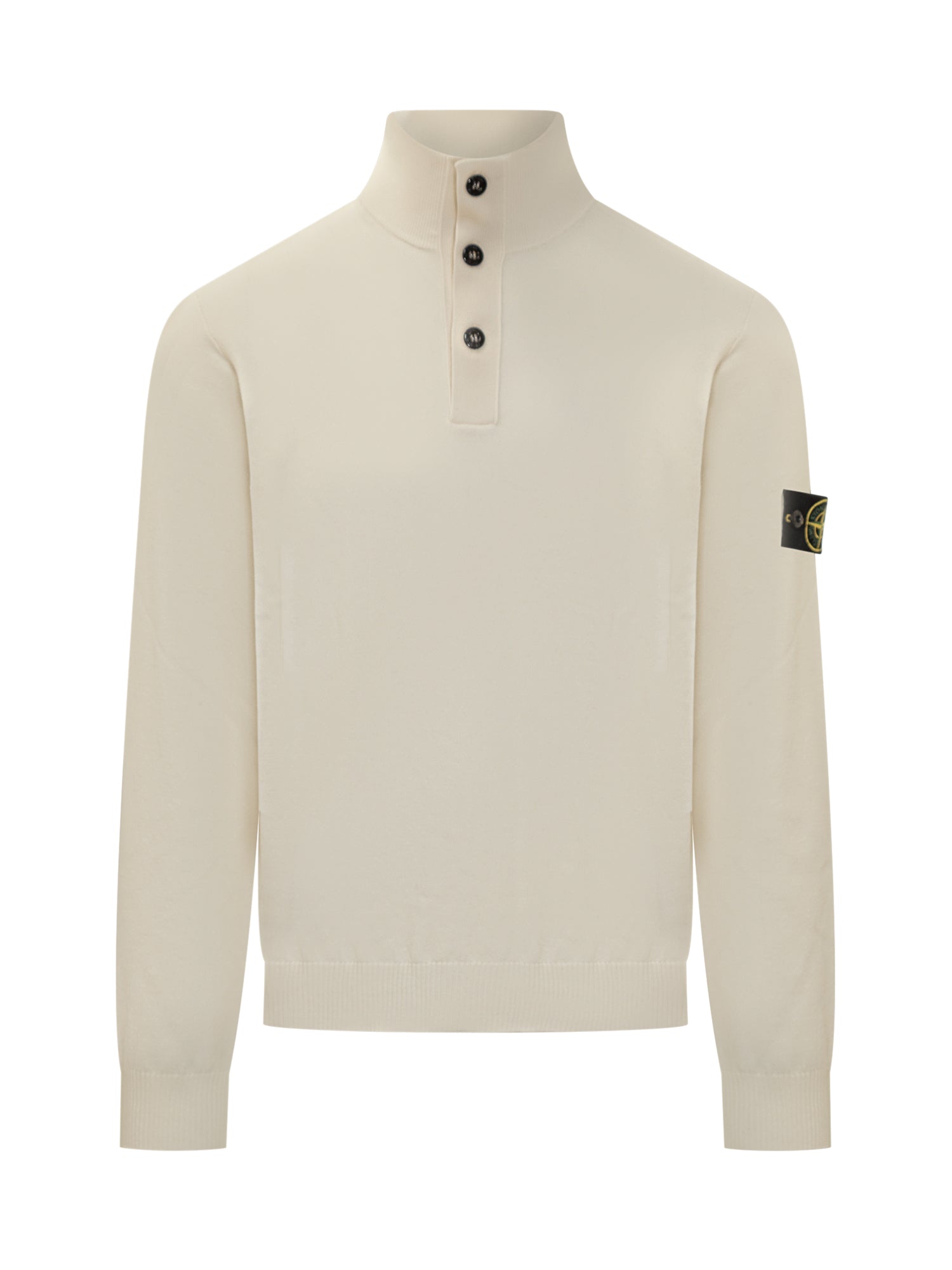 Polo a maniche lunghe Stone Island in cotone leggero, caratterizzata da collo alto con chiusura a tre bottoni.