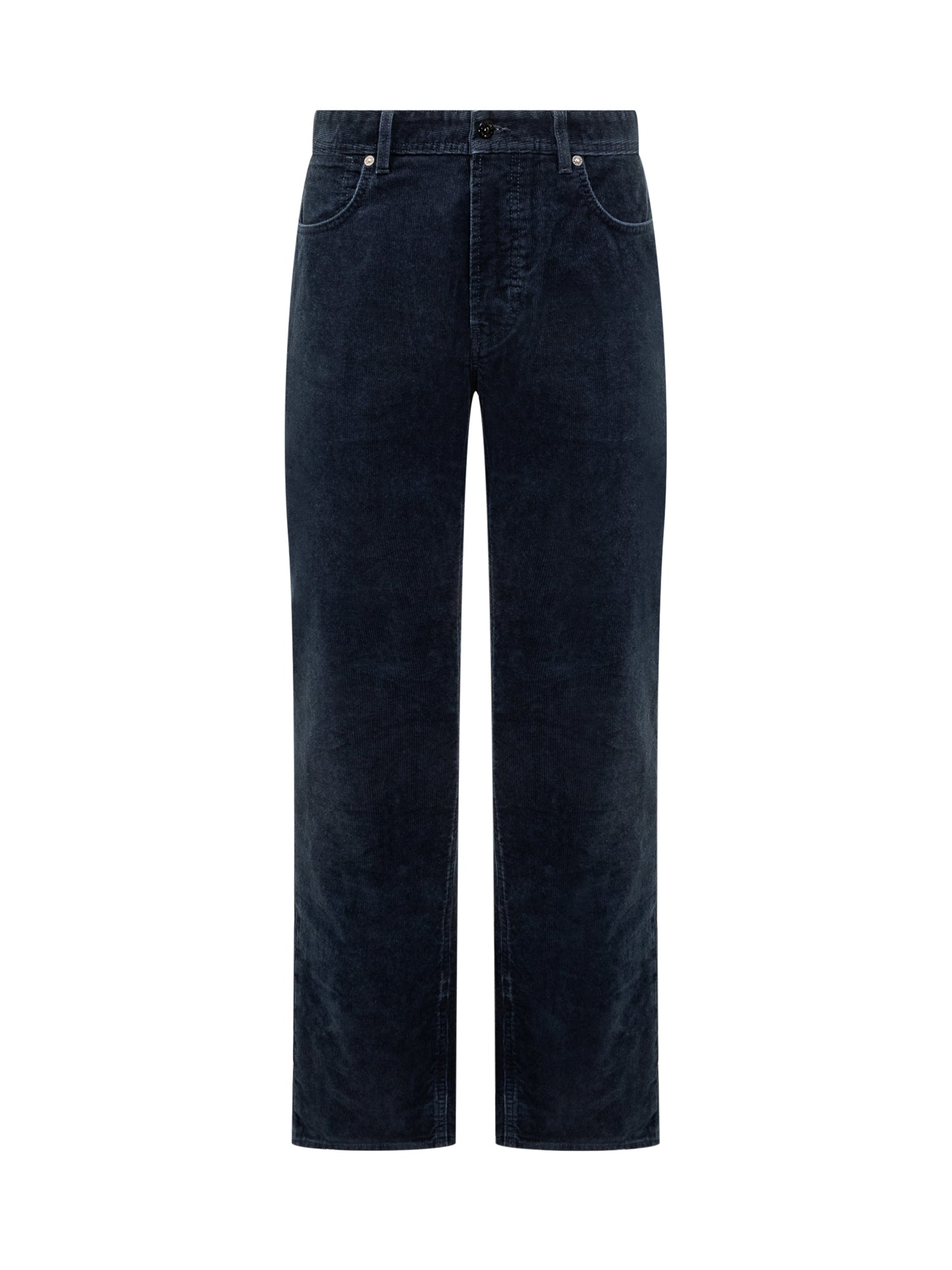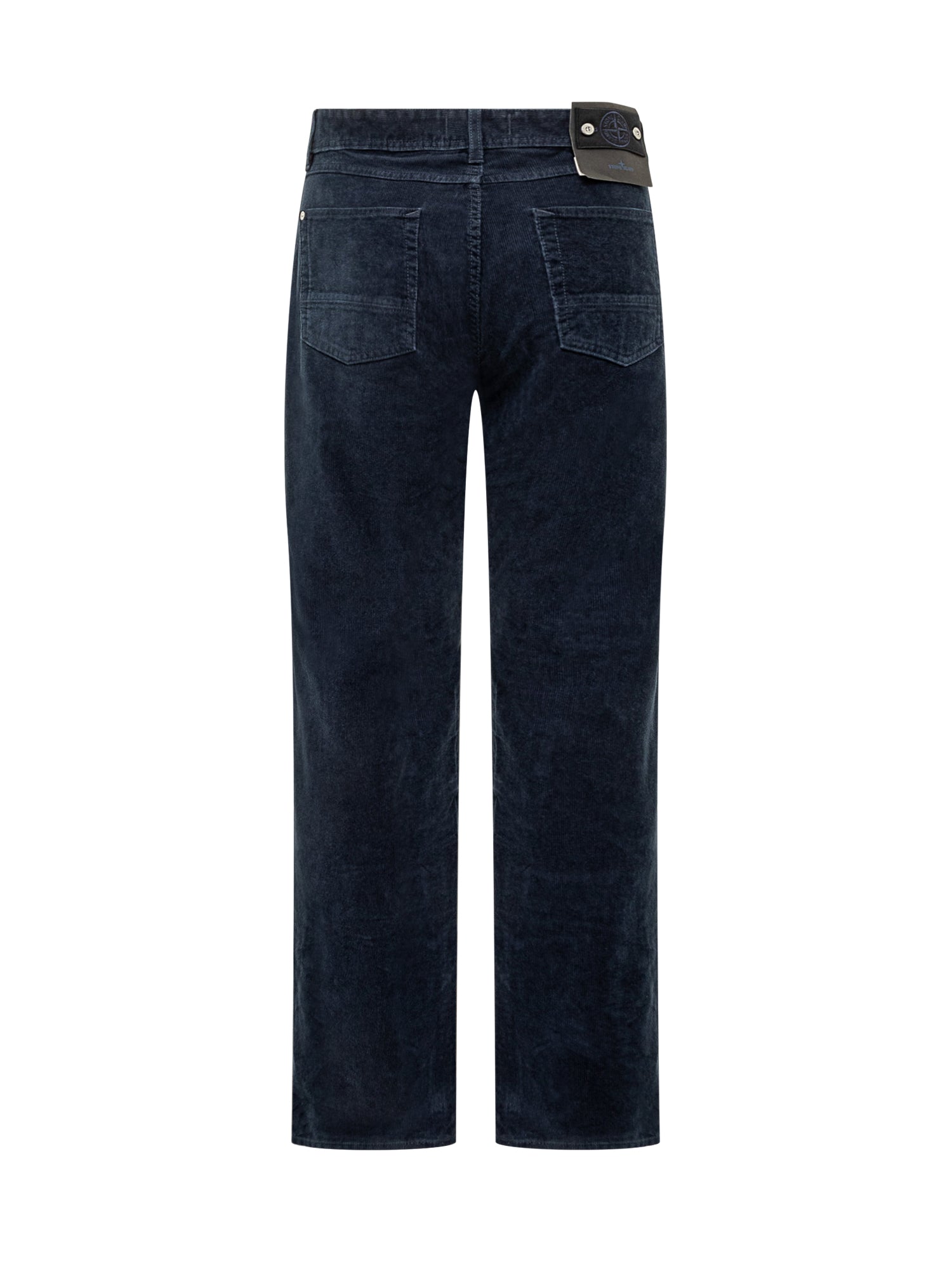 Chiusura con bottoni. Pantaloni Stone Island in velluto blu navy con vestibilità dritta, tasche laterali e posteriori.