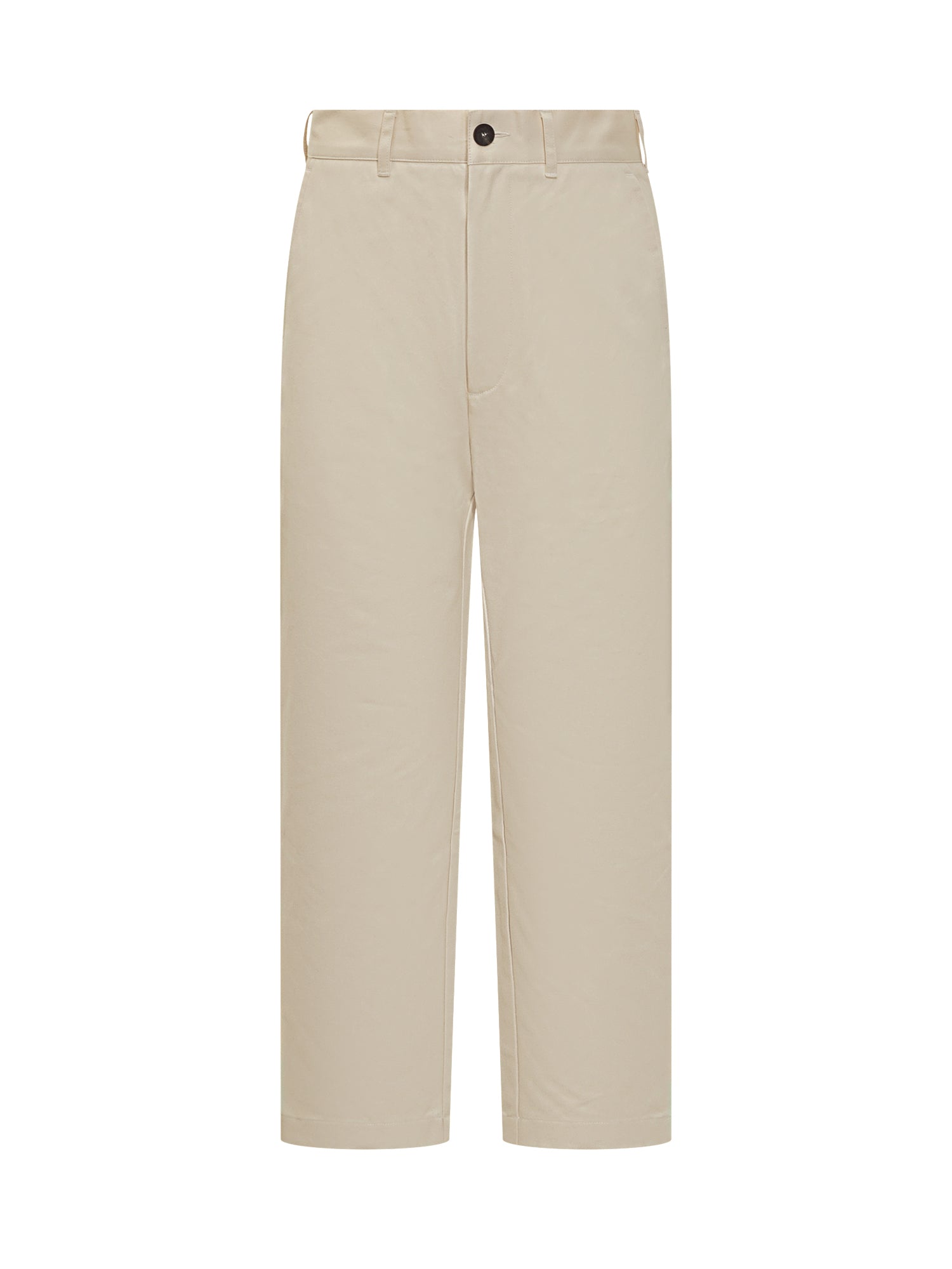 Pantaloni Studio Nicholson in cotone beige con linea dritta e vita media. Essenziali e versatili.