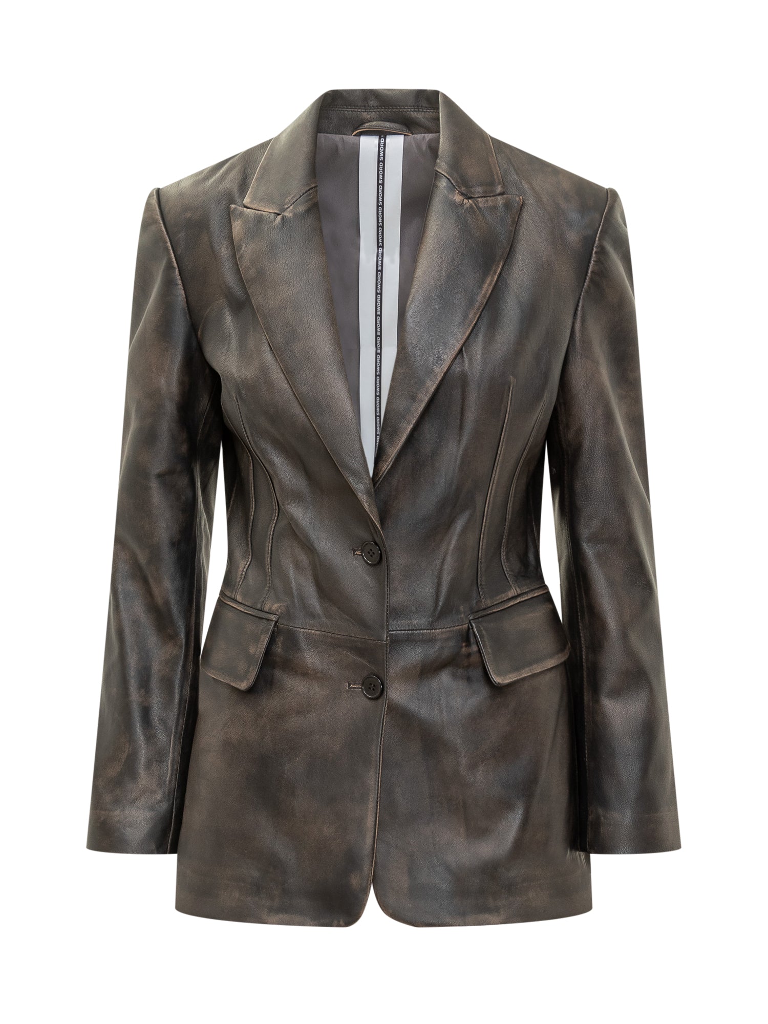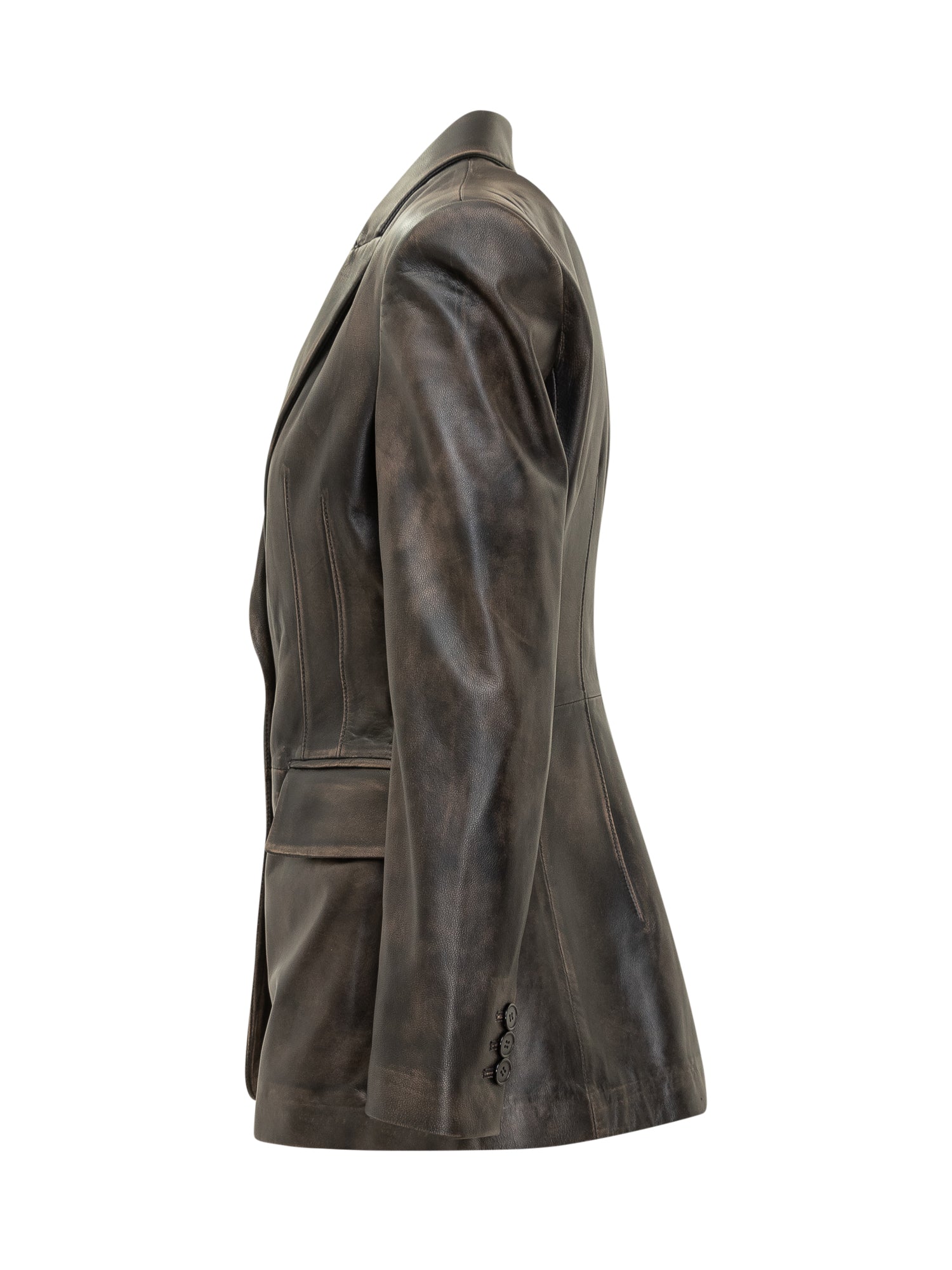 Blazer Sword in pelle nera effetto vintage con chiusura a due bottoni e tasche con patta.
