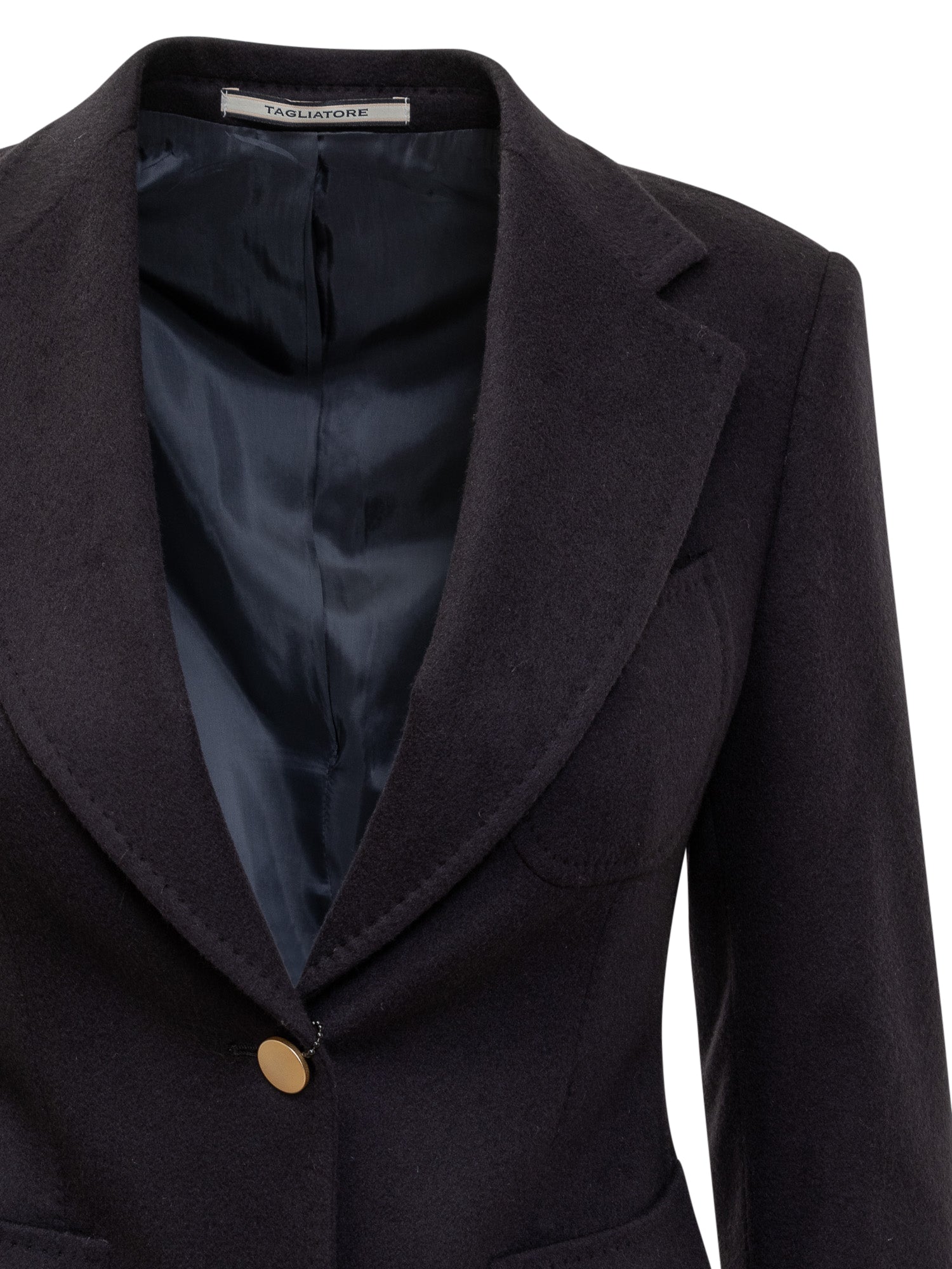 Blazer con scollo a V con revers. Chiusura con bottoni. Tre tasche.