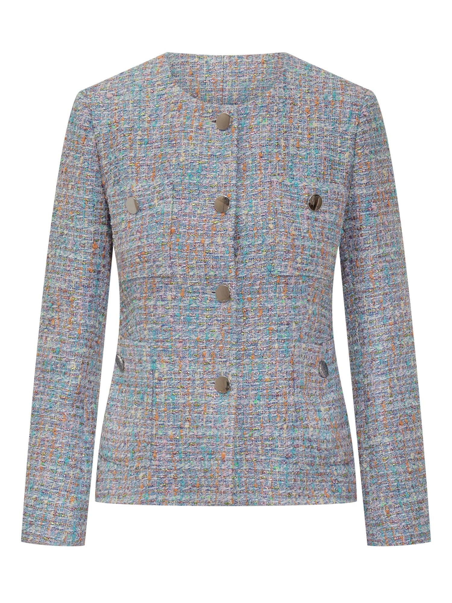 Girocollo. Chiusura con bottoni. Maniche lunghe. Tasche applicate con bottone.