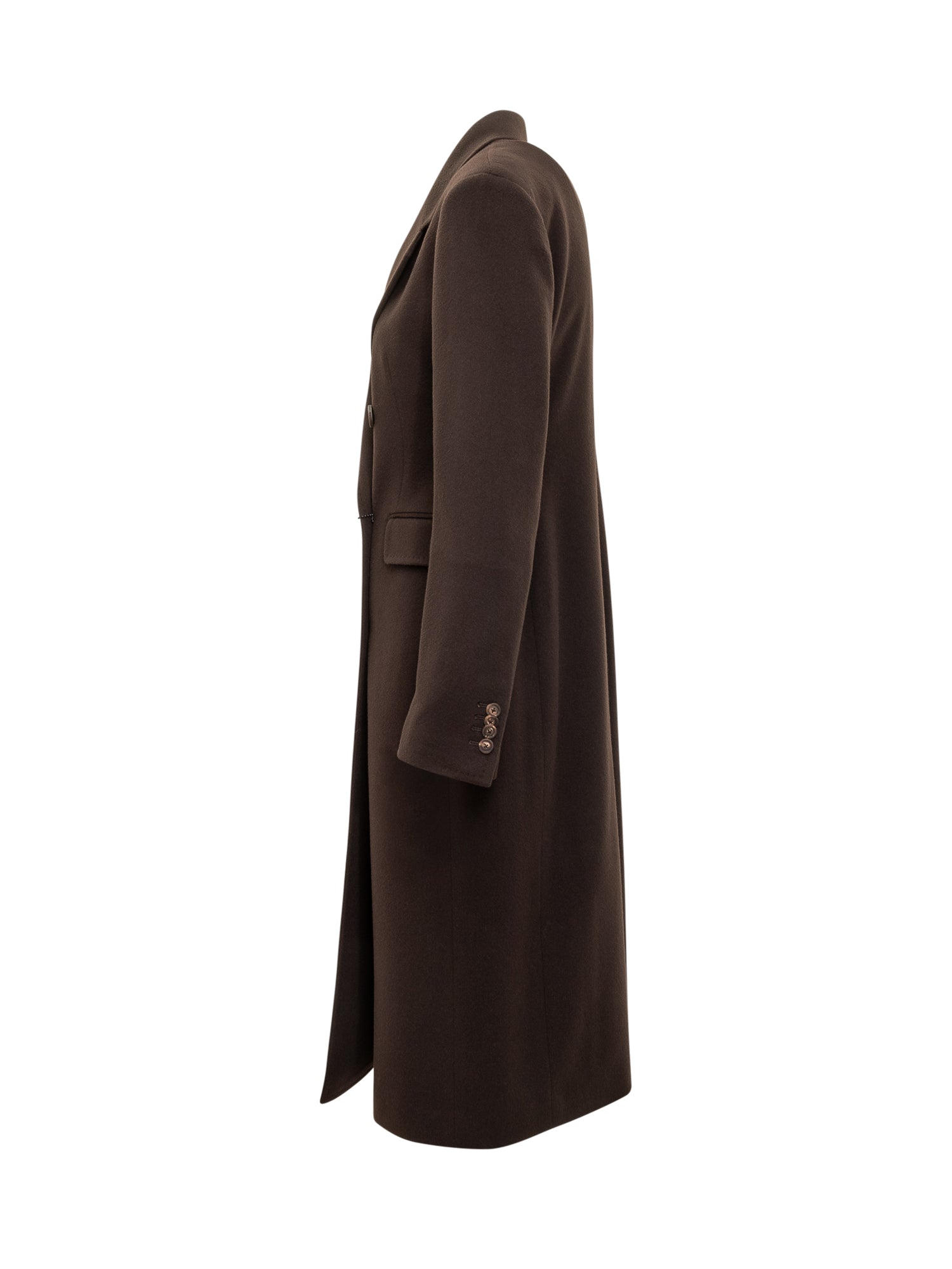 Blazer Tagliatore da donna in lana e cashmere nero, doppiopetto con bottoni rivestiti e taglio sartoriale.