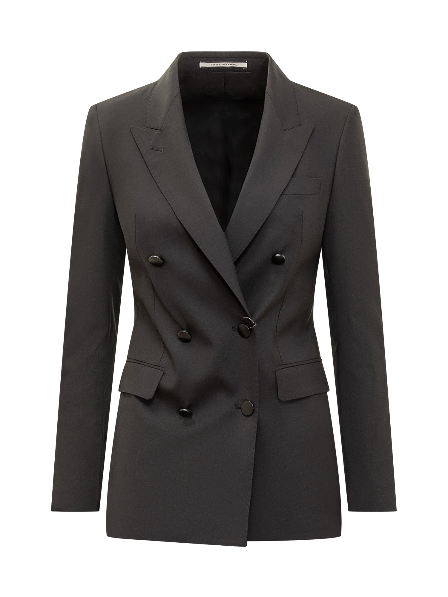 Cappotto Tagliatore da donna in lana marrone, con design doppiopetto e spalle strutturate.