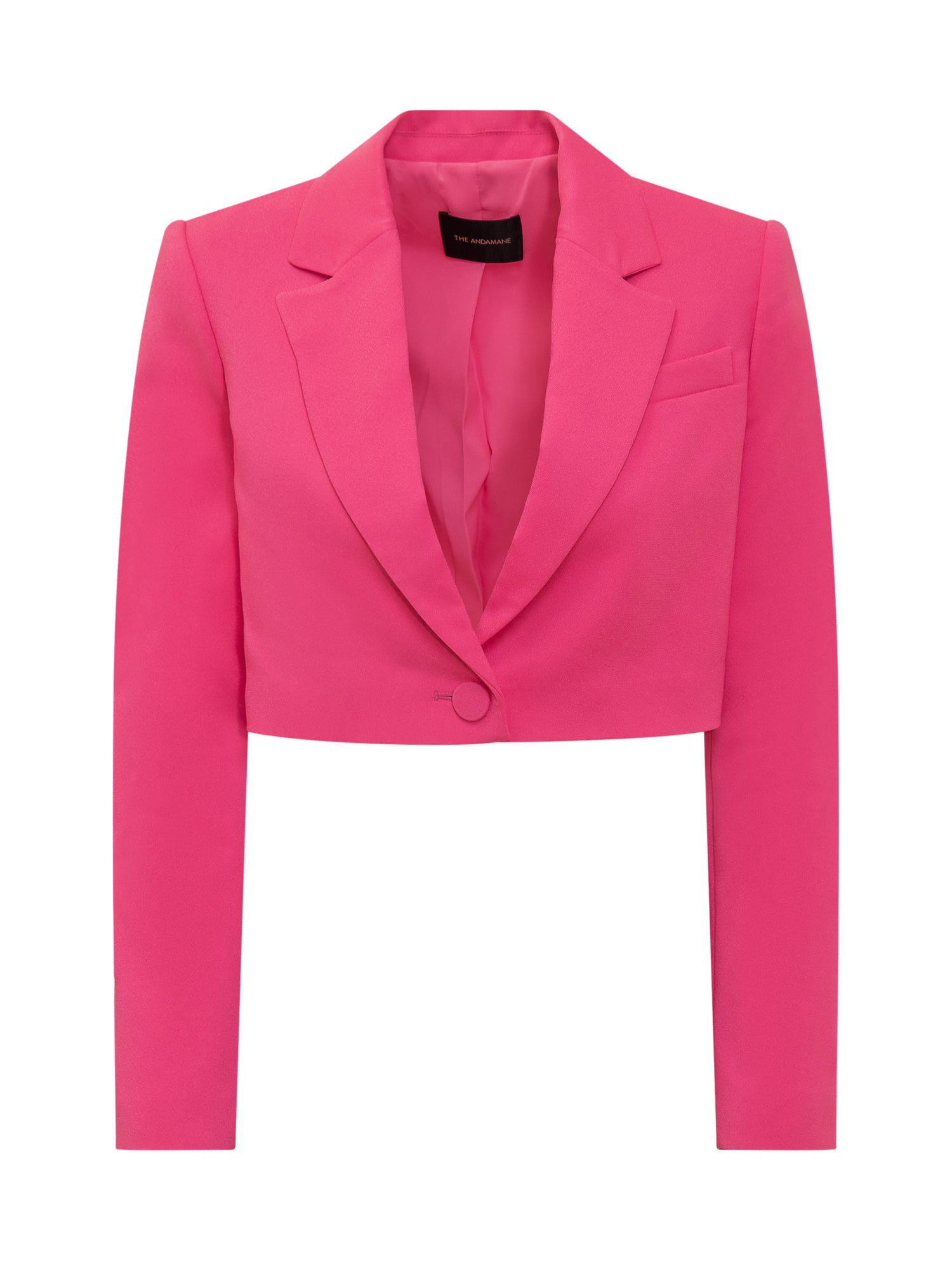 Blazer cropped. Chiusura con bottone. Bottoni sui polsi.