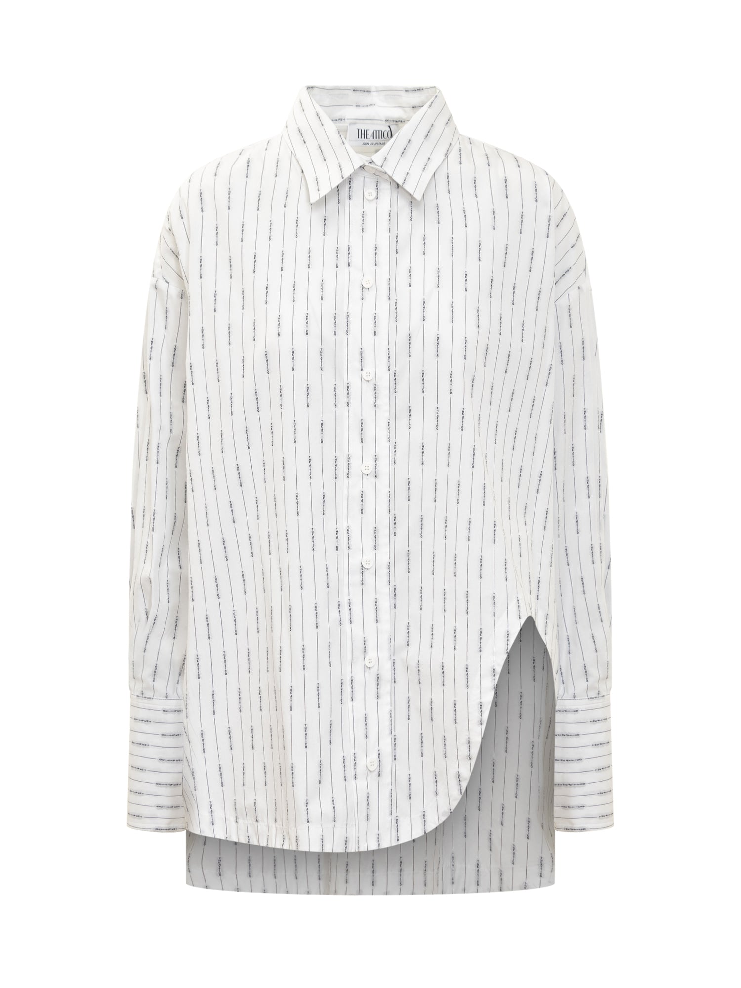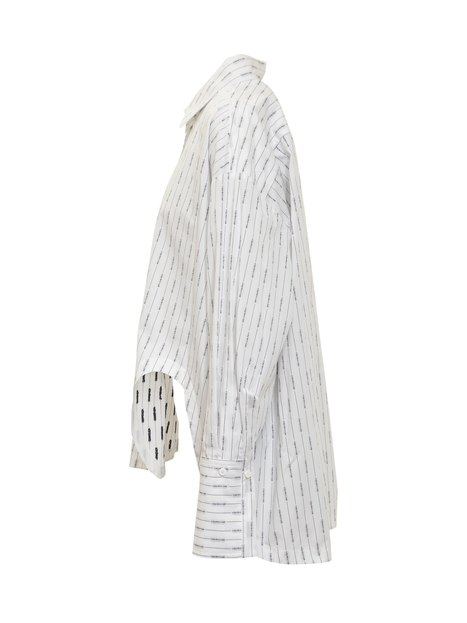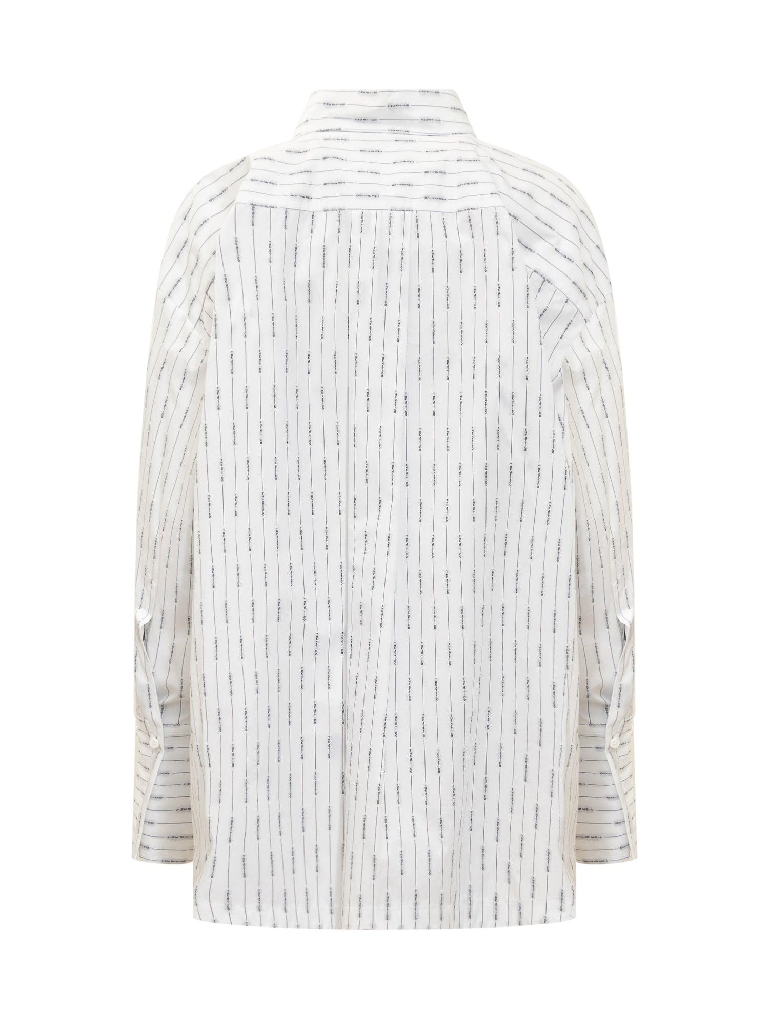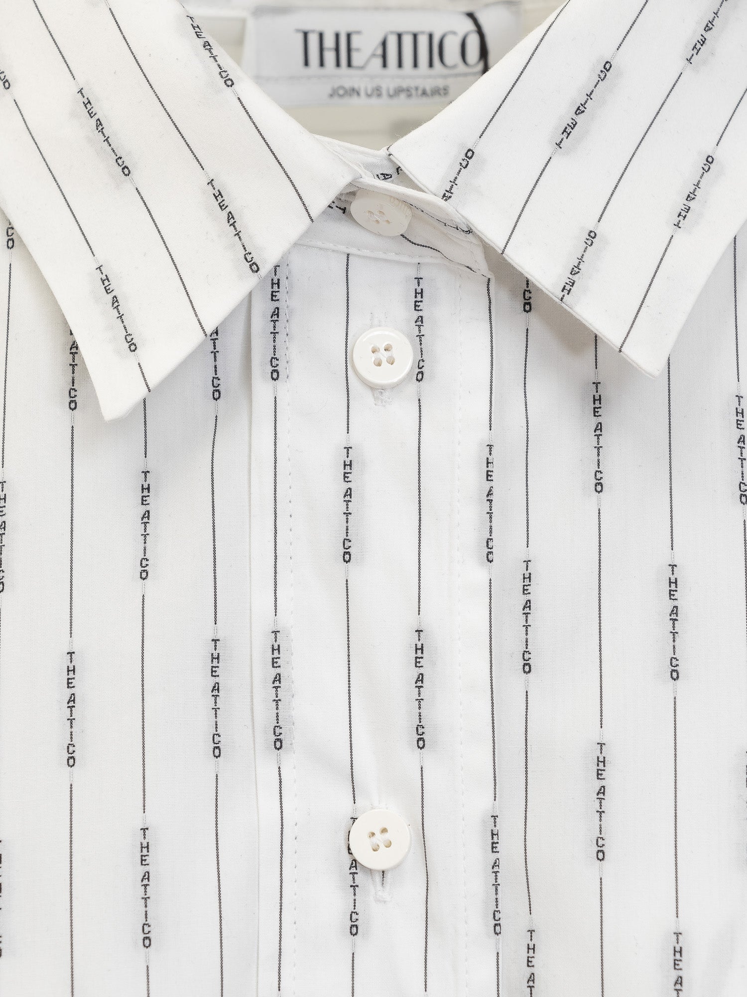 Camicia bianca e nera. Maniche lunghe. Chiusura con bottoni. Logo all-over. Spacco sagomato.