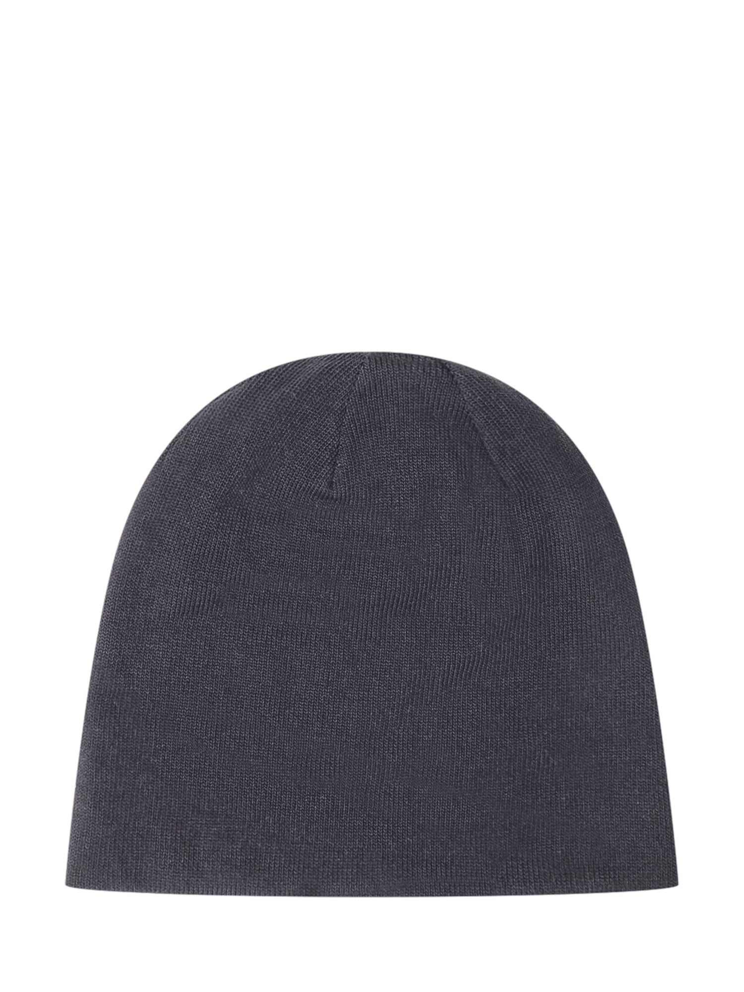 Cappello The North Face in maglia grigia con maxi logo bianco sul davanti.