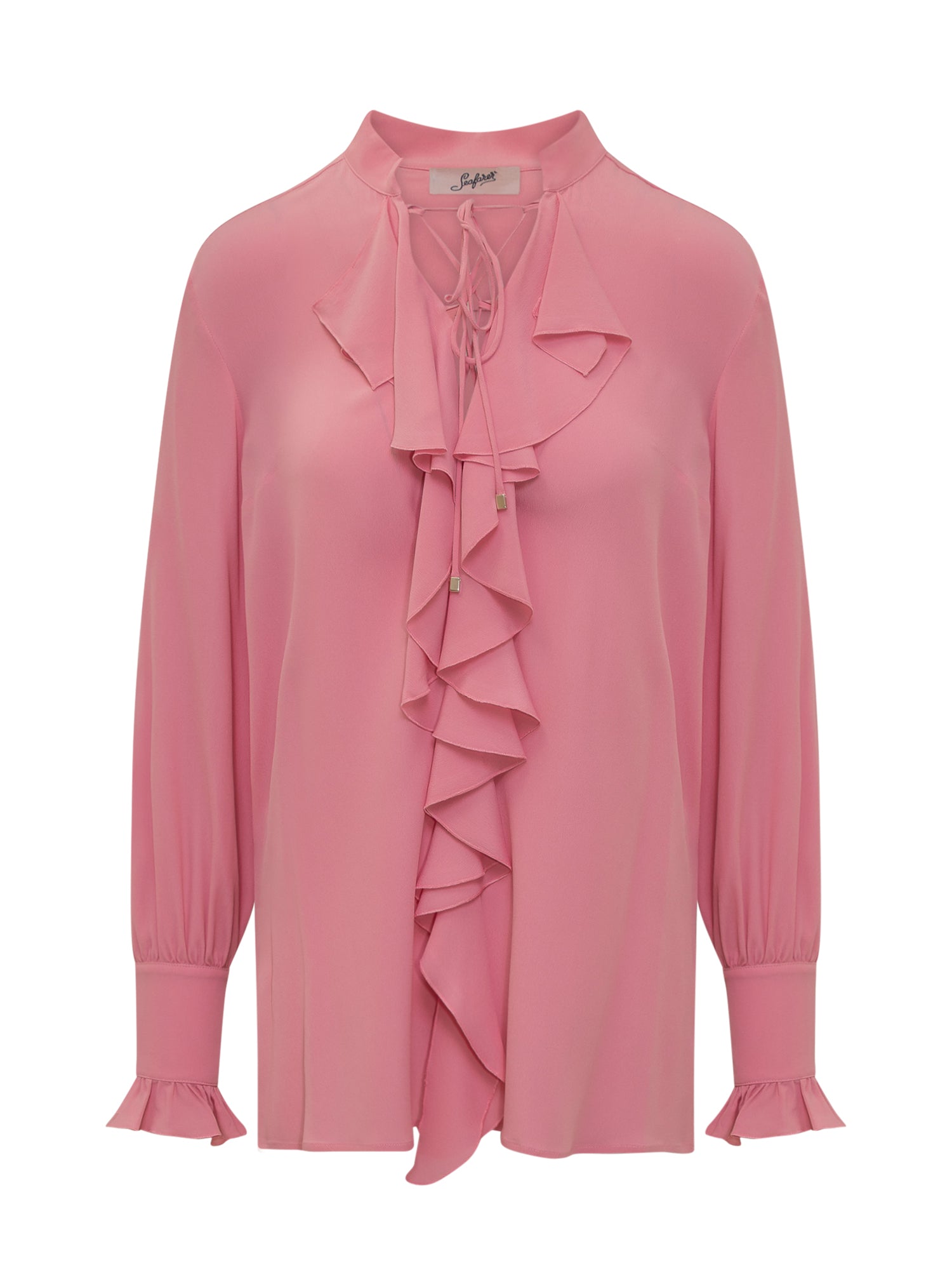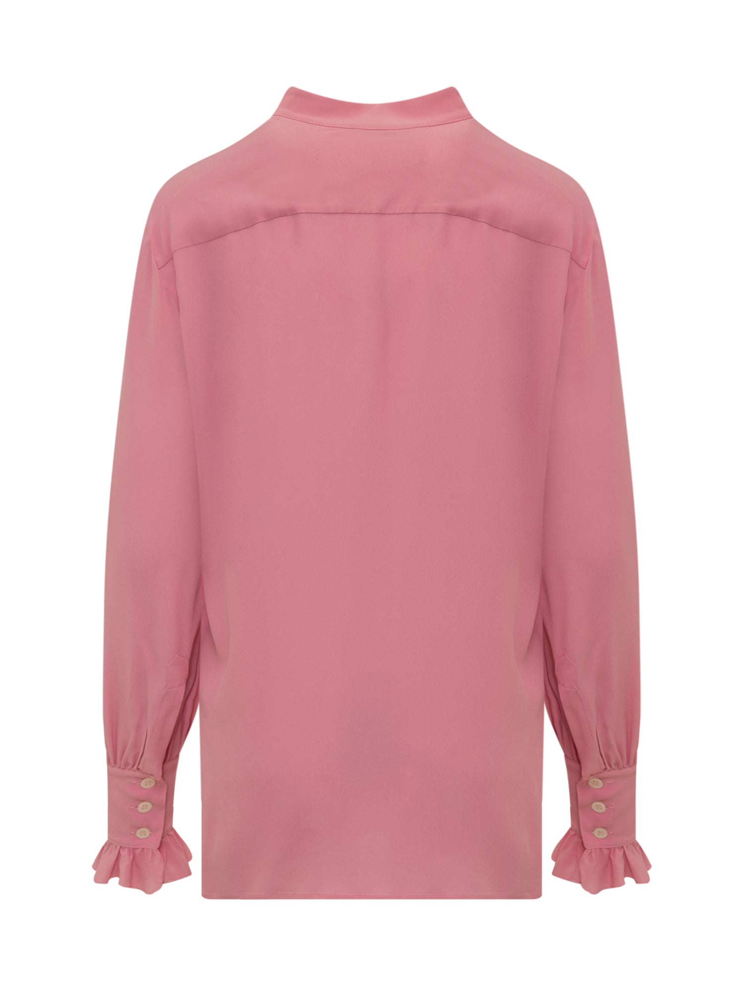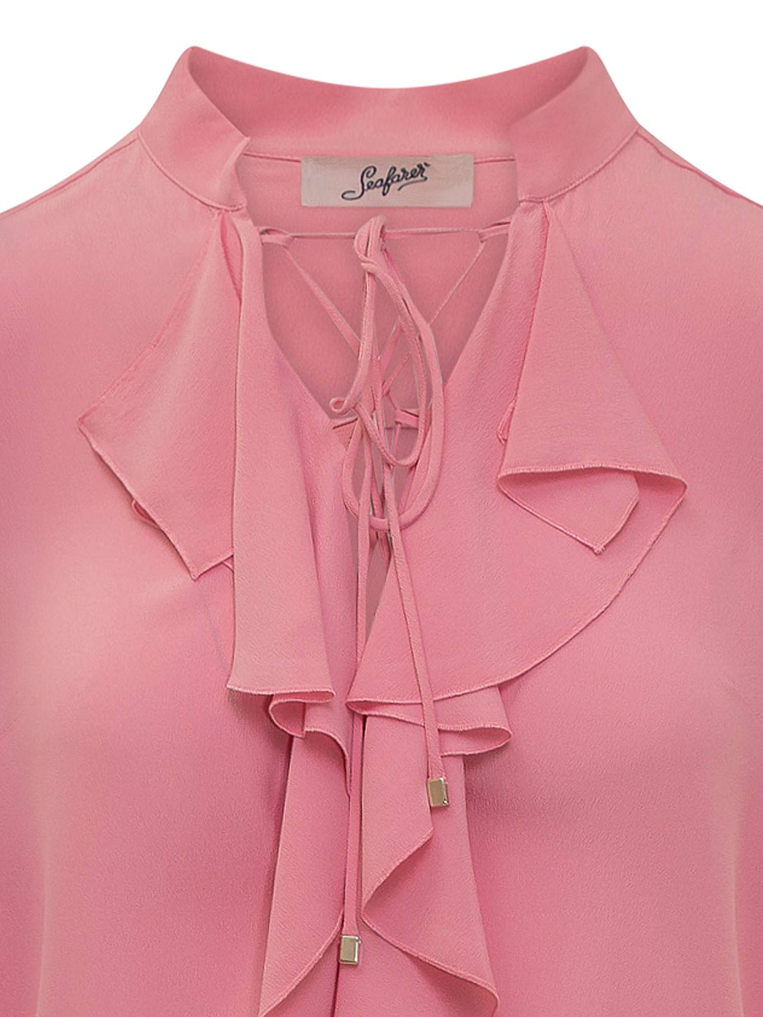 Camicia a maniche lunghe. Chiusura con lacci sul petto. Bottoni sui polsi. Spacchi laterali.