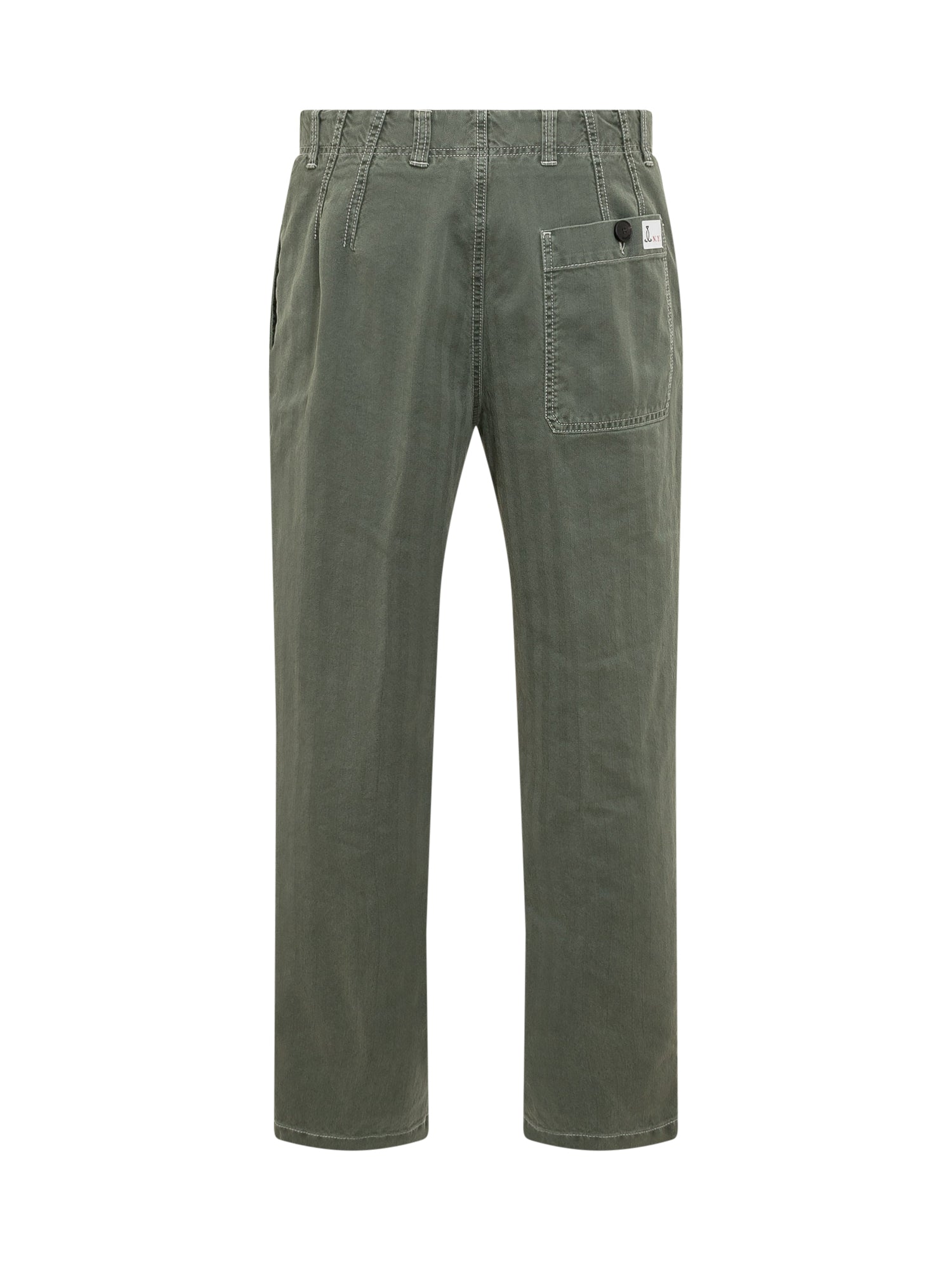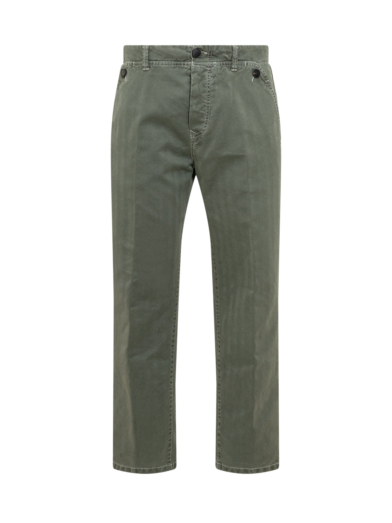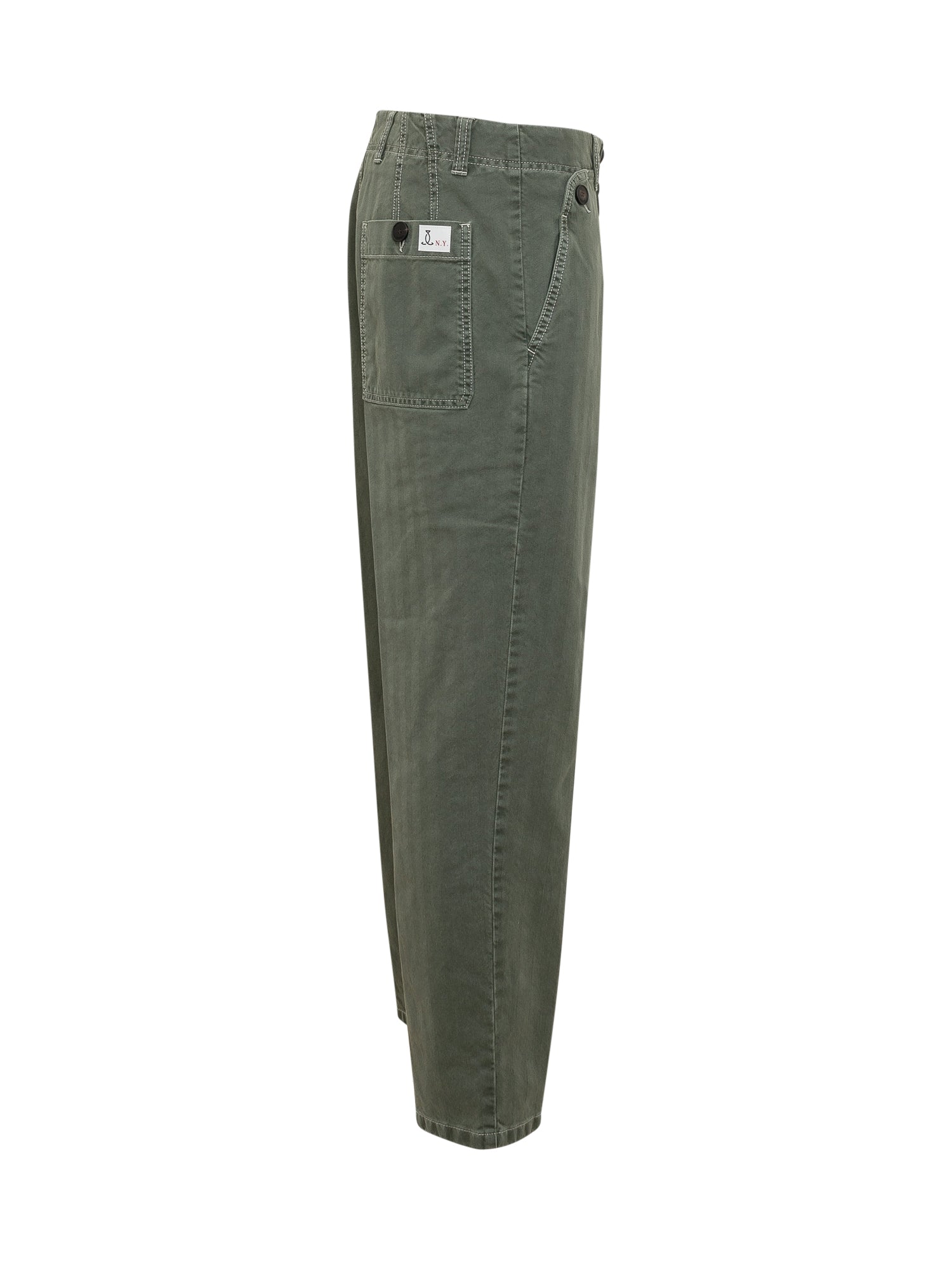Pantaloni lunghi verdi. Chiusura con bottoni. 3 tasche. Passanti per cintura. Logo ricamato sul retro.