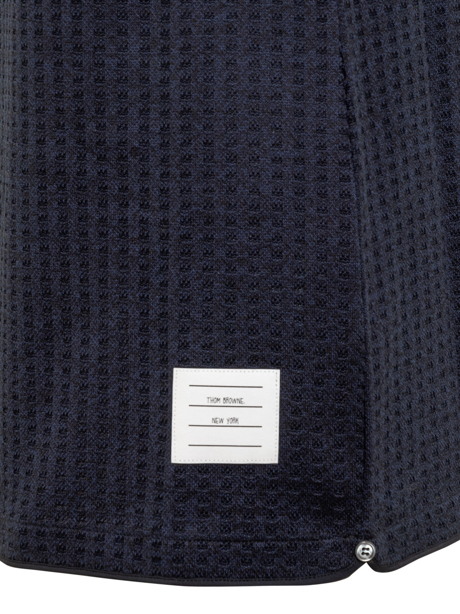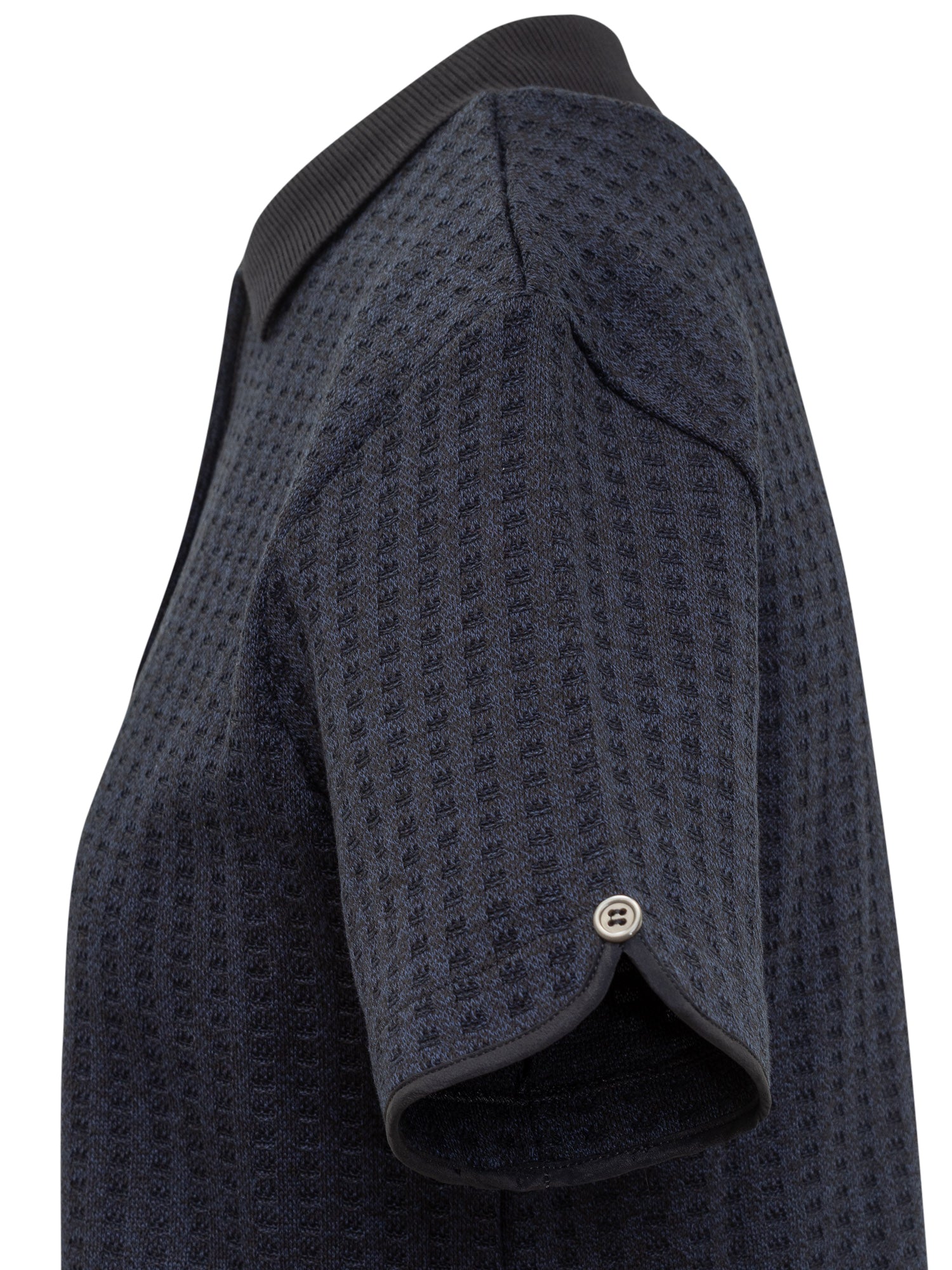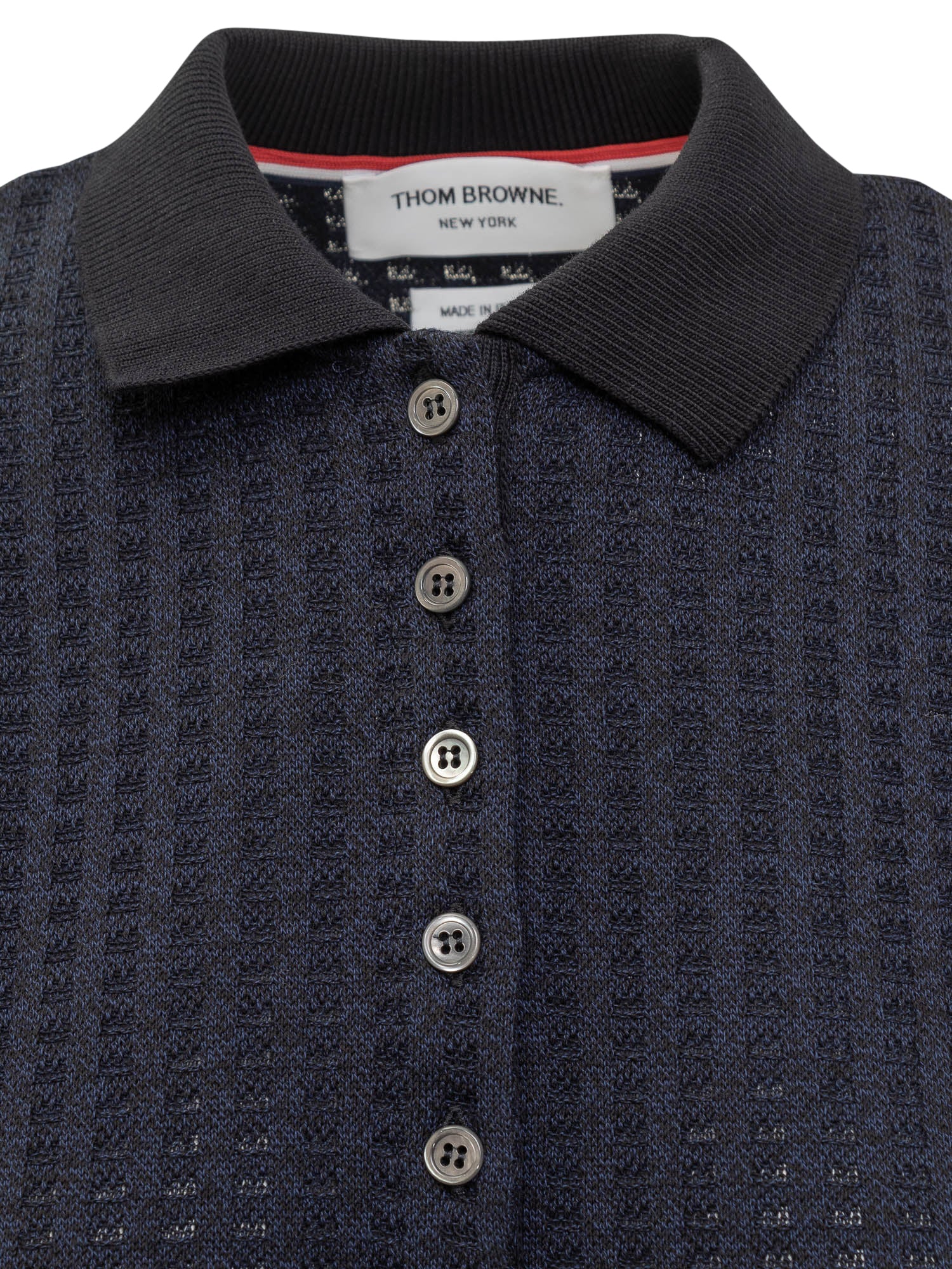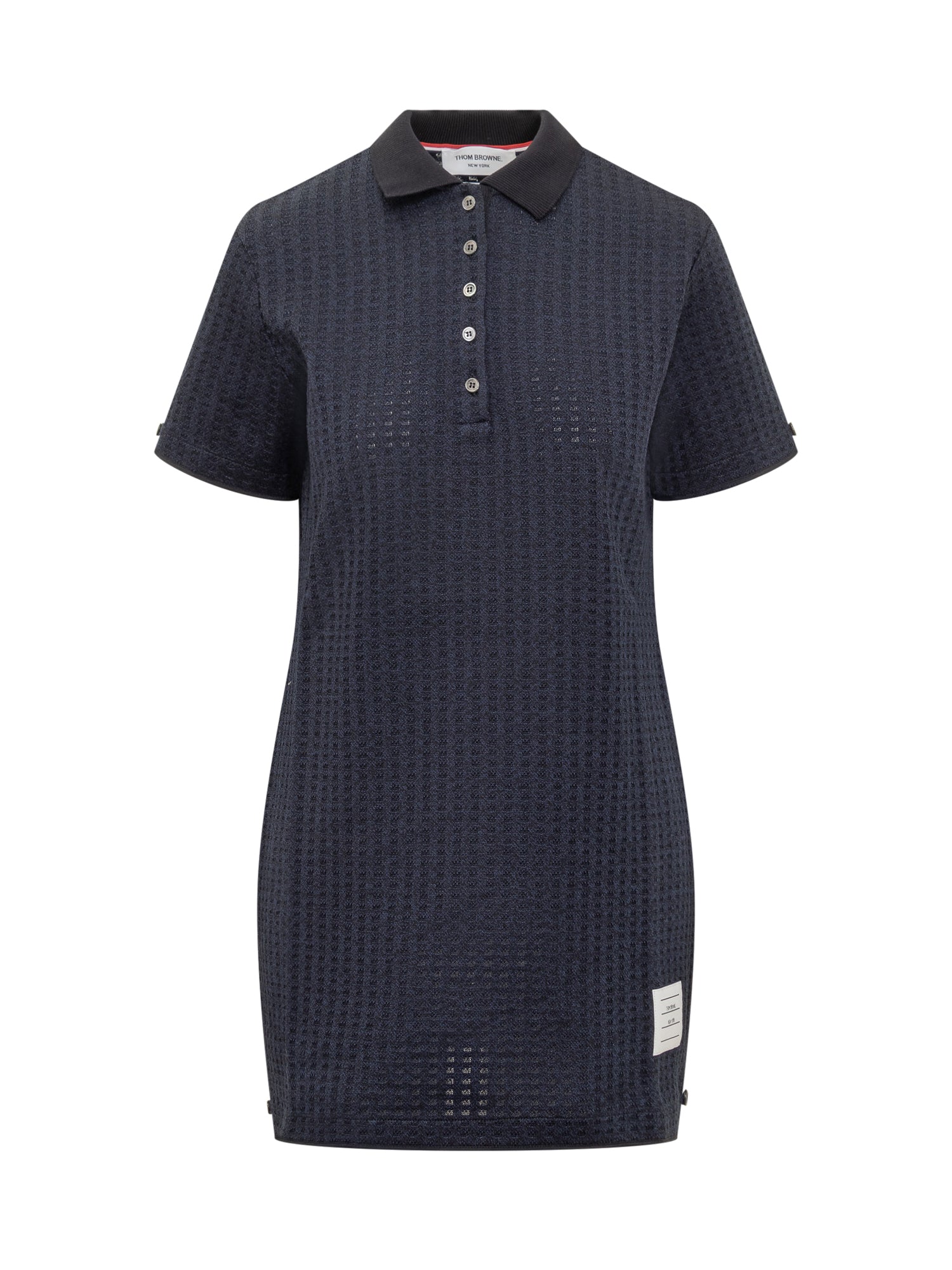 Abito midi in stile polo in maglia di cotone con lavorazione jacquard ad effetto vichy. Colletto classico a coste. Chiusura con bottoni. Bottoni decorativi sulle maniche e sul fondo. Linguetta tricolore in gros grain sul retro. Logo patch sul davanti.
