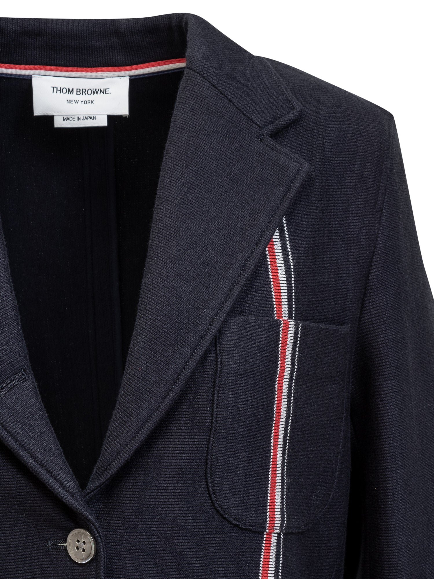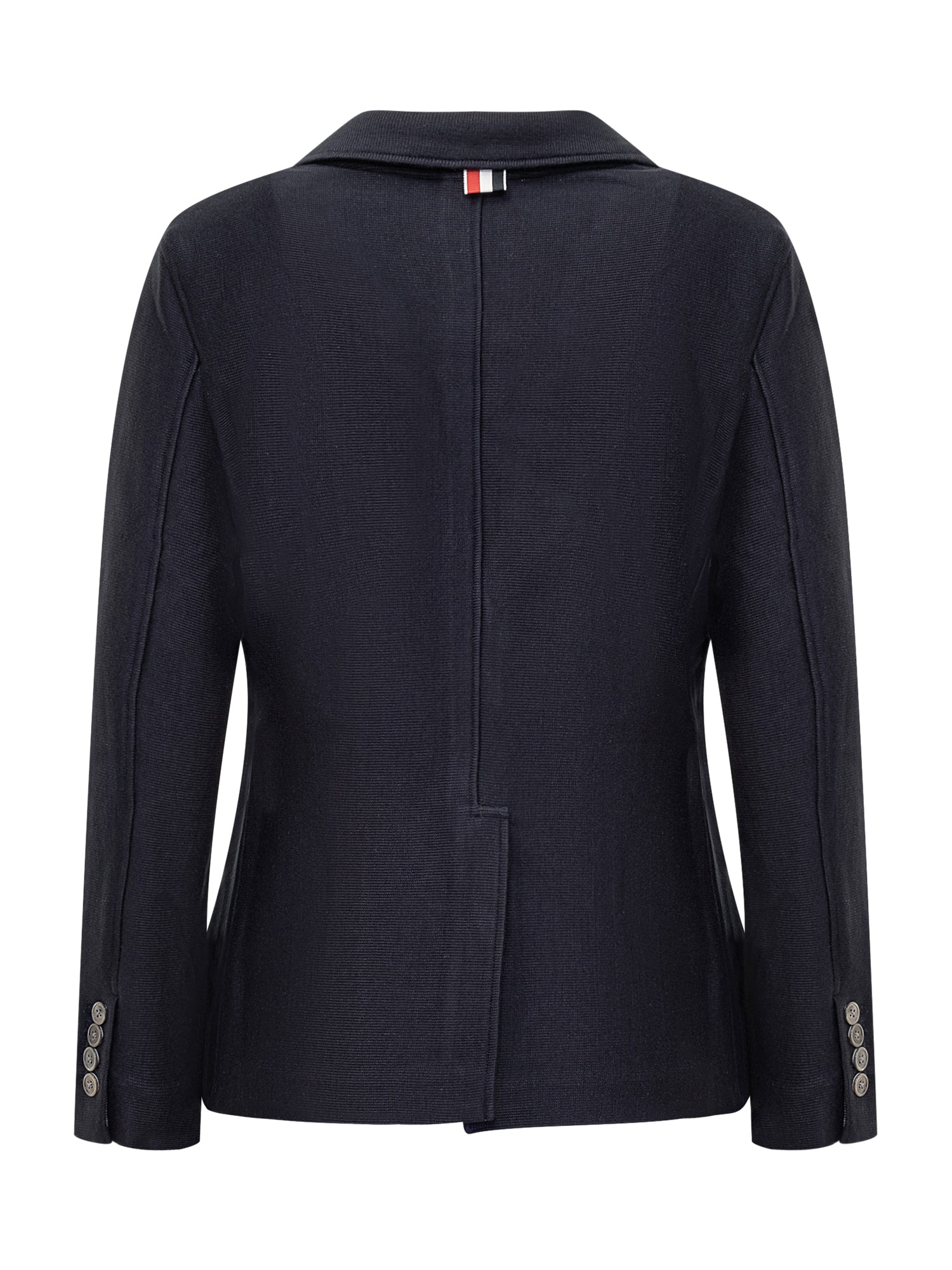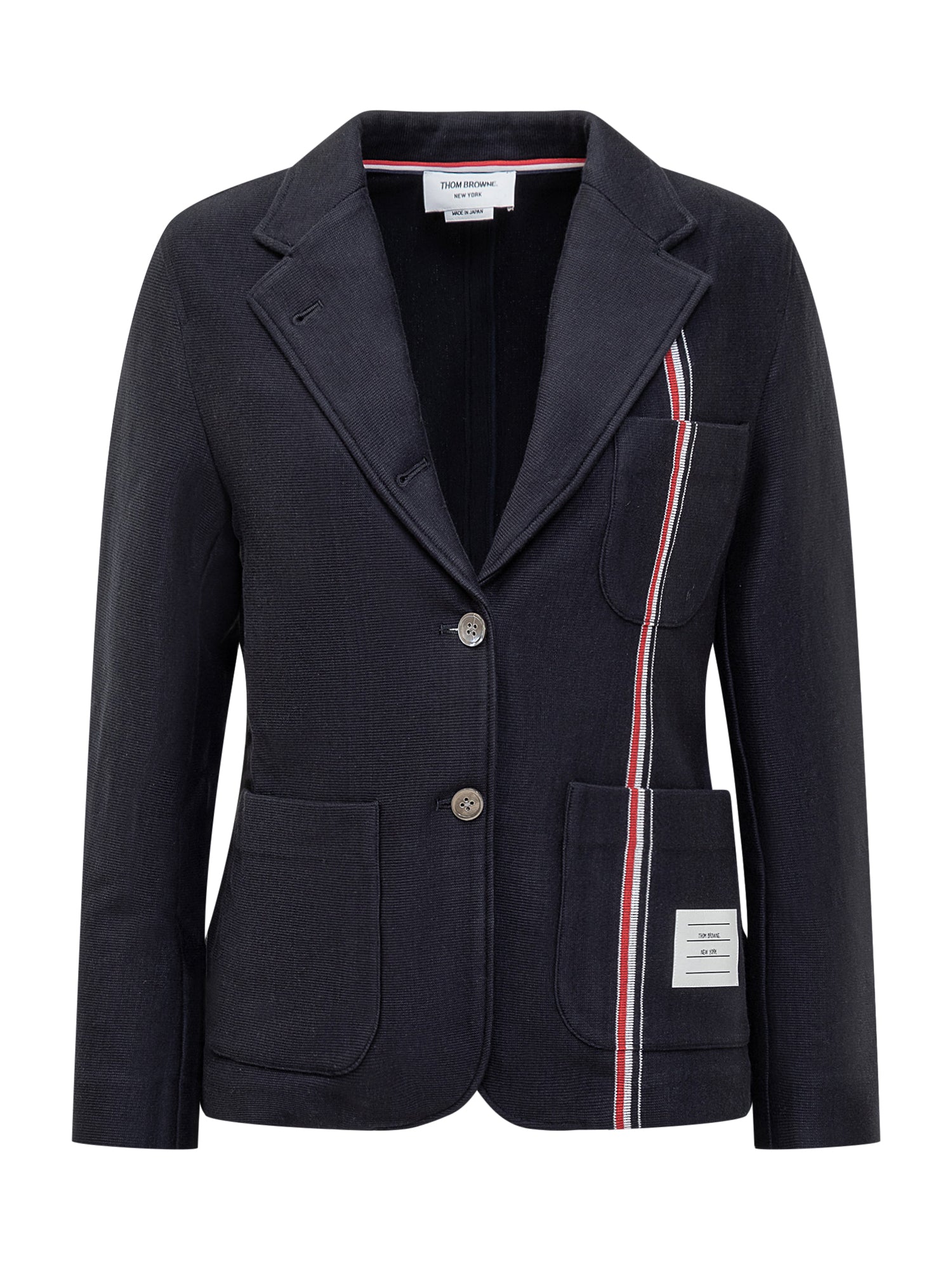 Blazer monopetto a maniche lunghe. Scollo a V con revers. Chiusura con bottoni. Polsi con bottoni. Tre tasche sul davanti. Banda RWB sul davanti. Targhetta con nome sul davanti. Linguetta con passante in gros-grain a righe firmate.