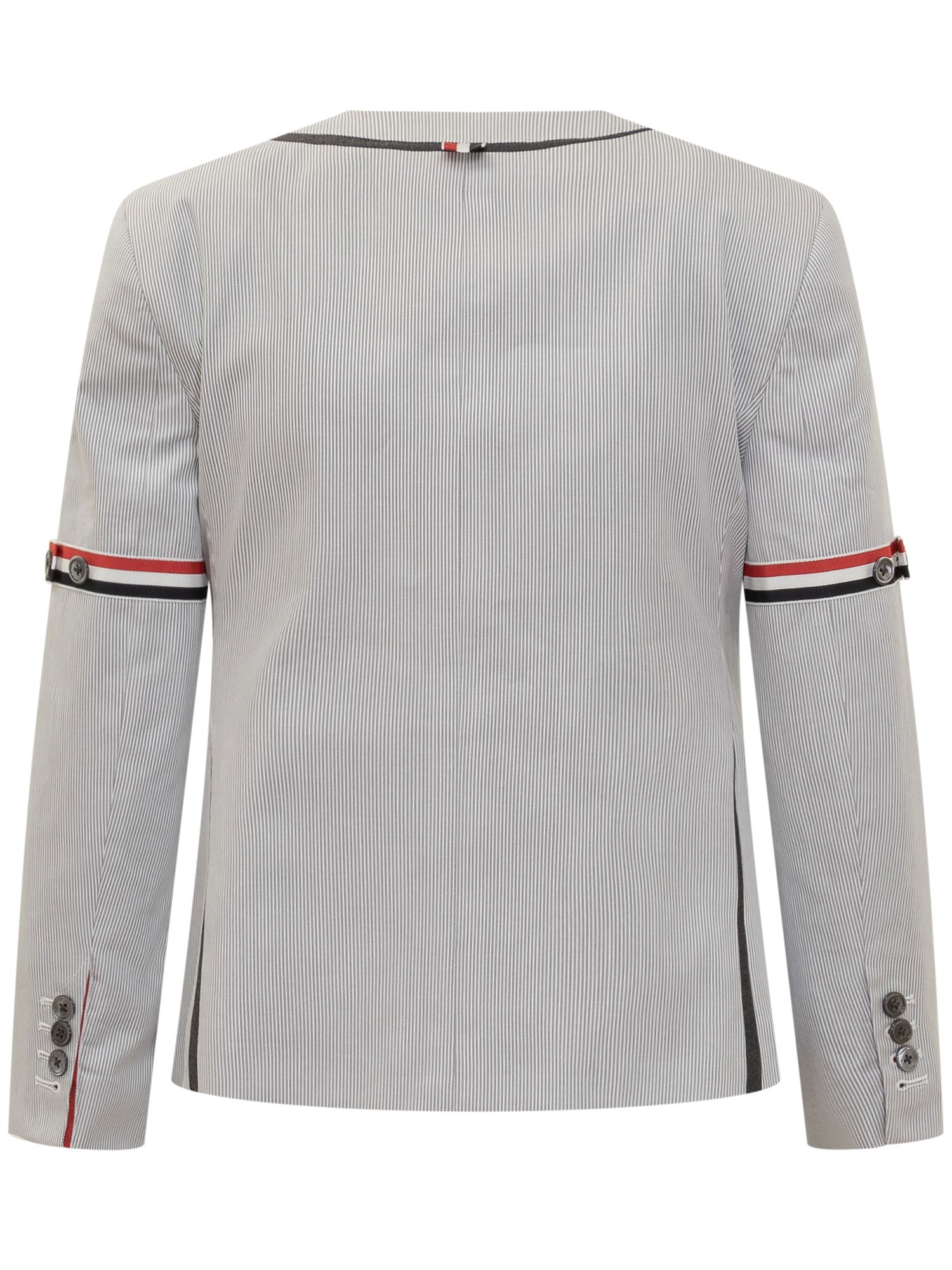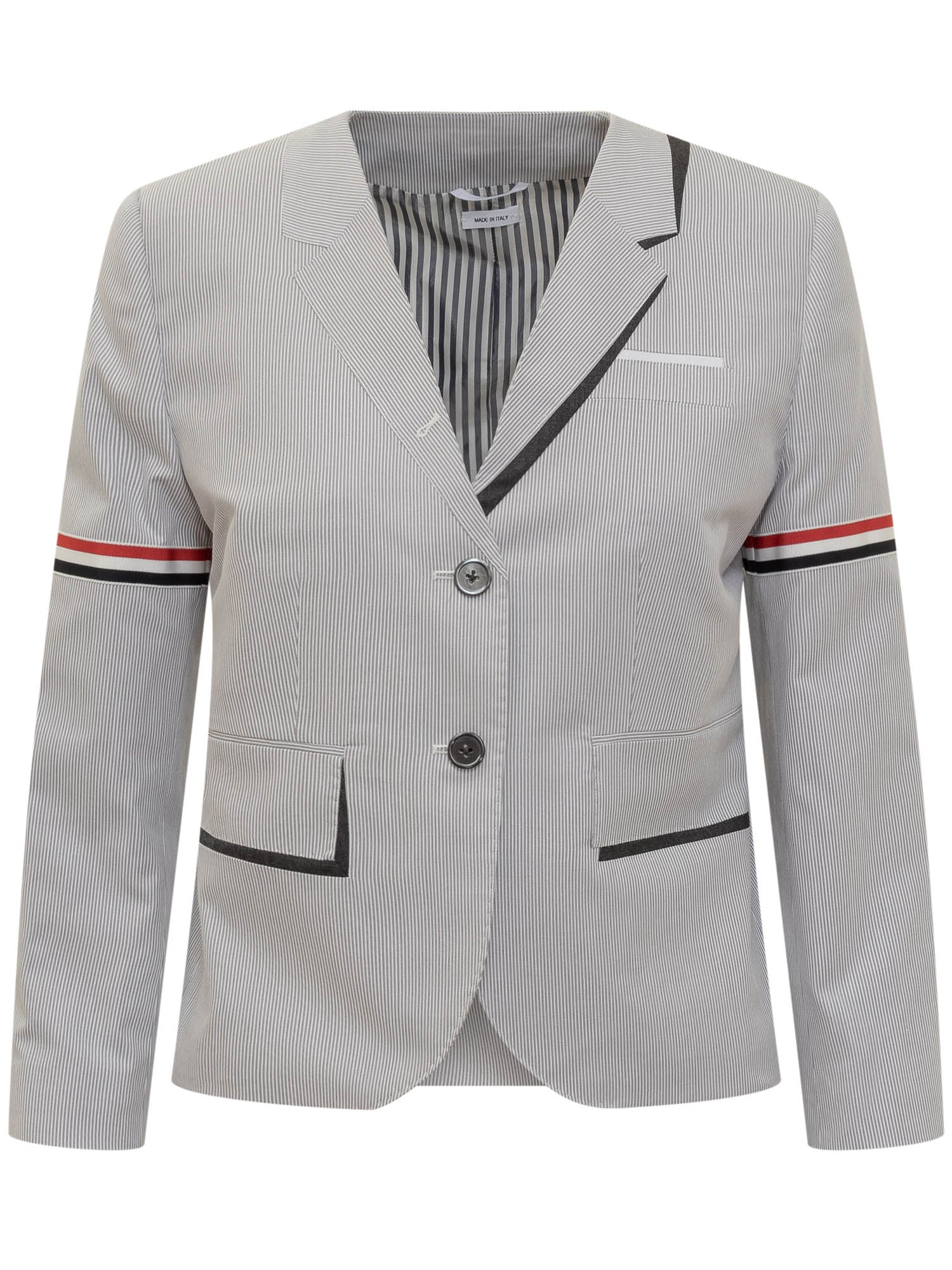 Giacca monopetto. Chiusura con bottoni. Bottoni sui polsi. Due tasche laterali e una sul petto.