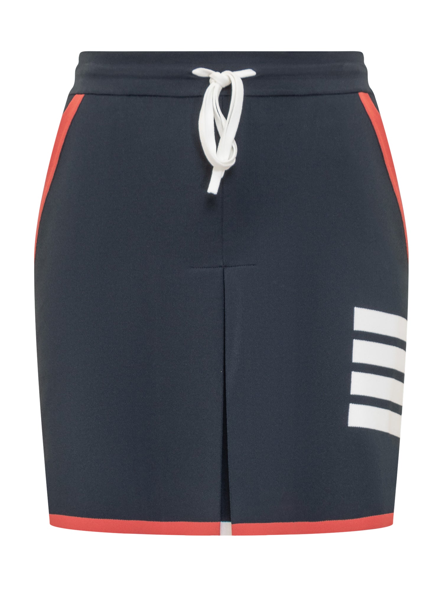 Mini gonna in viscosa. Coulisse in vita. Due tasche laterali. Spacco sul davanti. Linguetta con passante in gros-grain a righe firmate. Logo 4-Bar sulla manica.