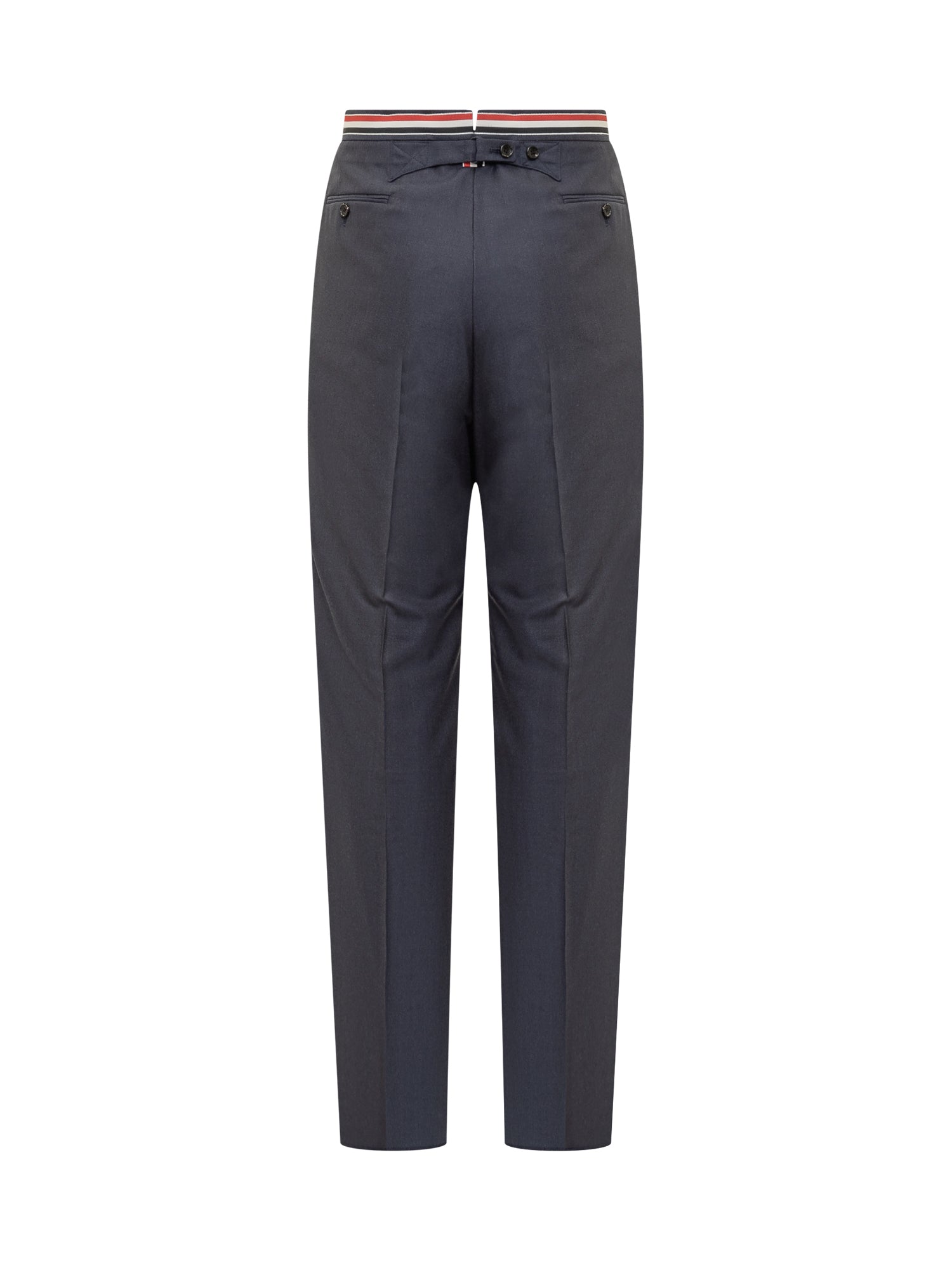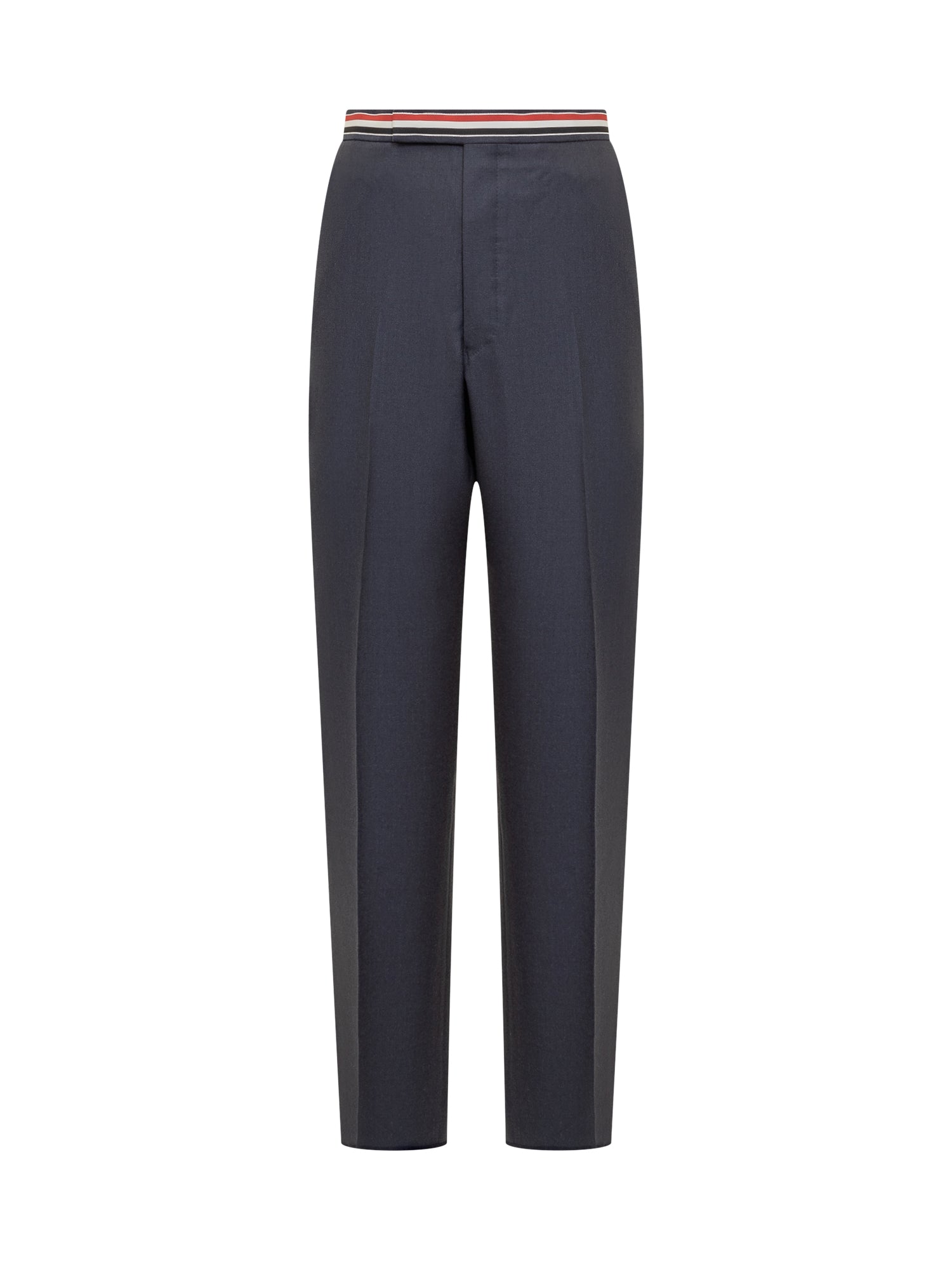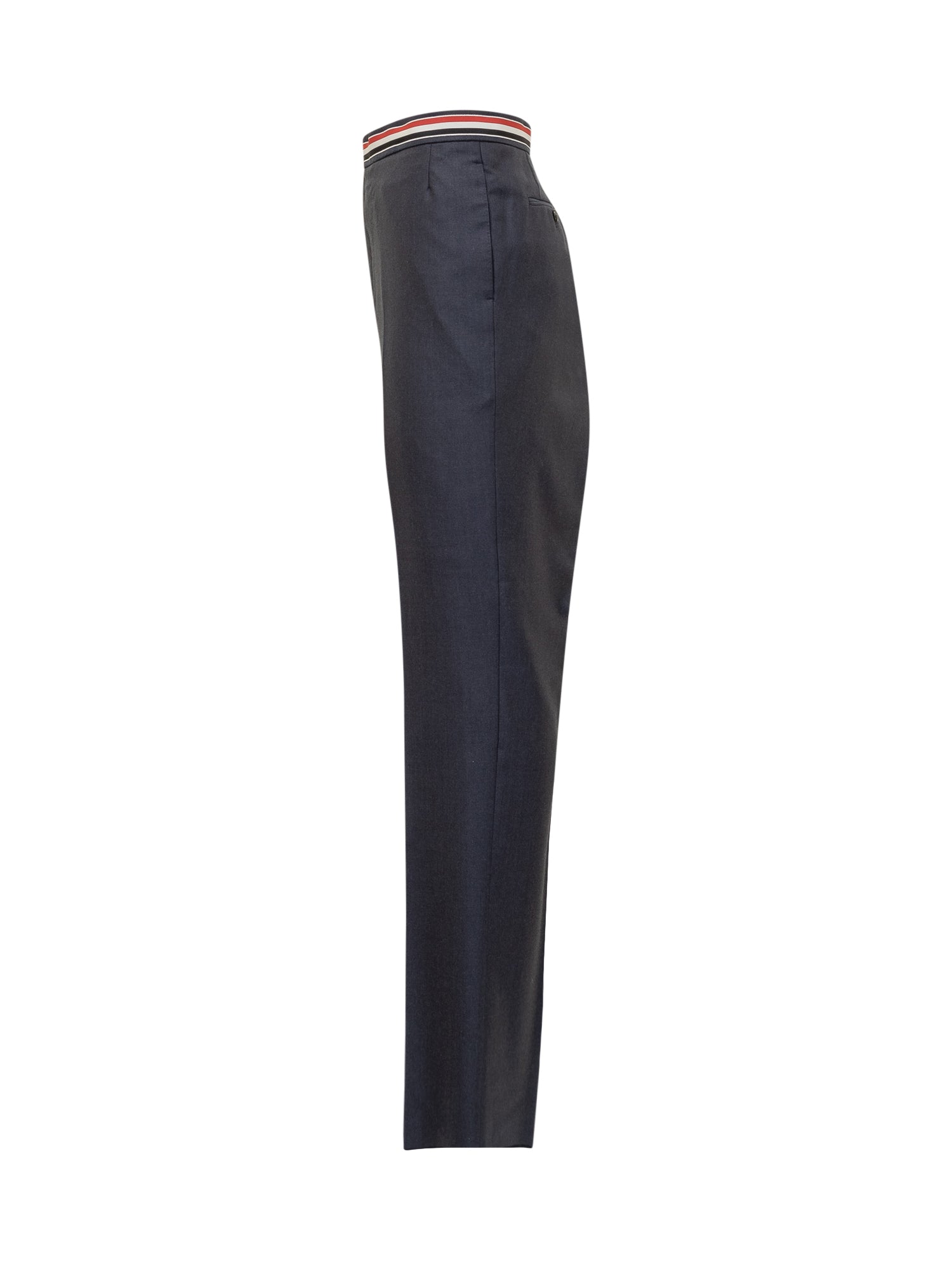 Pantalone lungo dritto. Chiusura con bottoni e gancio. Due tasche laterali. Due tasche a filetto. Banda tricolore in vita.