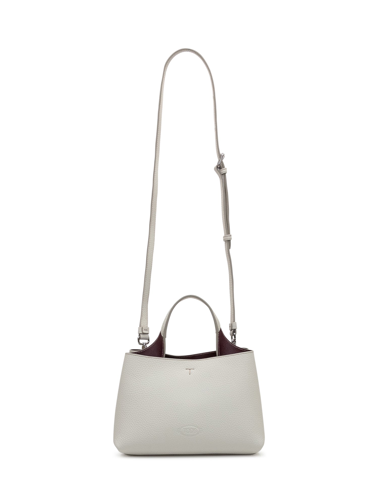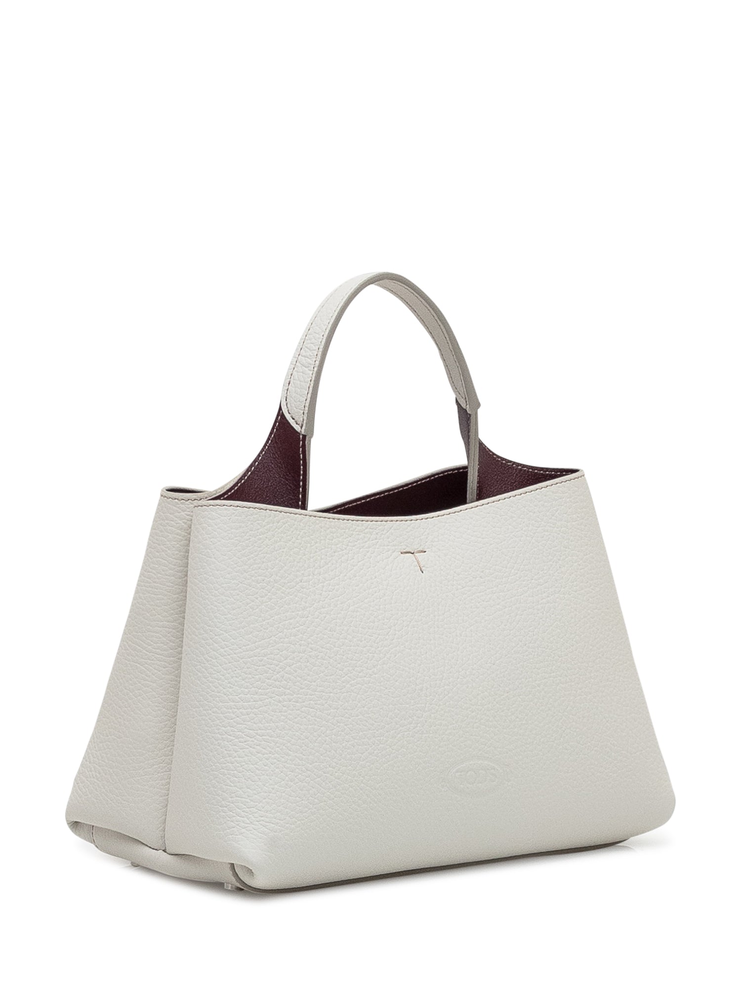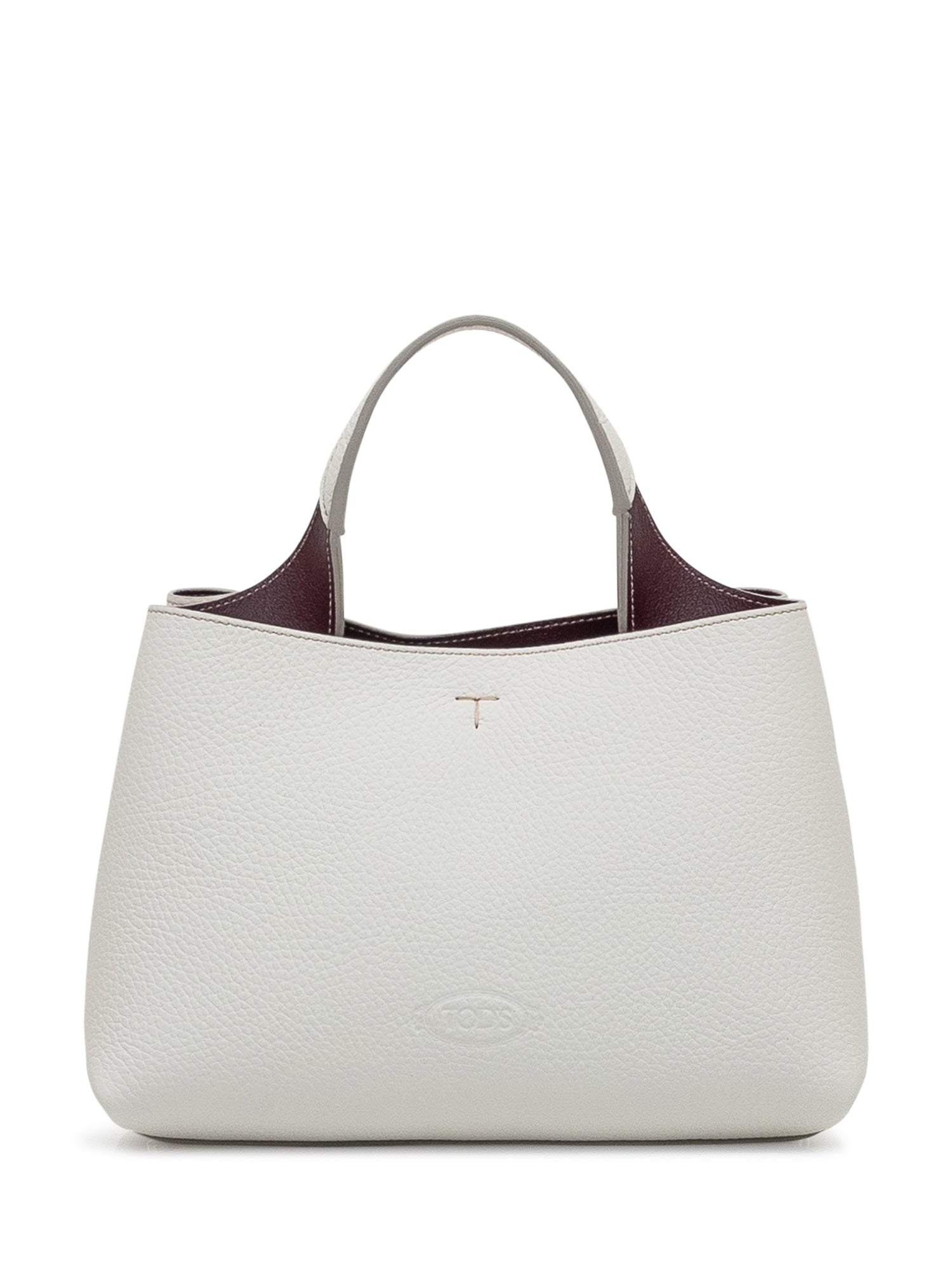 Tote Bag Tod's in pelle martellata bianca. Dotata di doppi manici, interno a contrasto bordeaux e logo impresso.