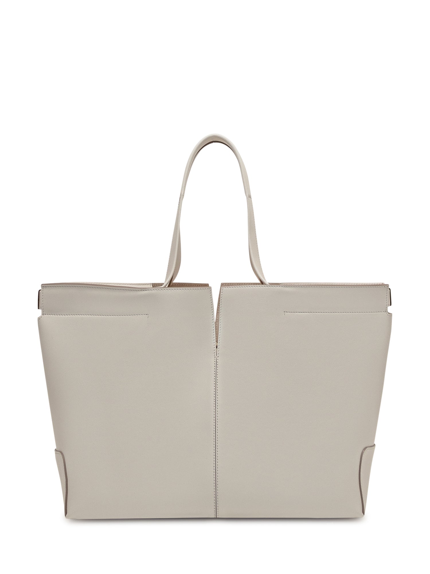 Borsa realizzata in pelle di vitello. Logo impresso sul fronte. Accessori laterali in metallo personalizzato. Chiusura con listino e automatici. Interno scamosciato. Bustina interna removibile. Piedini in metallo personalizzato.