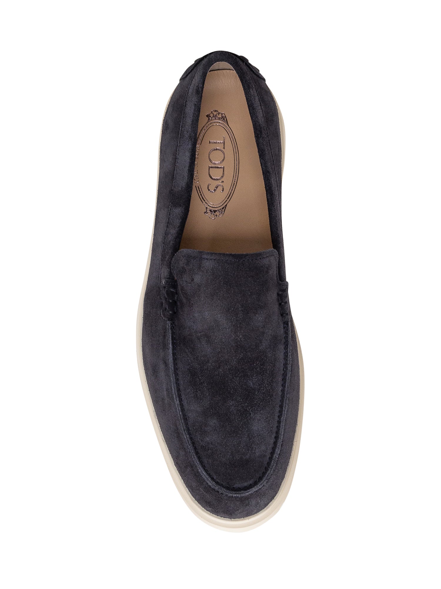 Mocassino blu. Suola a contrasto. Logo sul tallone.