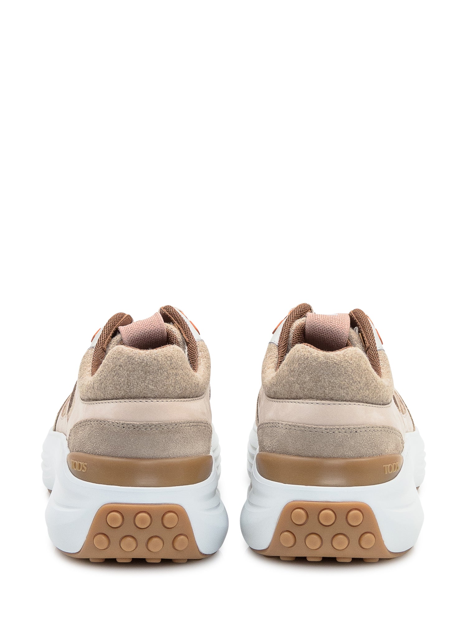 Sneakers Tod's in pelle e suede beige con suola platform bianca e dettagli tono su tono.