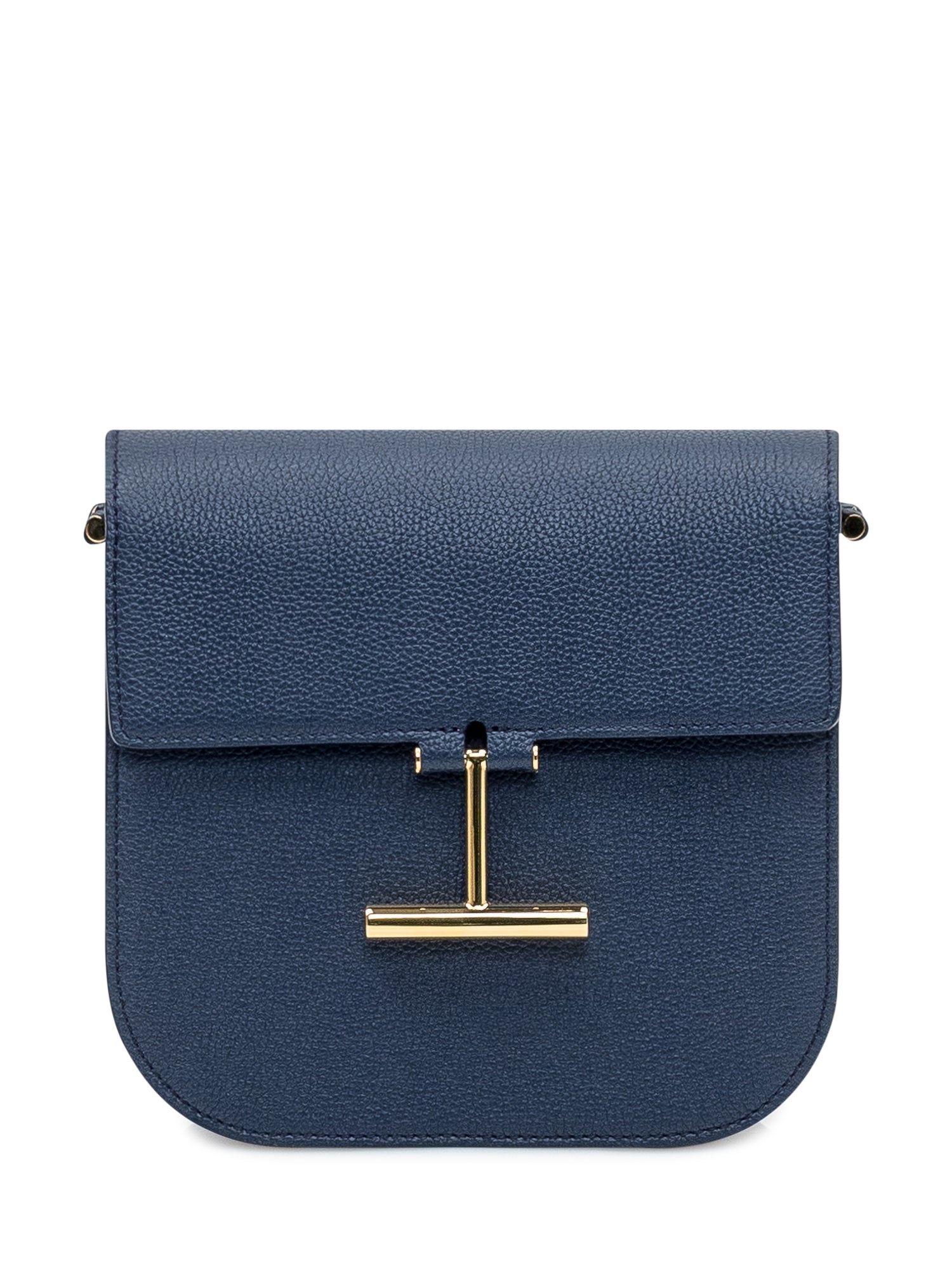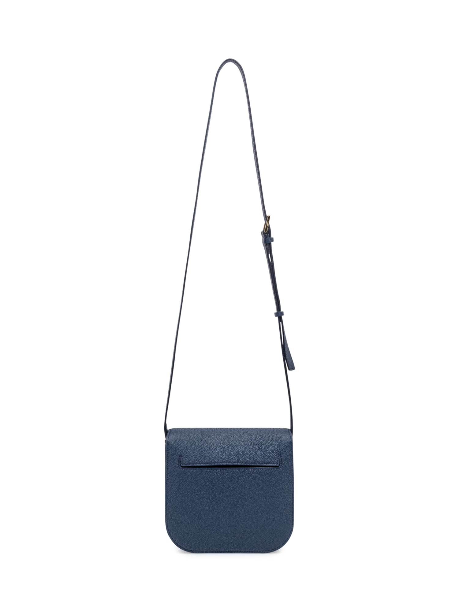 Borsa blu in pelle con trama martellata. Dettaglio Hanging T. Componenti metalliche color oro con logo inciso. Stampa interna con logobattente nella parte superiore con chiusura magnetica. Tracolla regolabile. Scomparto unico. Tasca interna con zip.