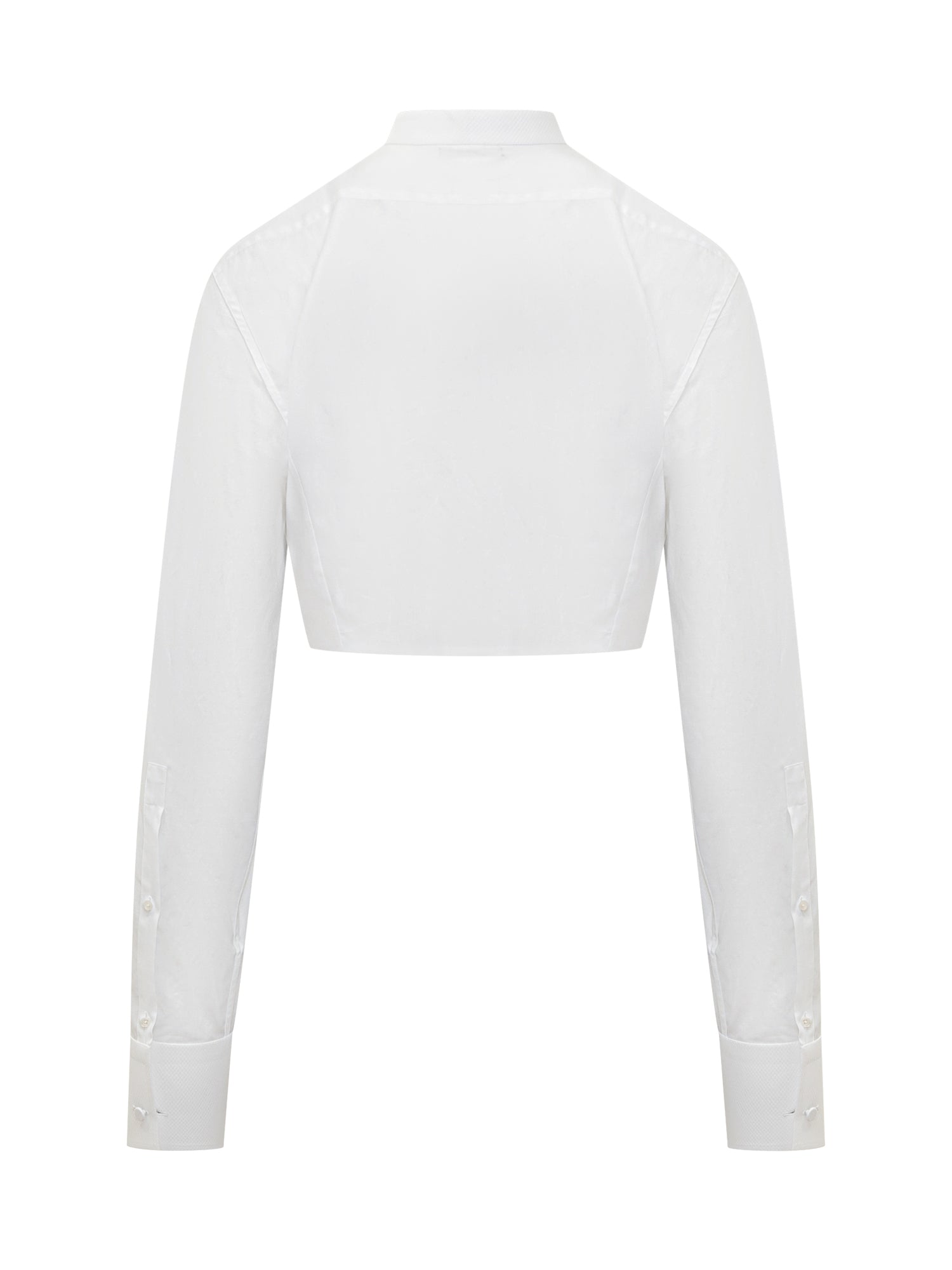 Camicia cropped Tom Ford in cotone bianco con colletto alla coreana e chiusura nascosta.