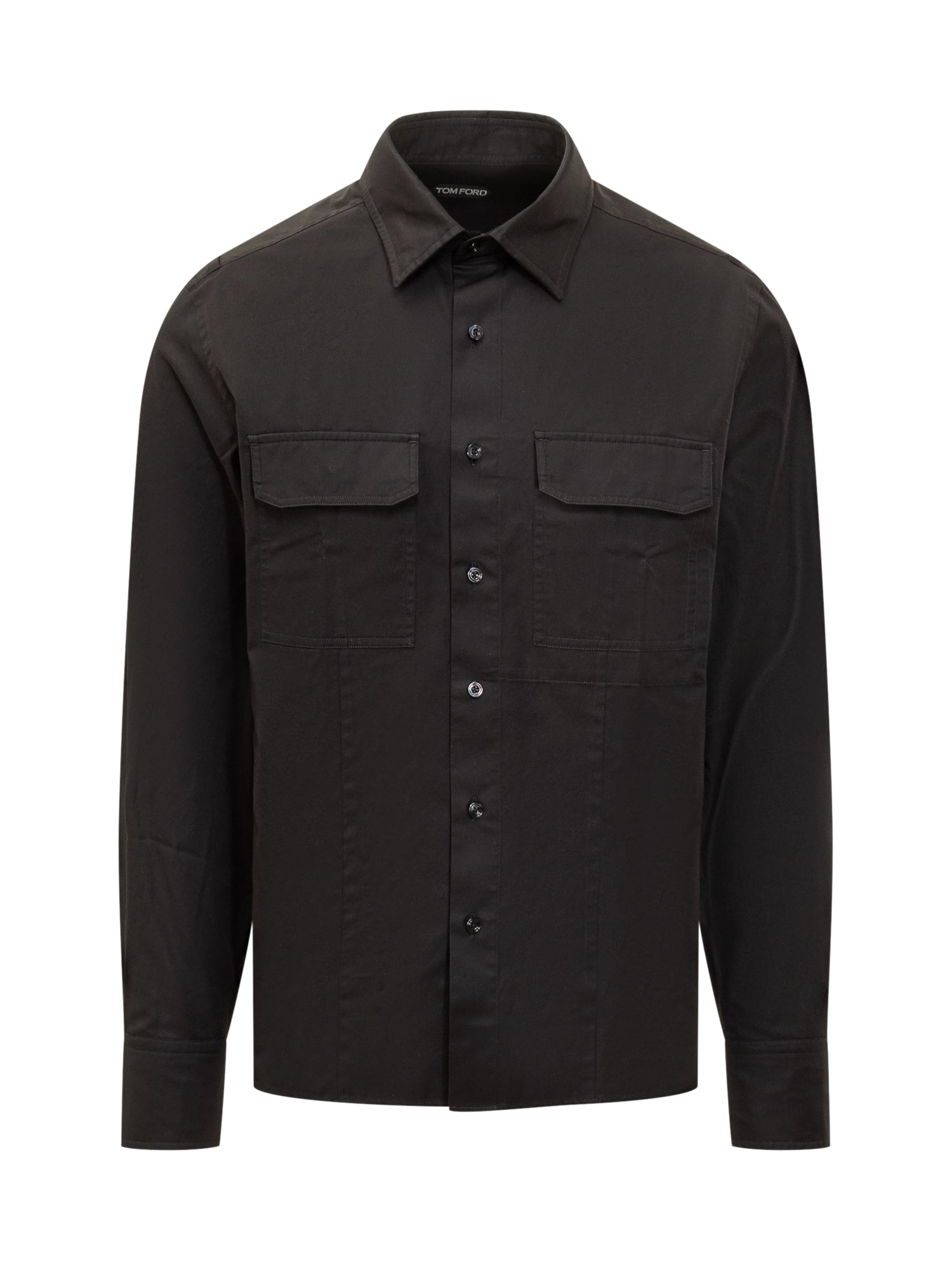Camicia nera Tom Ford in cotone, con tasche frontali e chiusura a bottoni.