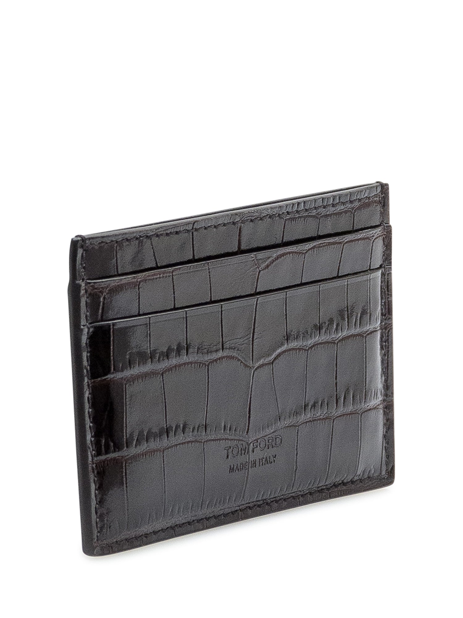 Porta carte nero in pelle stampa coccodrillo Tom Ford. Design essenziale e lussuoso.