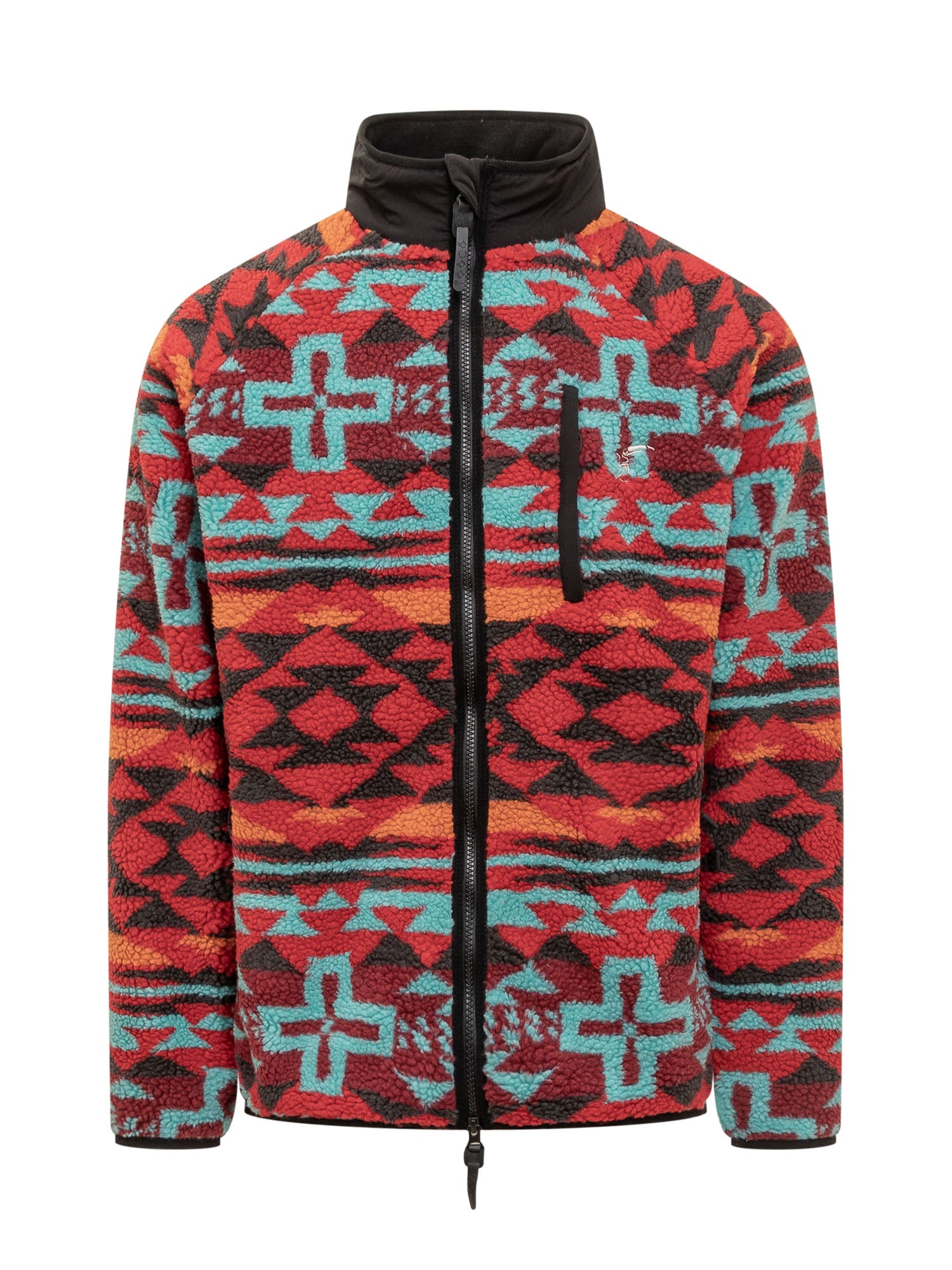 Felpa a maniche lunghe. Collo alto. Chiusura con zip. Polsini elasticizzati. Due tasche laterali. Logo ricamato sul davanti. Motivo geometrico all-over.