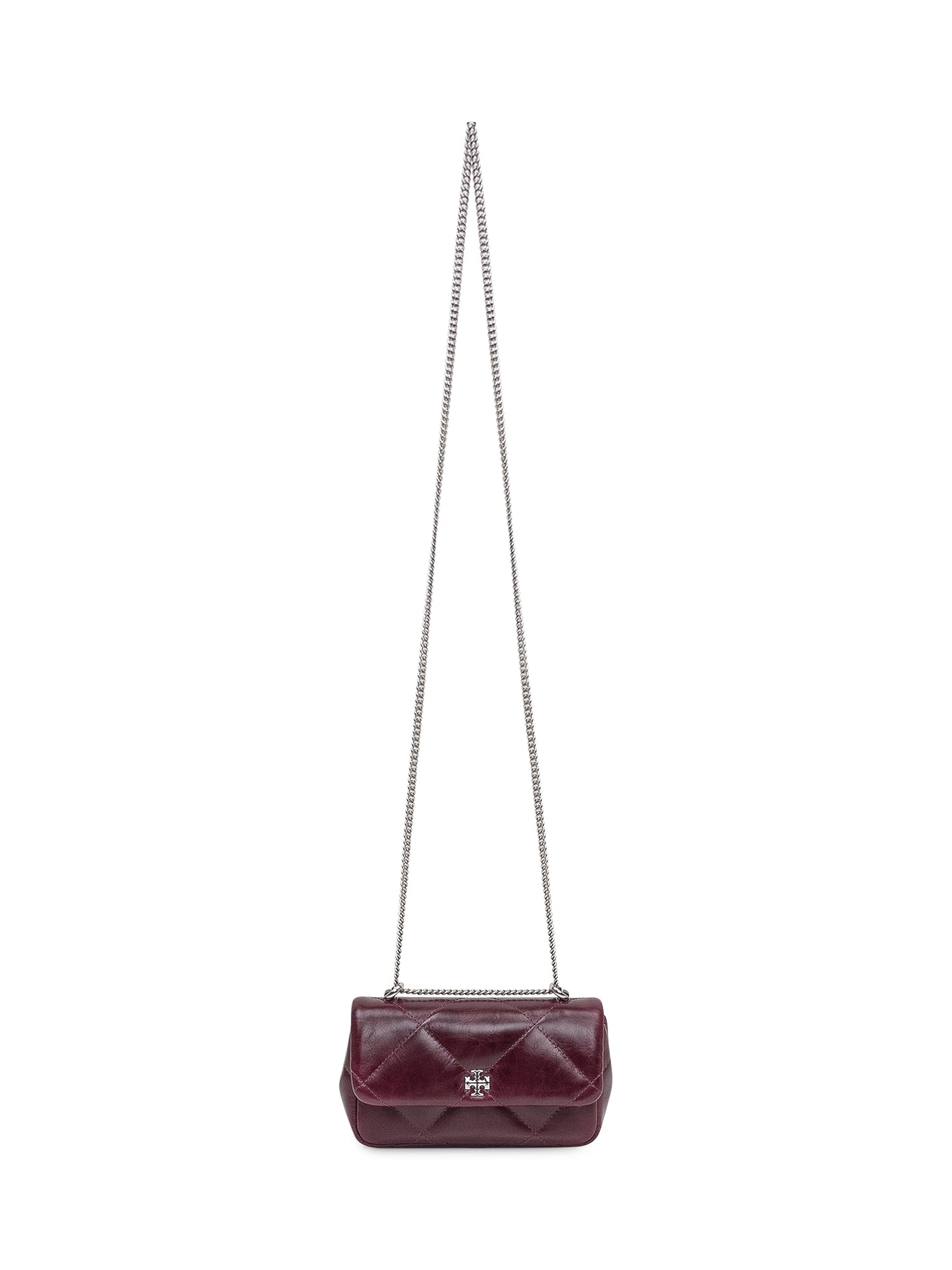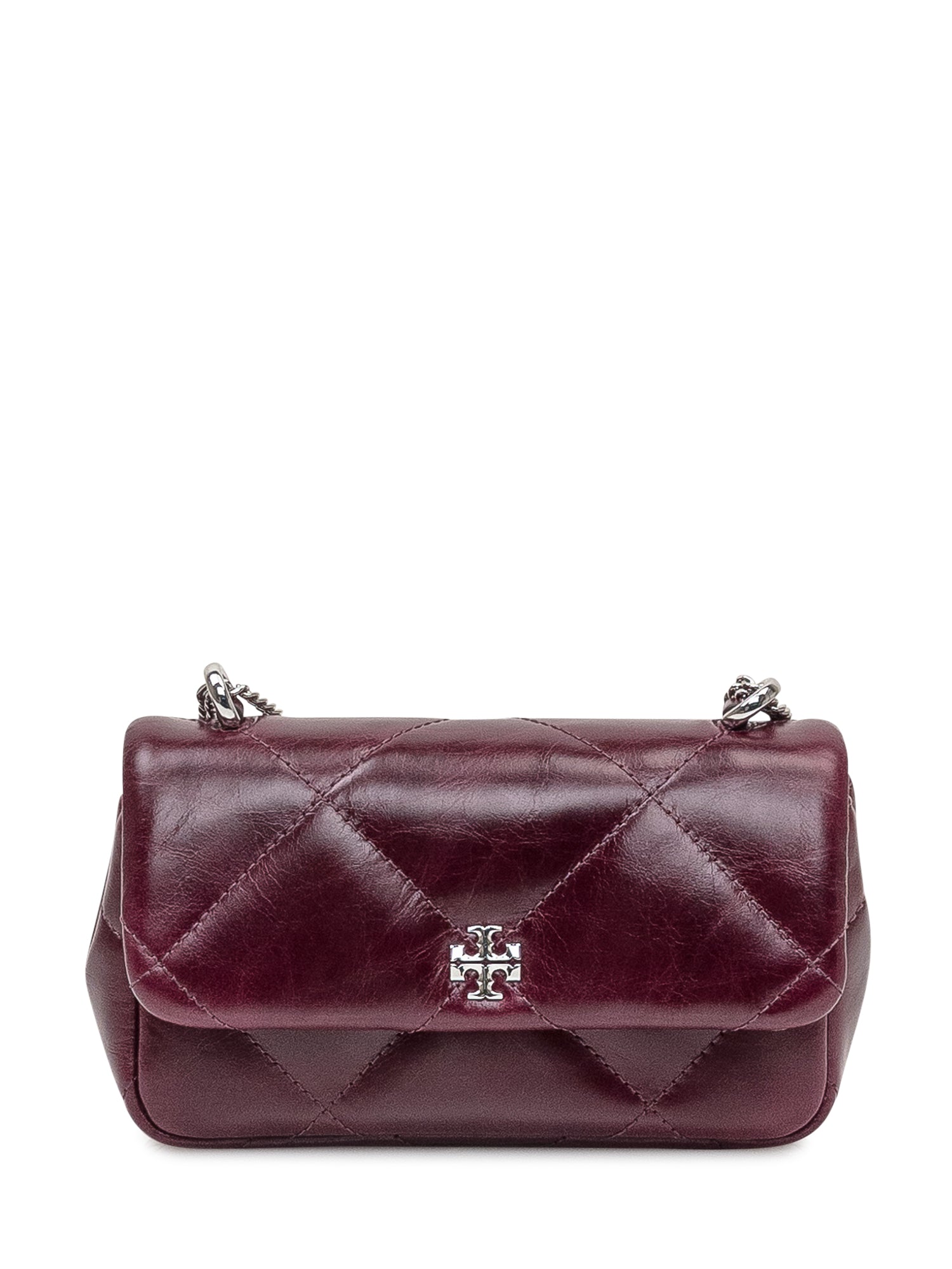 Raffinata borsa Tory Burch in pelle bordeaux con lavorazione trapuntata e logo metallico frontale.