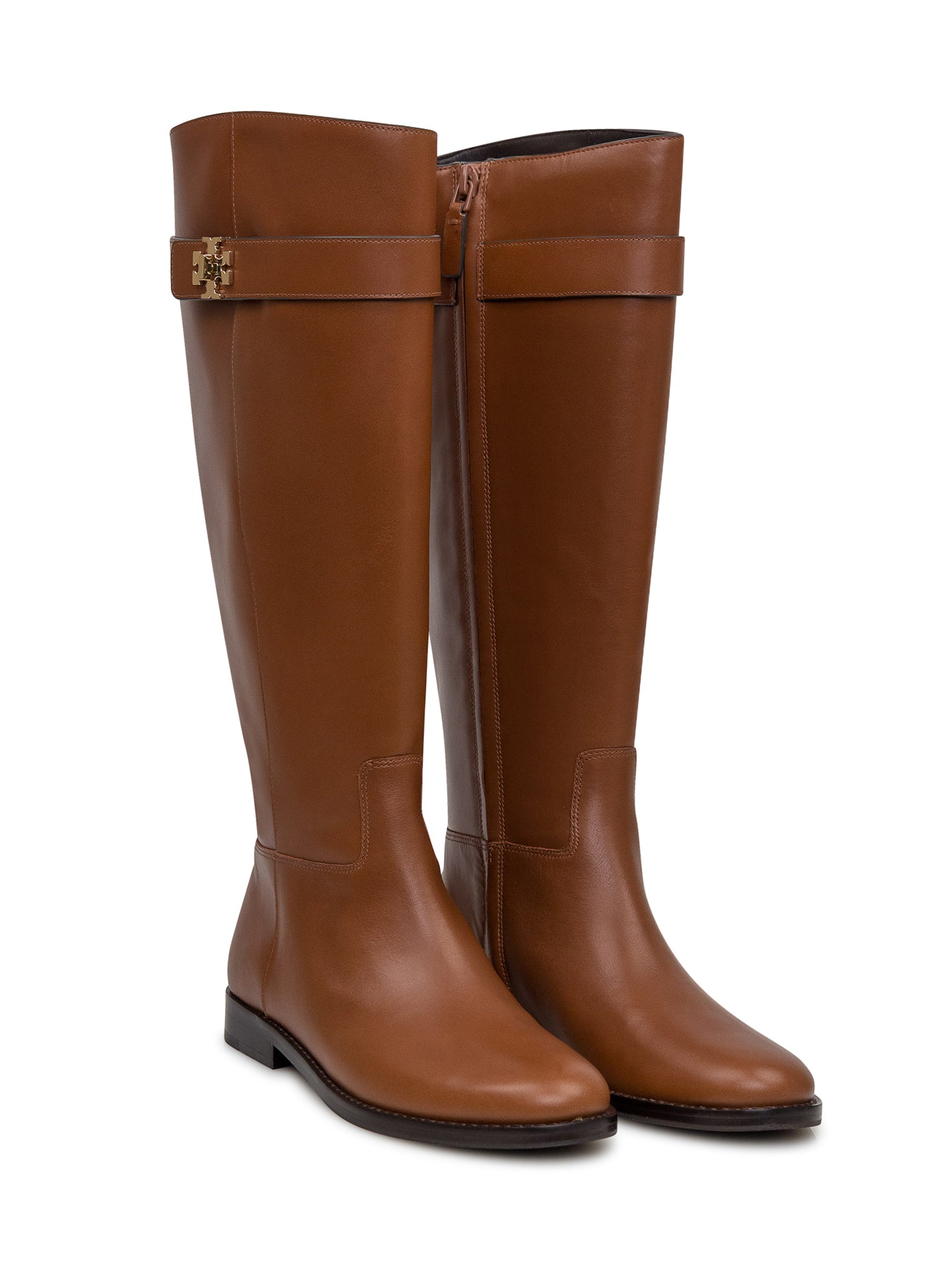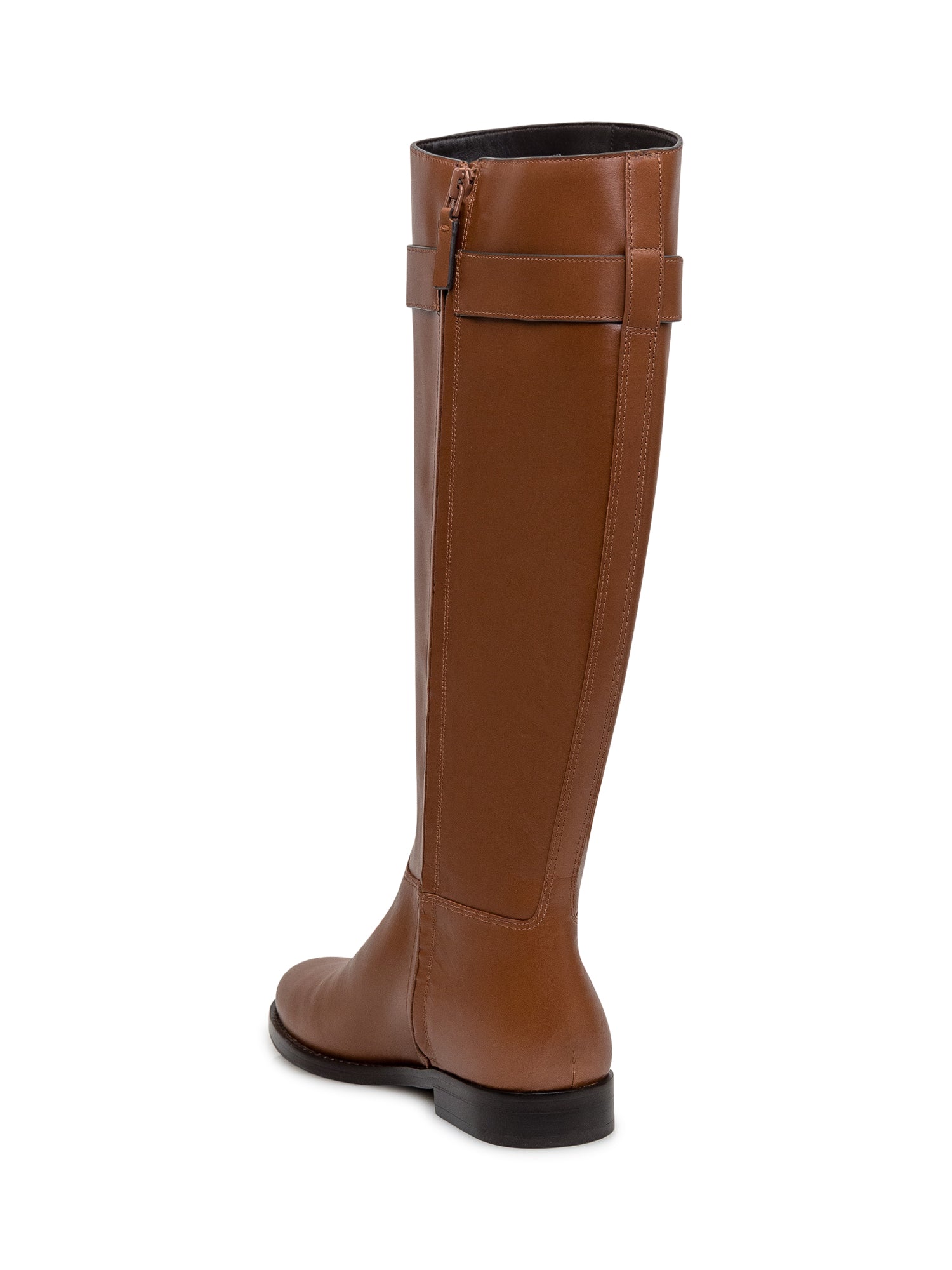 Stivale alto nero in pelle. Punta arrotondata. Chiusura con zip all'interno. Logo T Lock sulla fibbia.