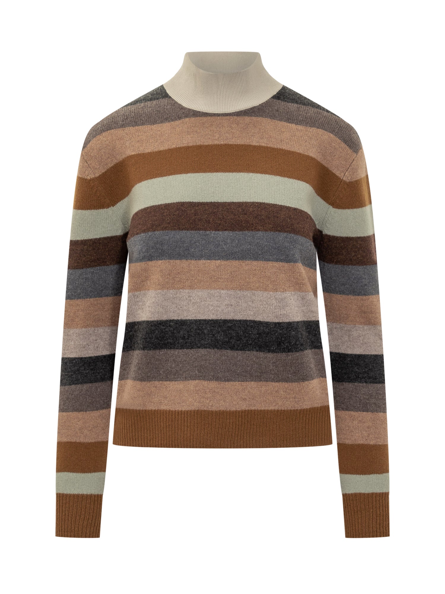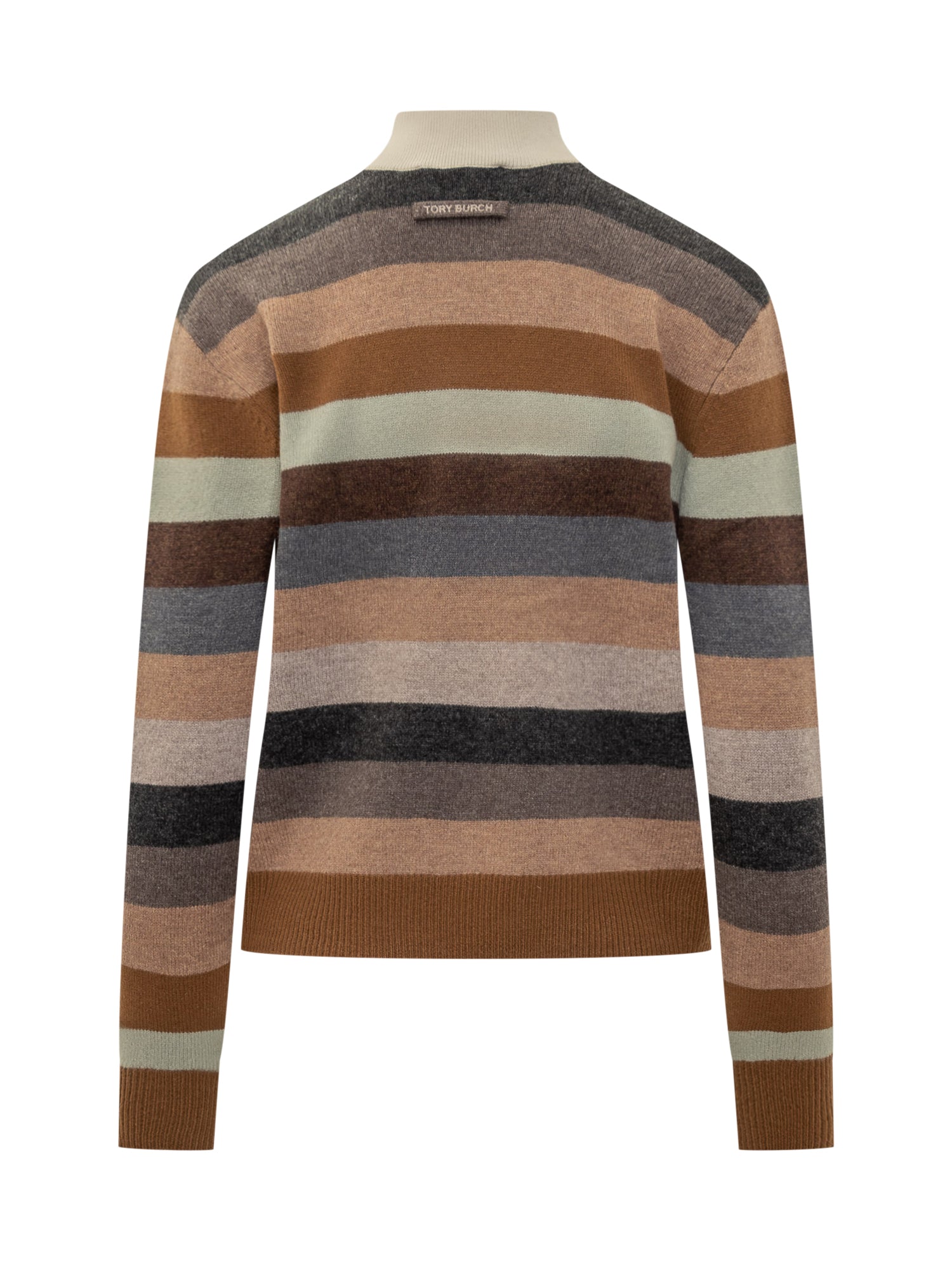Maglione Tory Burch a righe multicolor con collo alto a contrasto.