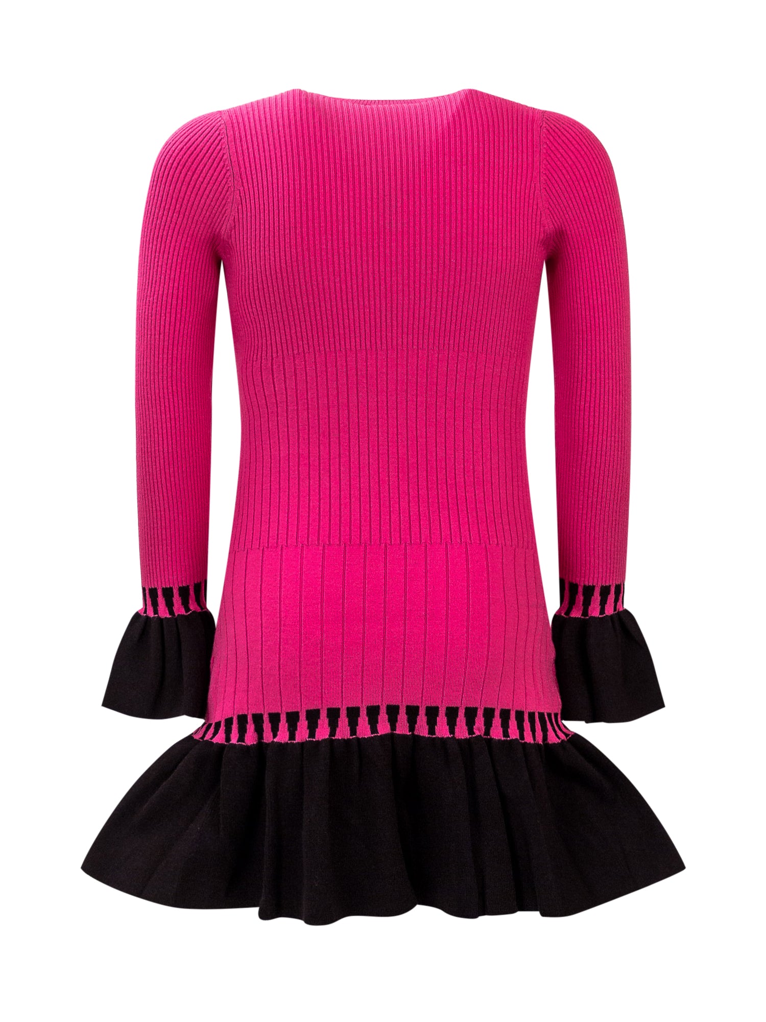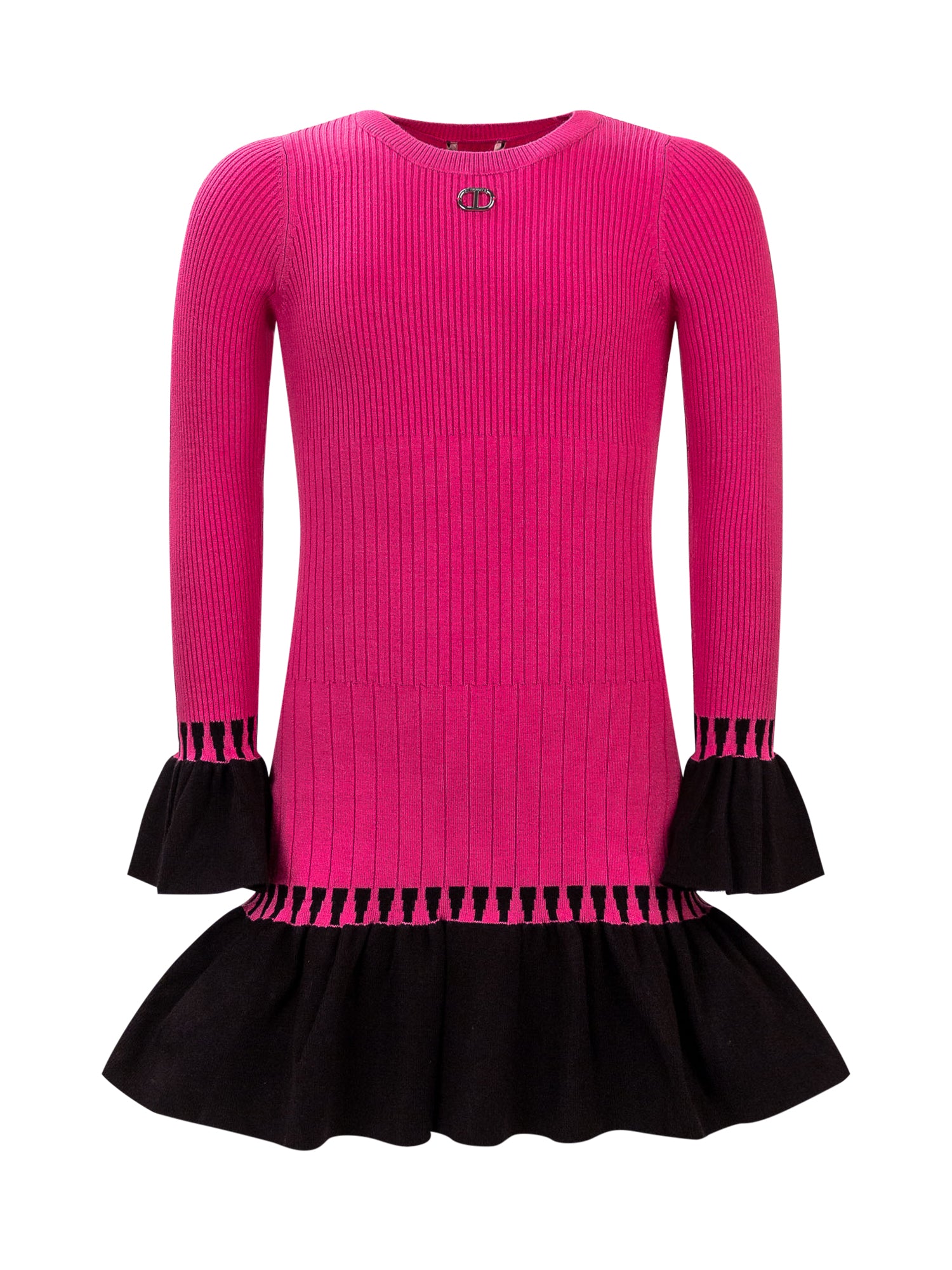 Abito lungo a costine a maniche lunghe. Girocollo. Collo a costine. Orlo e polsi rifiniti con dettaglio geometrico e balze flessage. Logo Oval T sul davanti.