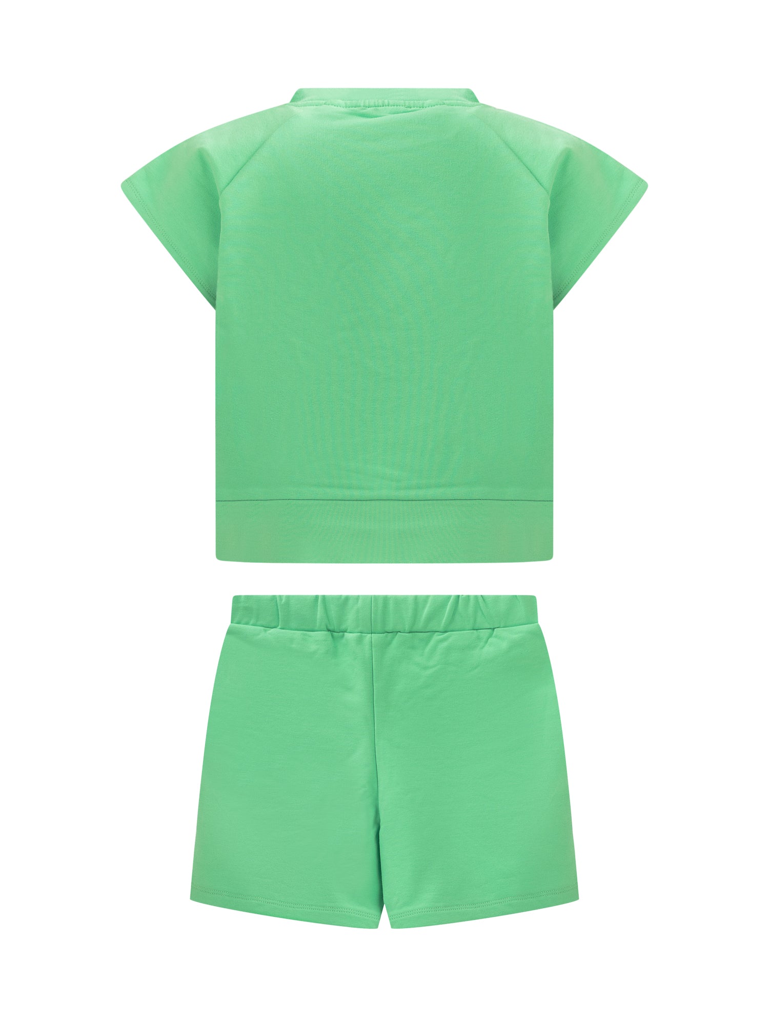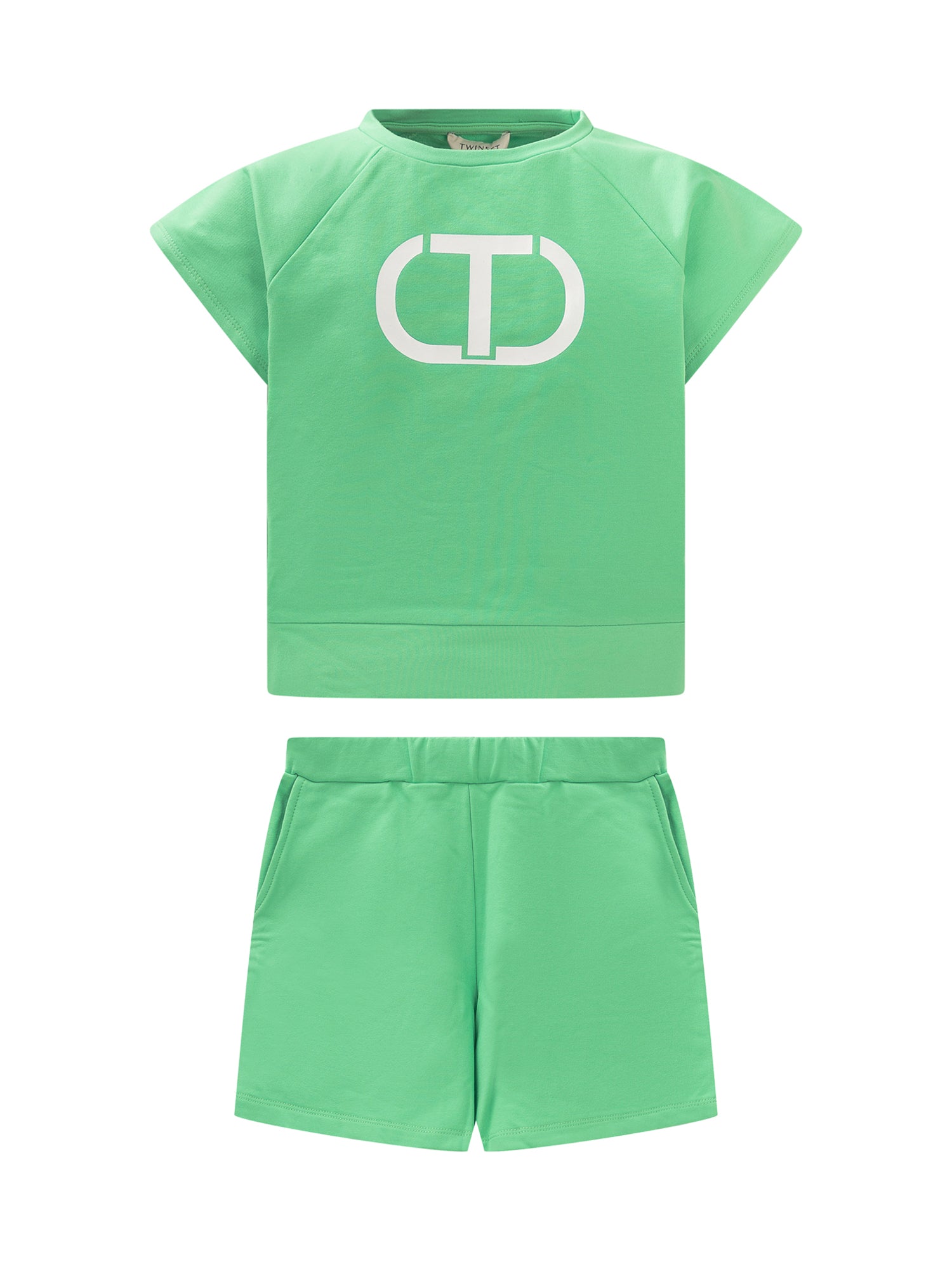 T-shirt in felpa. Girocollo. Logo sul davanti. Shorts con elastico in vita.