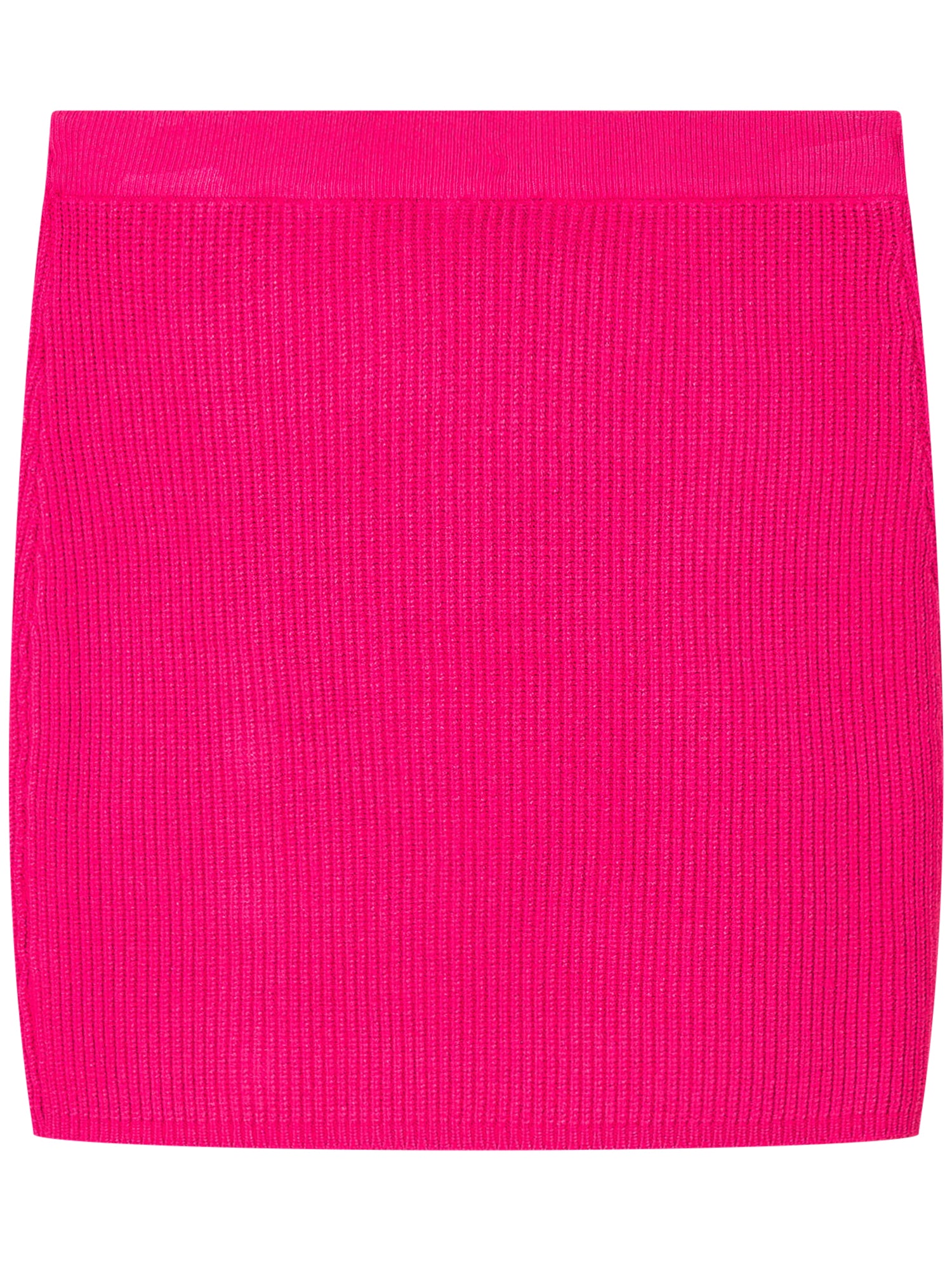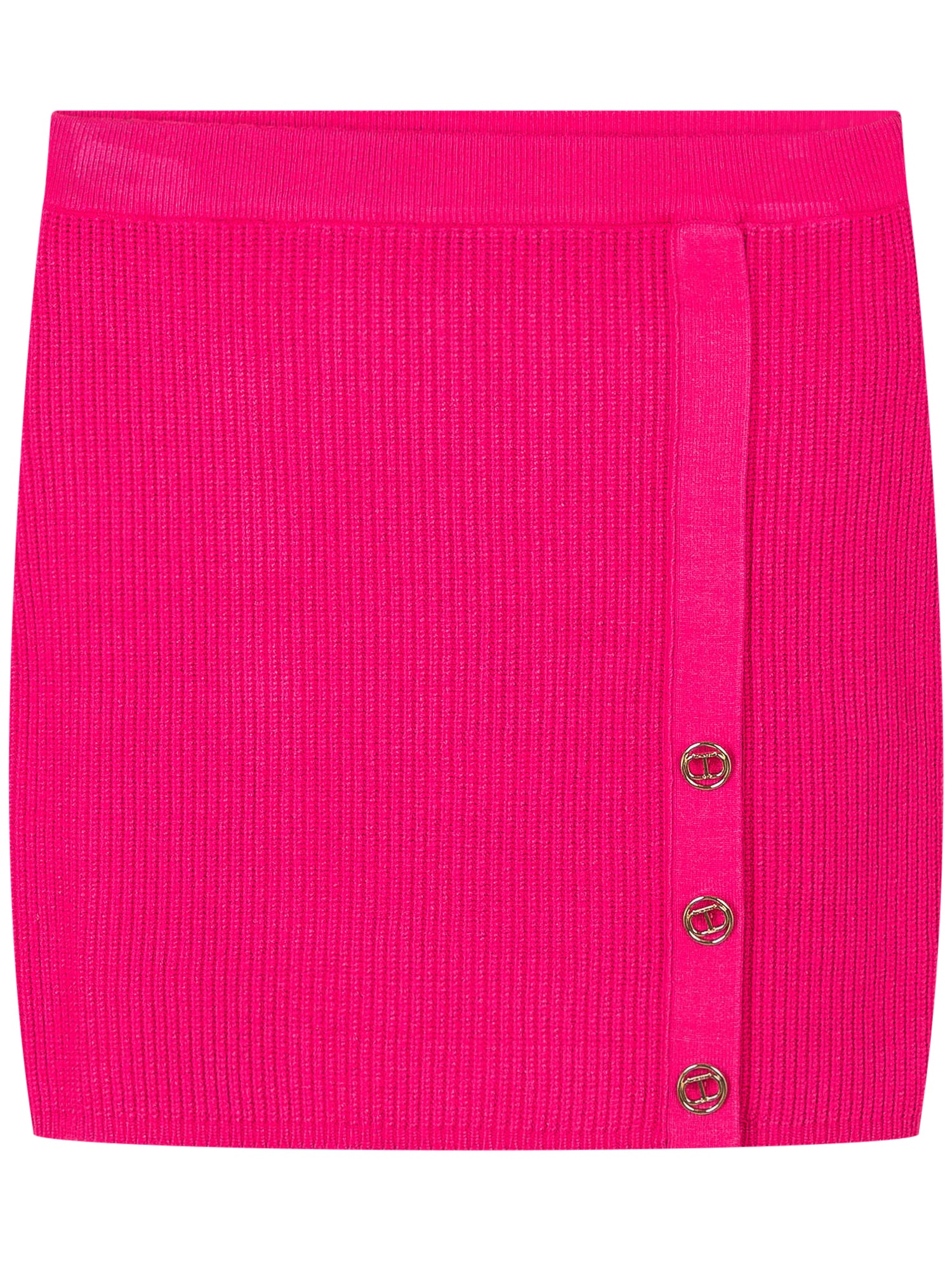 Gonna Twinset Kids in maglia a costine fucsia, impreziosita da bottoni dorati logati sul lato.