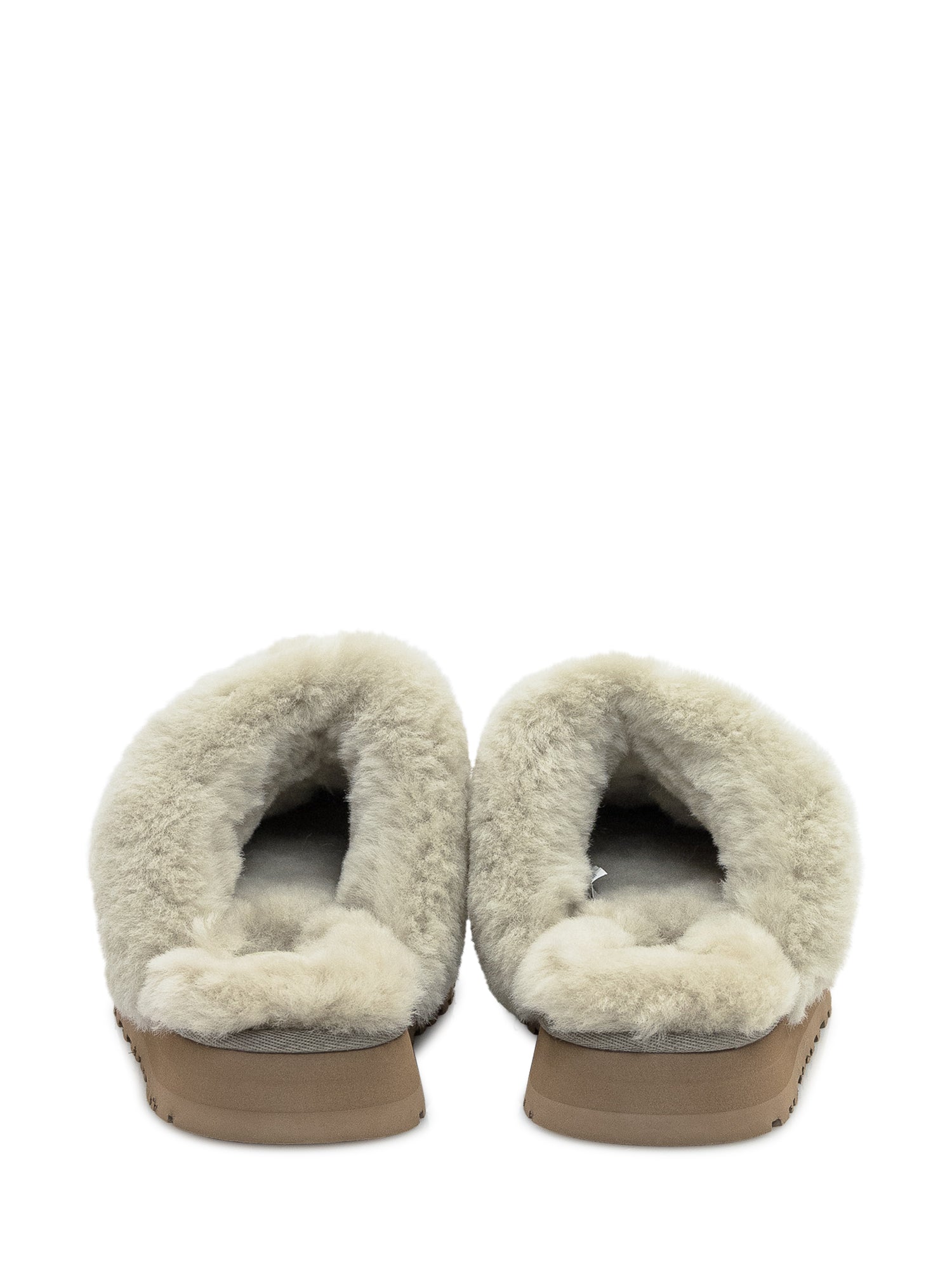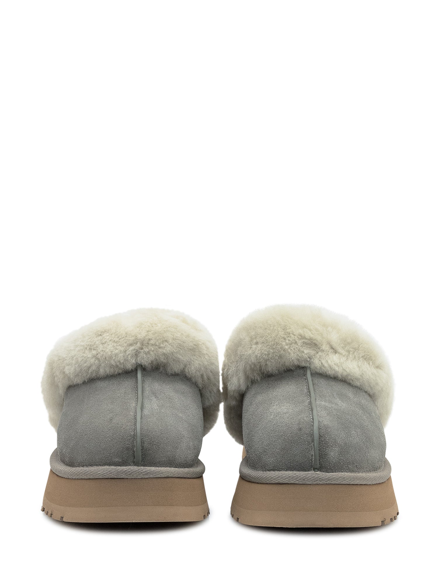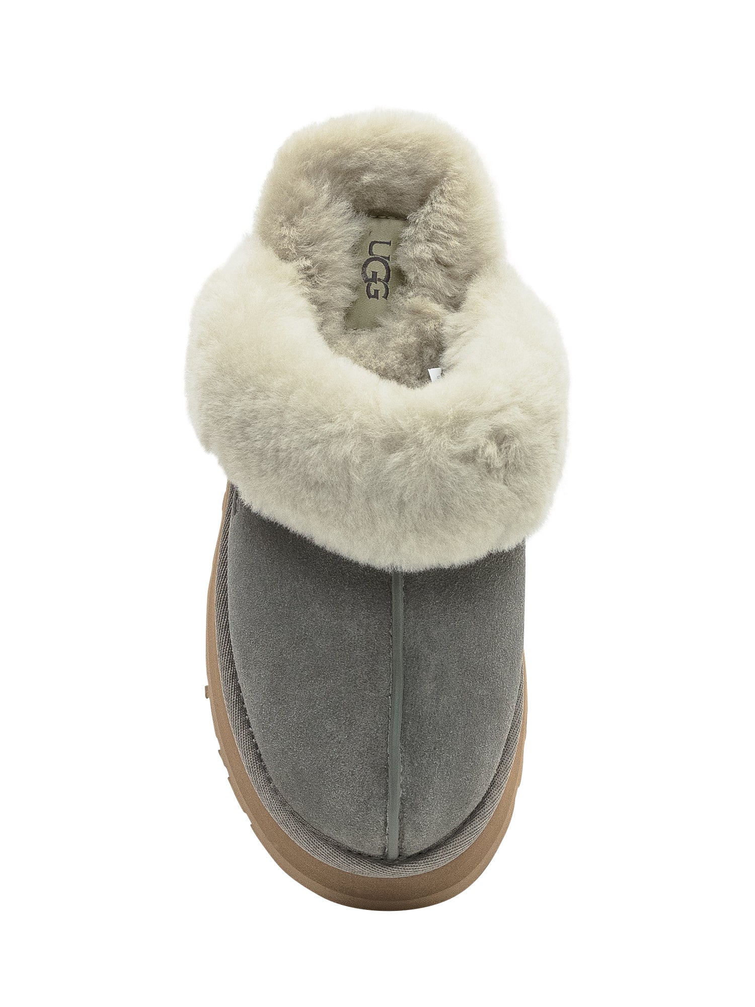 Pantofole UGG W Disquette in morbido shearling grigio con suola piatta in gomma.