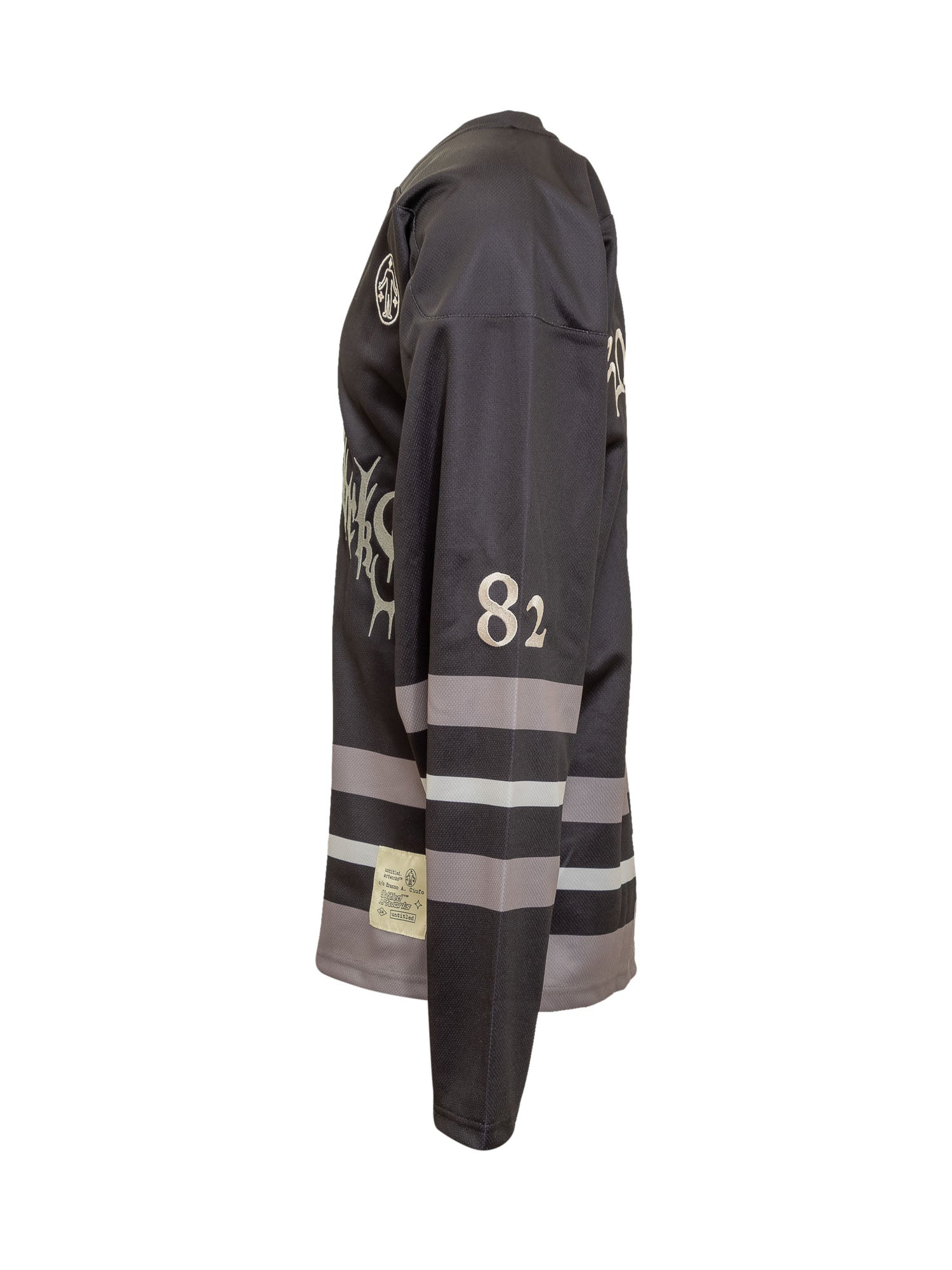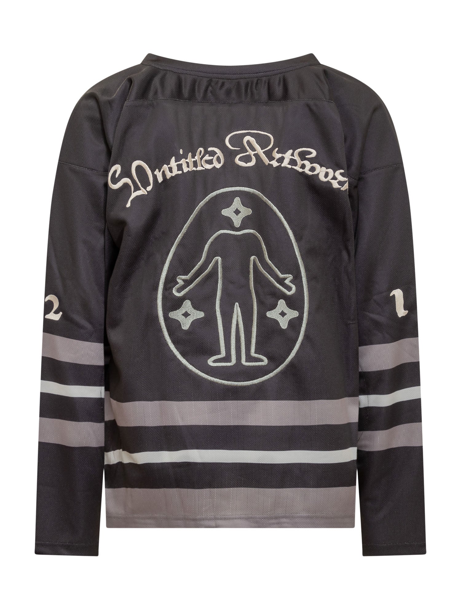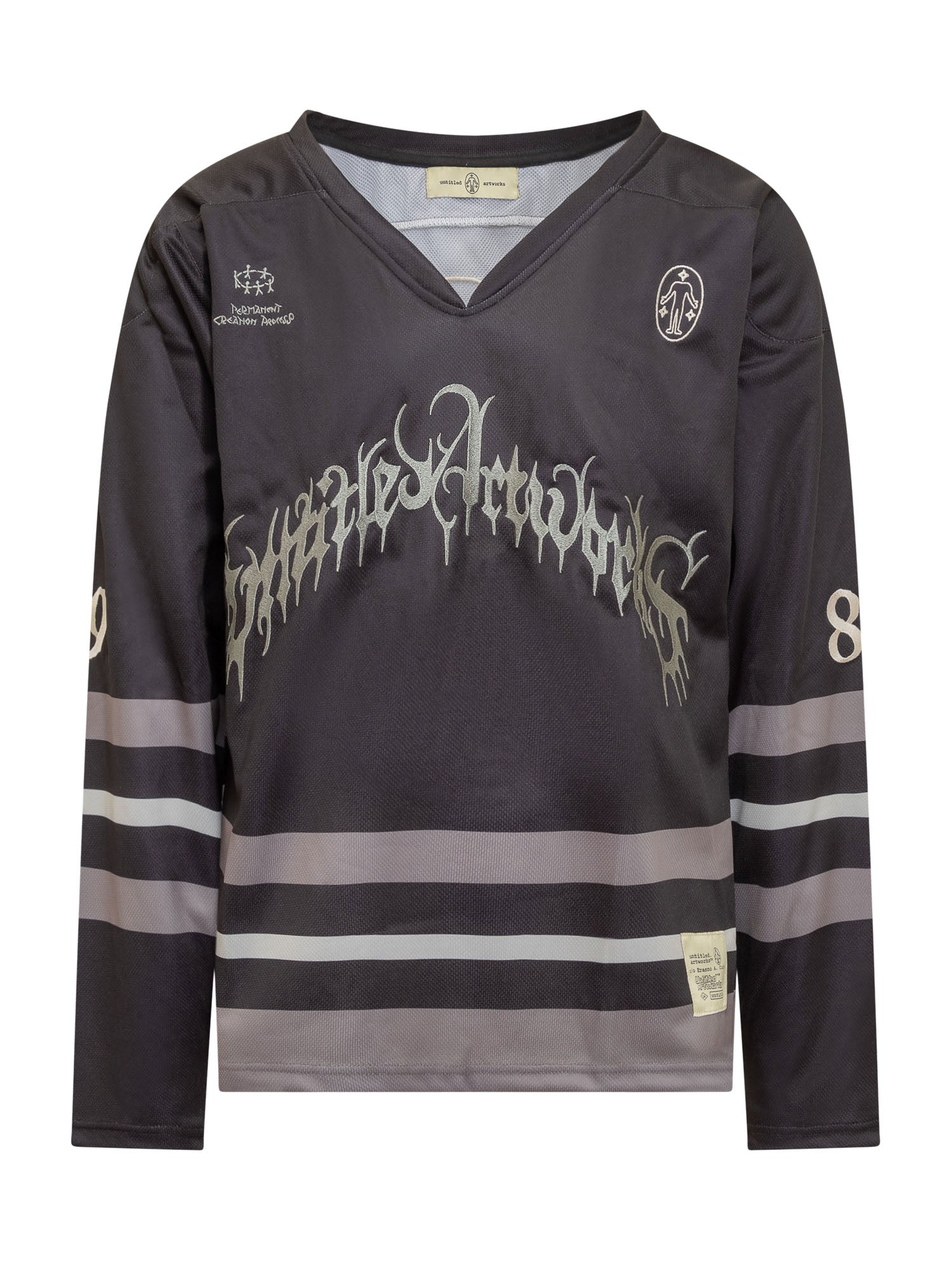 T-shirt nera a maniche lunghe. Scollo a V. Logo ricamato sul davanti. Ricami sul retro.