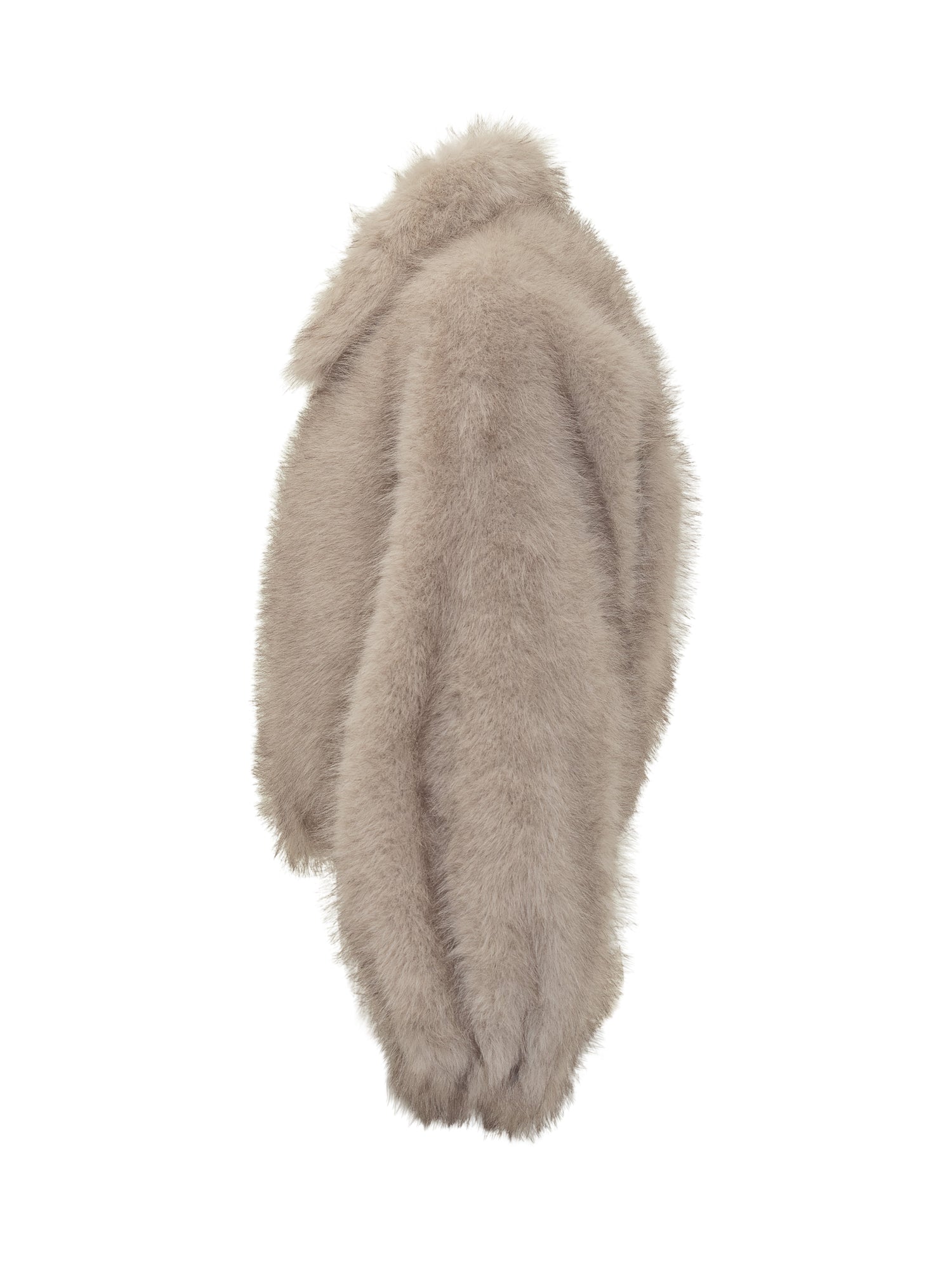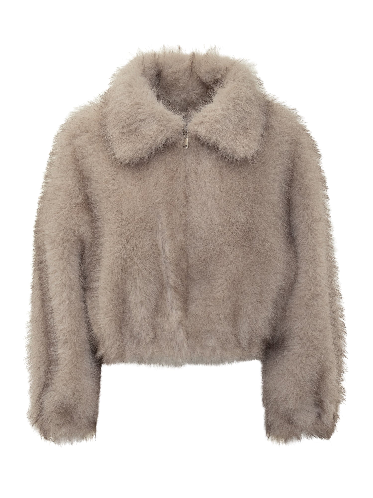 Giacca corta Valentini in pelliccia sintetica beige, con zip frontale e collo ampio, chiusura con la zip, elastico su orlo e polsi.
