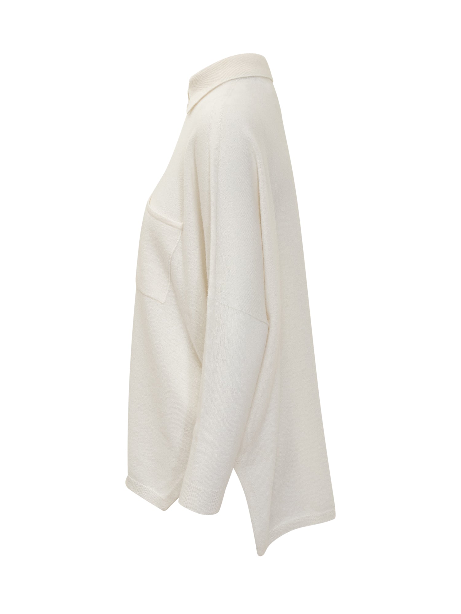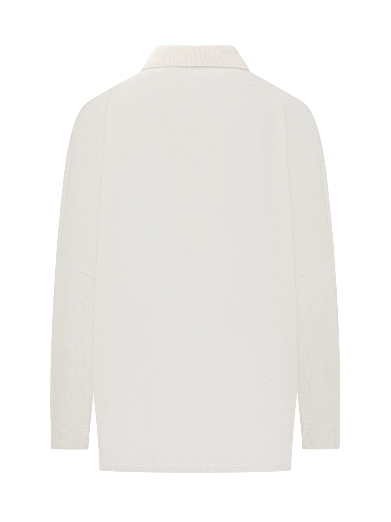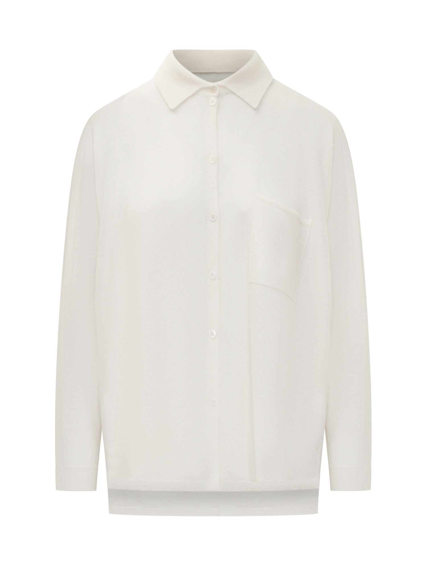 Camicia cardigan Vanisè in maglia bianca, con bottoni frontali e taschino applicato.