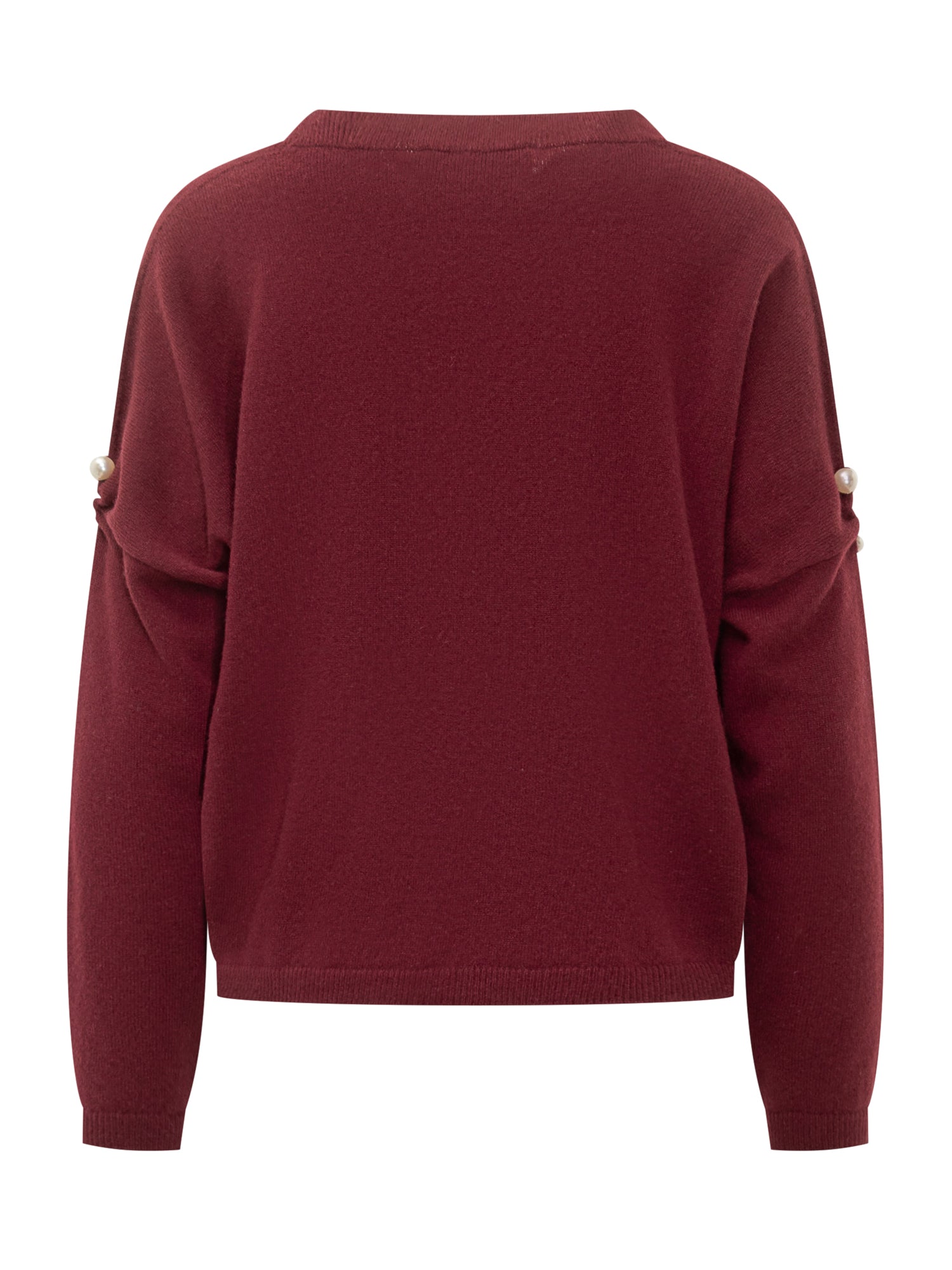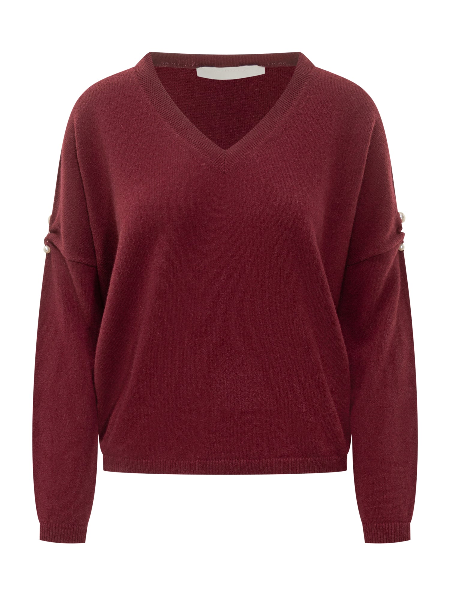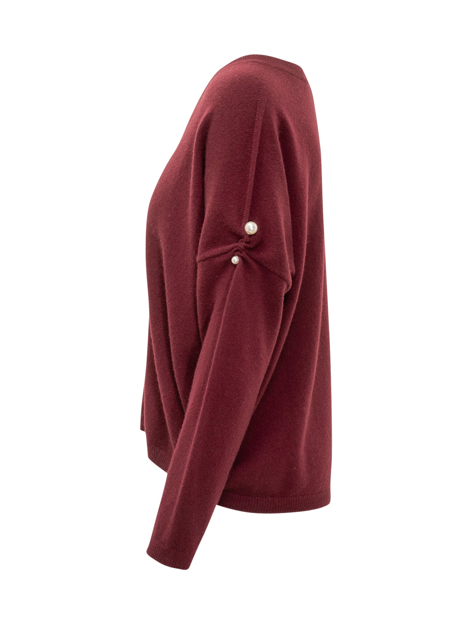 Maglia Vanisè bordeaux con scollo a V e maniche lunghe impreziosite da dettagli di perle applicate.