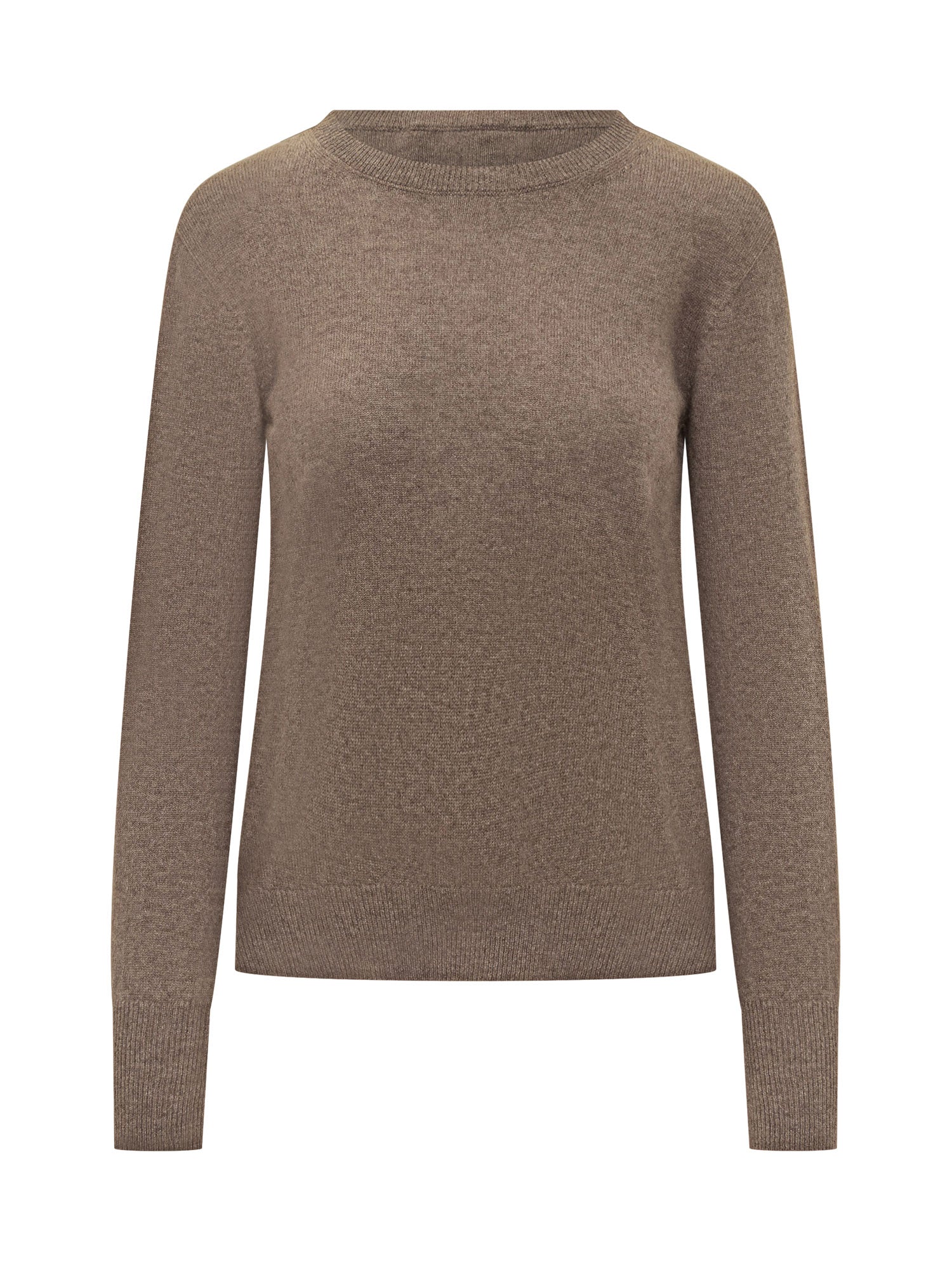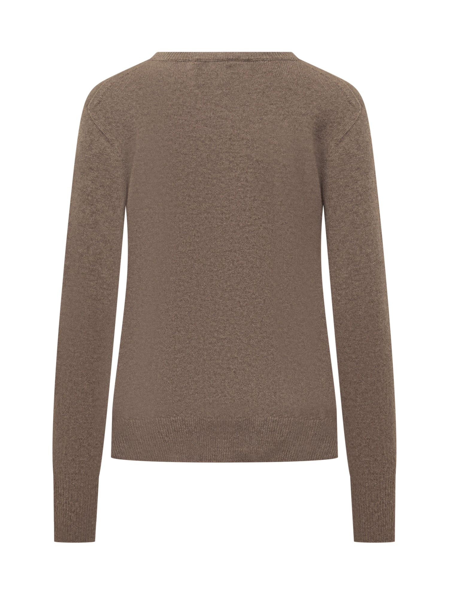 Maglione Vanisè marrone con scollo rotondo e linea pulita.