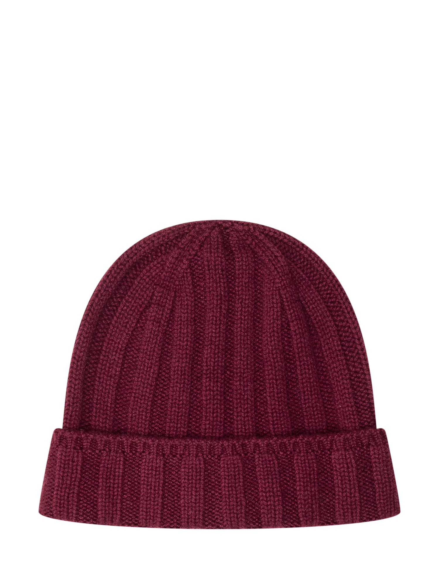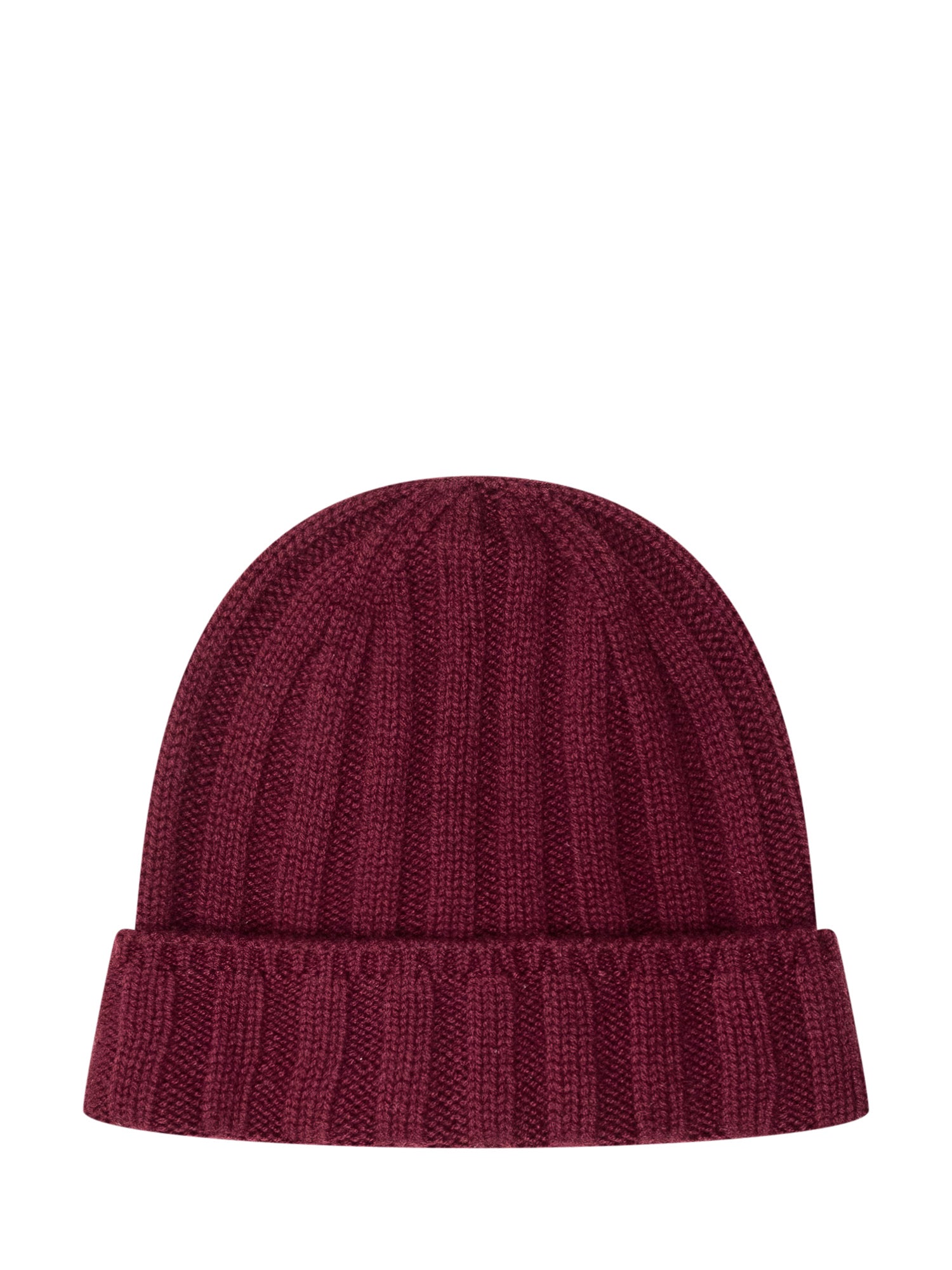Cappello Vanis\u00E8 in lana bordeaux con lavorazione a coste e risvolto.